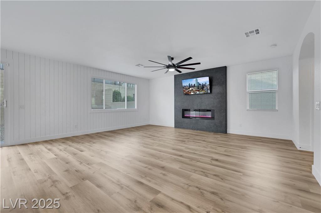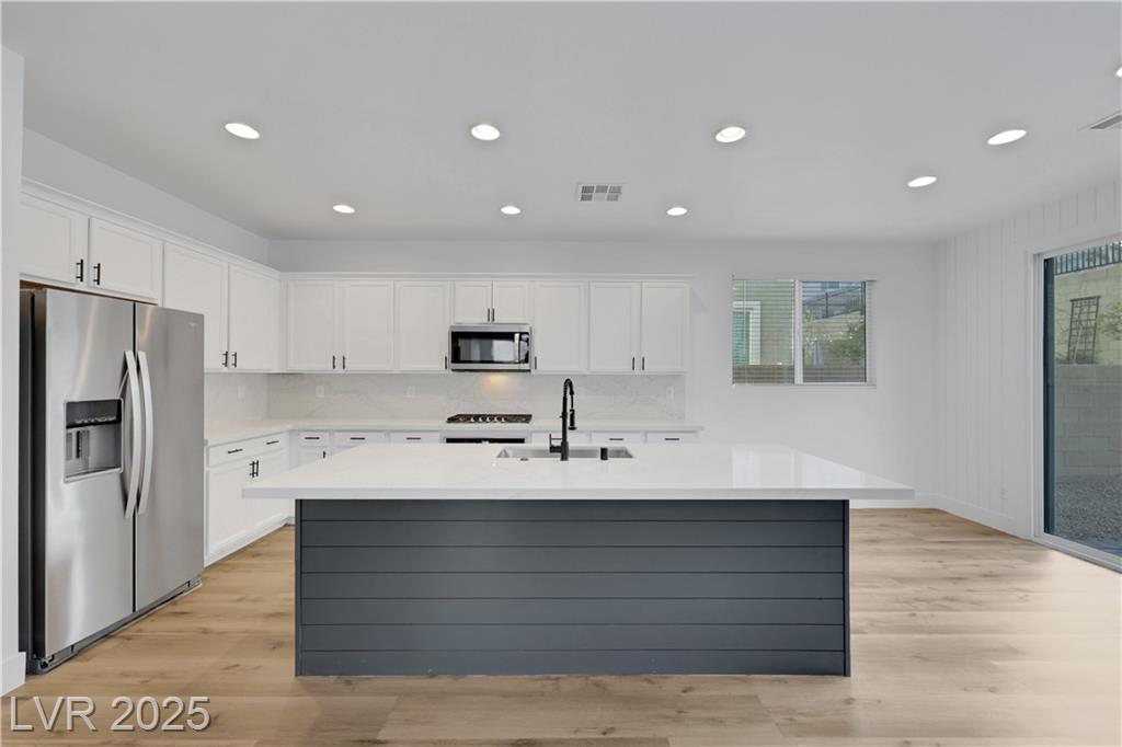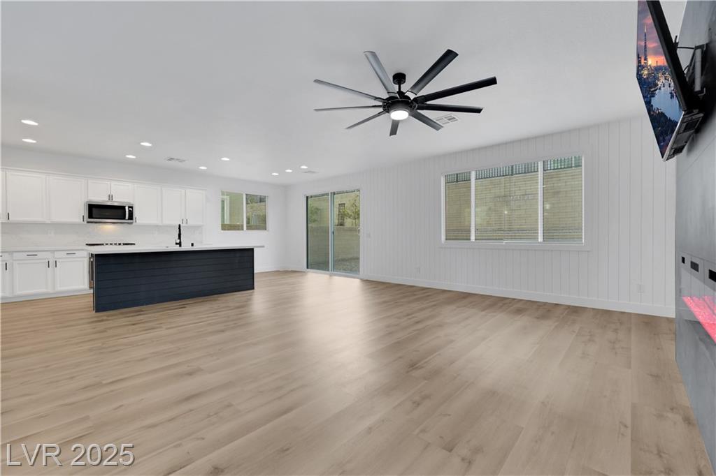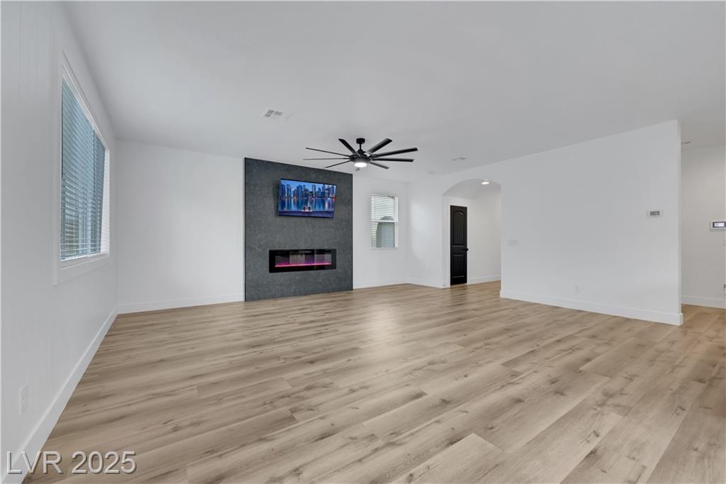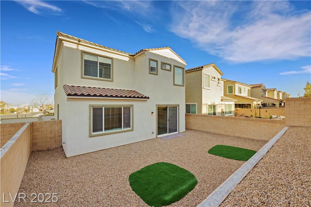 Gorgeous 2128 sq ft 2-story, 3-bed 2.5-bath home in NW's beautiful Skye Canyon. The home is highly upgraded with a new custom pop-out electric fireplace. TV Included, a shiplap accent wall, shiplap on the kitchen island, a new kitchen quartz countertops with full quartz backsplash, and a new upgraded vanity downstairs. Additionally, there is new vinyl plank flooring downstairs. The backyard features rock landscaping and synthetic grass.