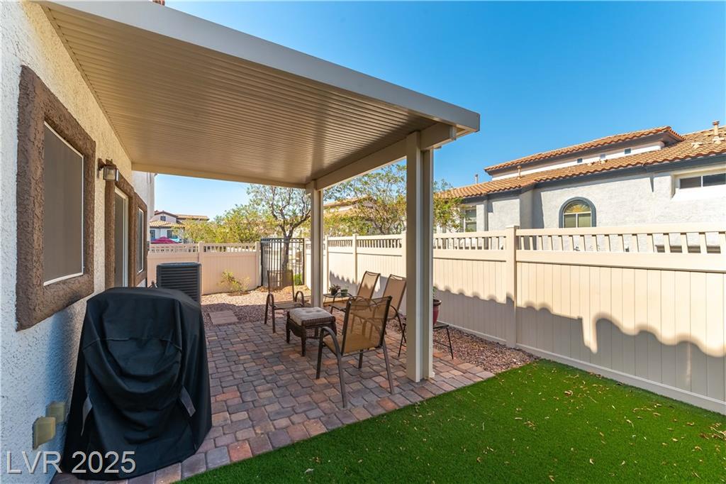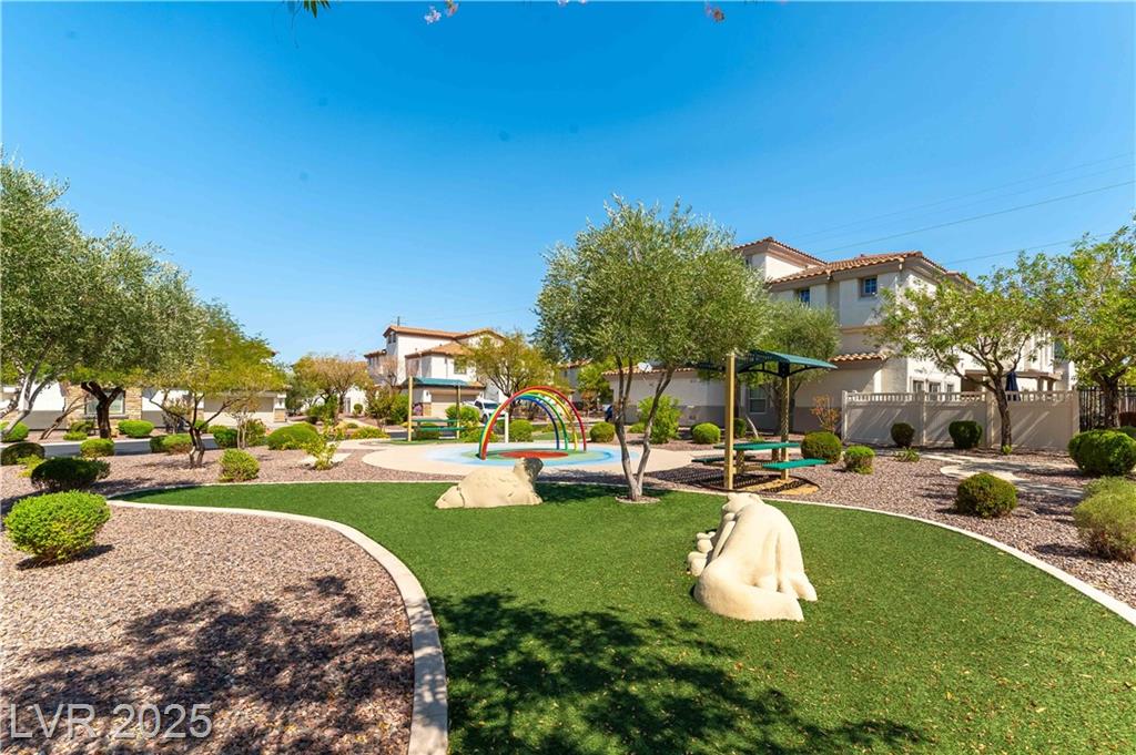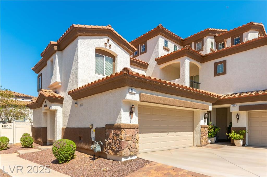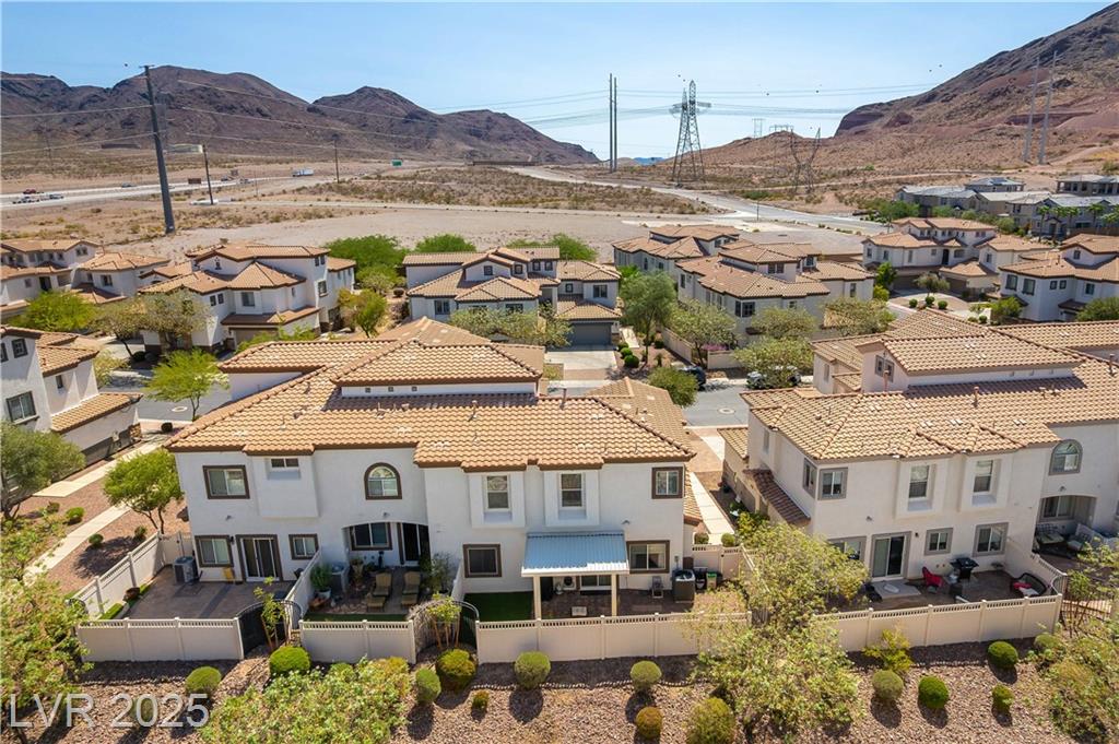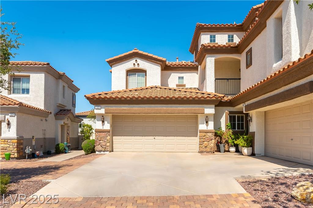 Behind the gates of Paradise Place, you’ll enjoy a resort-style pool complex surrounded by mountain views. These contemporary townhomes are thoughtfully designed w/only three homes per building, each w/a private two-car garage. The community features pet-friendly walking trails, well-lit guest parking, and a colorful toddler splash pad w/playful water feature. This 1,577 sq. ft. home offers a modern kitchen with solid surface countertops, stainless steel appliances, and an open living & dining area with ceiling fans throughout. There is a desirable bedroom and full bath on the main floor-currently used as an office. Upstairs, a spacious primary suite includes a walk-in closet, dual vanities, soaking tub & separate shower. The secondary bedroom features its own bath & walk-in closet. The convenient upstairs laundry room includes frontload washer-dryer set. Enjoy a finished backyard w/turf, a covered large paver patio, an ideal setting! One of Henderson’s most distinctive values to see