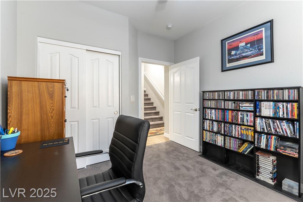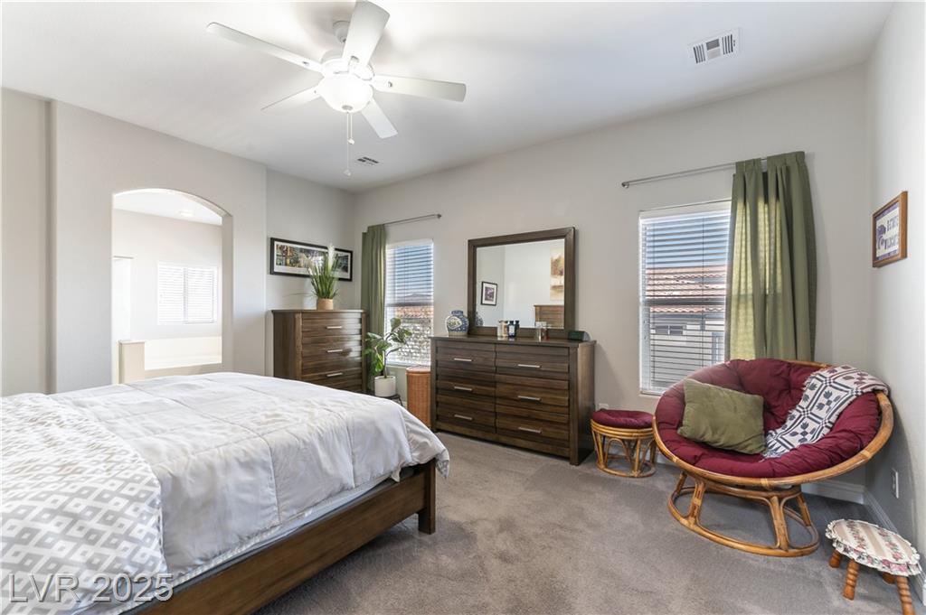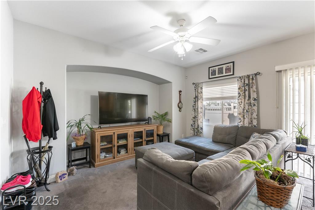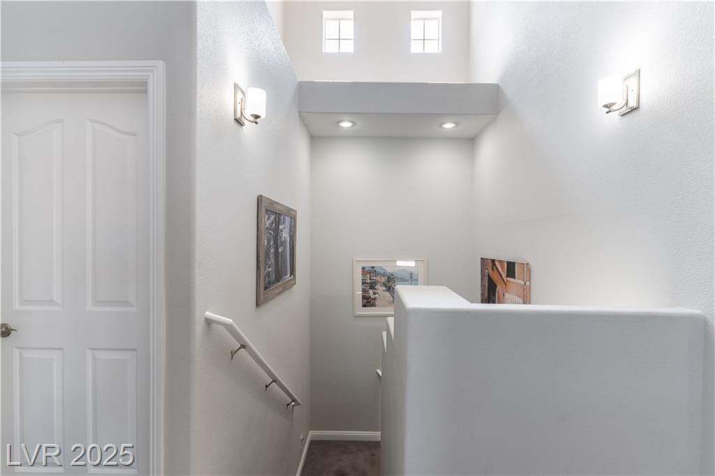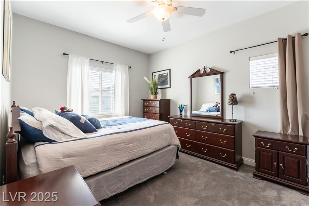 Behind the gates of Paradise Place, you’ll enjoy a resort-style pool complex surrounded by mountain views. These contemporary townhomes are thoughtfully designed w/only three homes per building, each w/a private two-car garage. The community features pet-friendly walking trails, well-lit guest parking, and a colorful toddler splash pad w/playful water feature. This 1,577 sq. ft. home offers a modern kitchen with solid surface countertops, stainless steel appliances, and an open living & dining area with ceiling fans throughout. There is a desirable bedroom and full bath on the main floor-currently used as an office. Upstairs, a spacious primary suite includes a walk-in closet, dual vanities, soaking tub & separate shower. The secondary bedroom features its own bath & walk-in closet. The convenient upstairs laundry room includes frontload washer-dryer set. Enjoy a finished backyard w/turf, a covered large paver patio, an ideal setting! One of Henderson’s most distinctive values to see