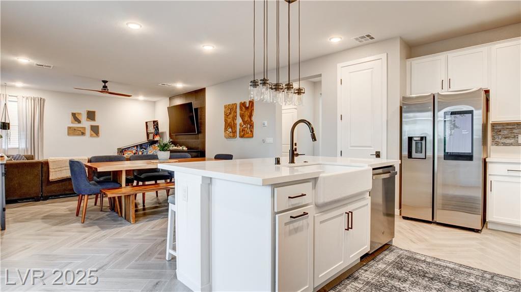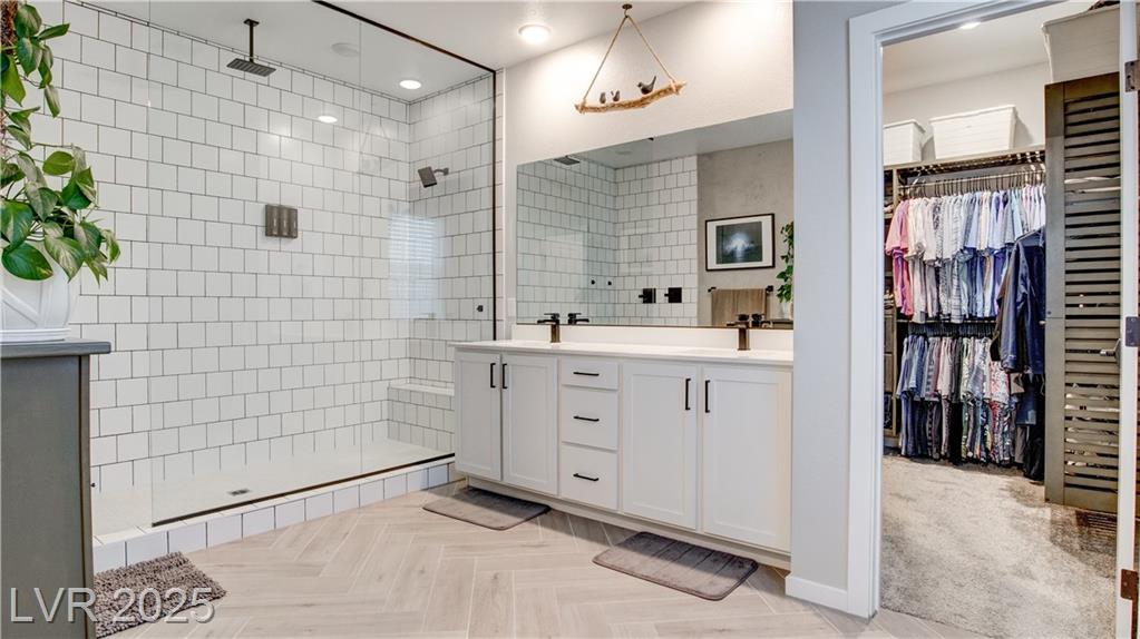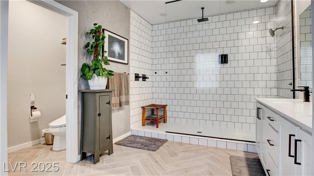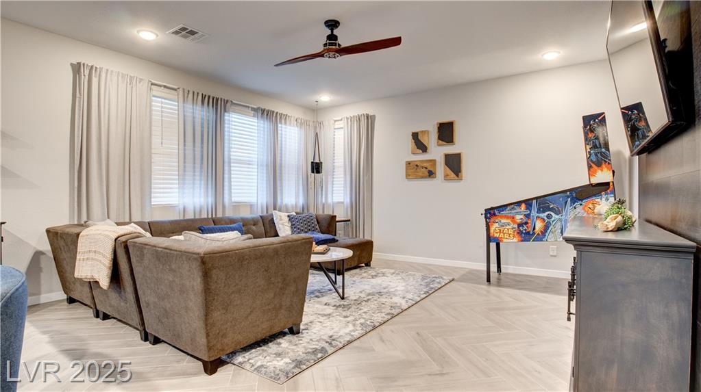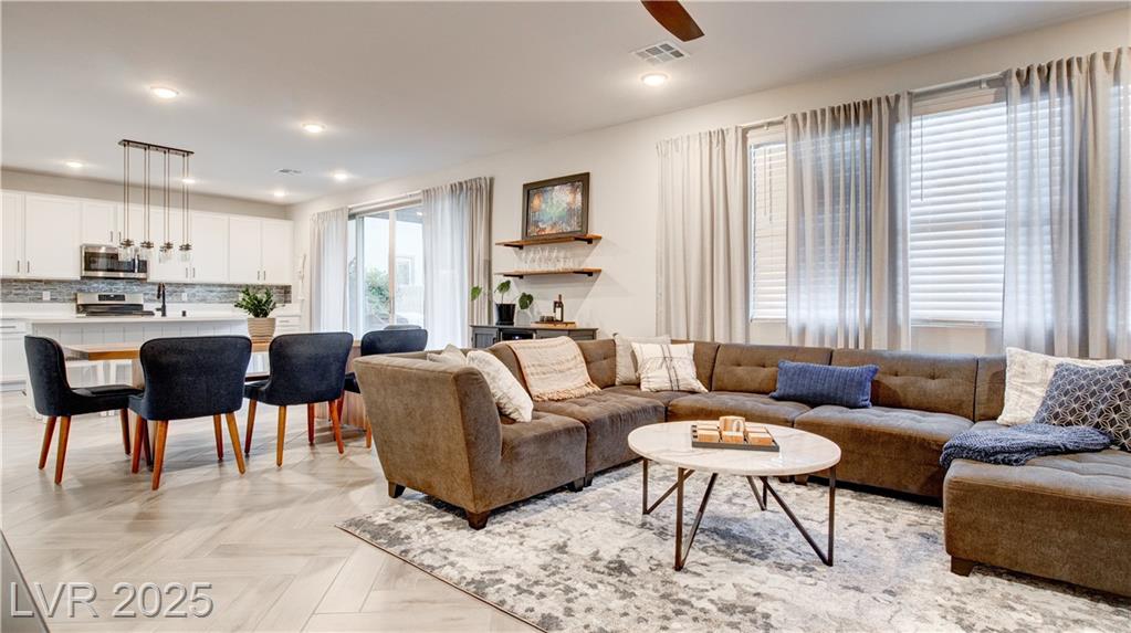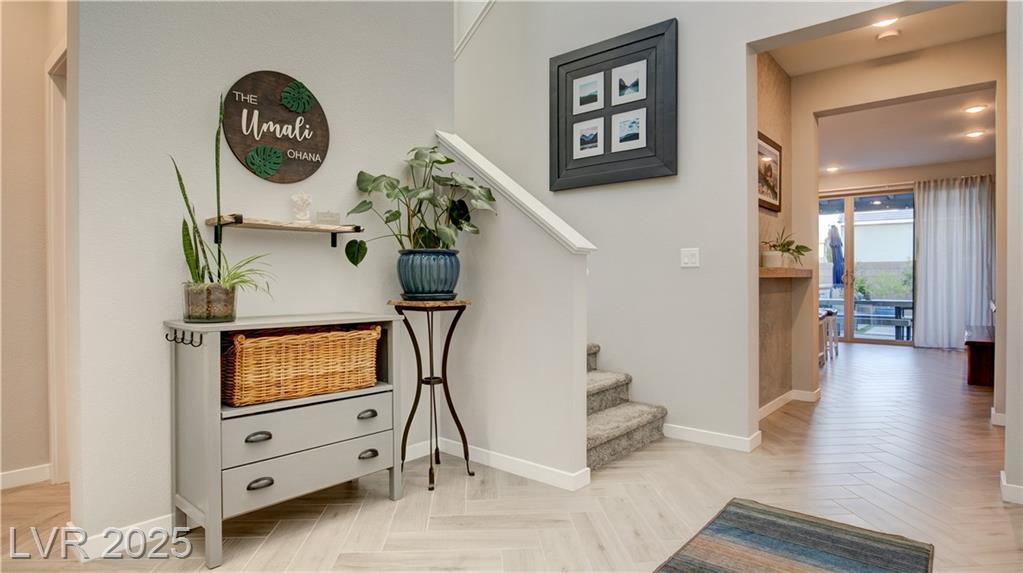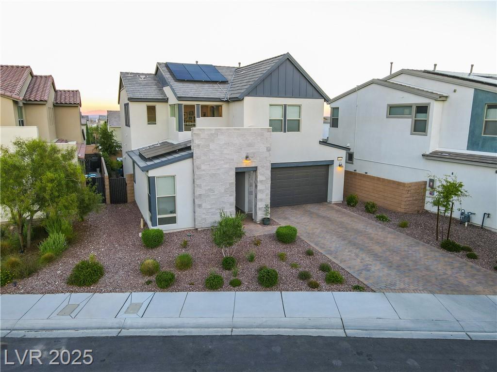 Welcome to 8330 Belay Street in the Skye Canyon community. This beautifully designed home showcases a modern interior with open living spaces, sleek finishes, and abundant natural light. The beautiful kitchen features upgraded cabinetry, stainless steel appliances, and a spacious island that flows seamlessly into the dining and living areas. A private downstairs bedroom and full bath create an ideal setup for guests or a home office. Upstairs, the primary bedroom offers a spa-like bathroom and a large custom walk-in closet. Step outside to a beautifully landscaped backyard designed for both relaxation and entertaining, with plenty of room for outdoor dining or gatherings. As part of Skye Canyon, residents enjoy access to parks, trails, fitness facilities, and community events, all while being conveniently close to shopping, dining, and freeway access. Please come take a look at this amazing home!