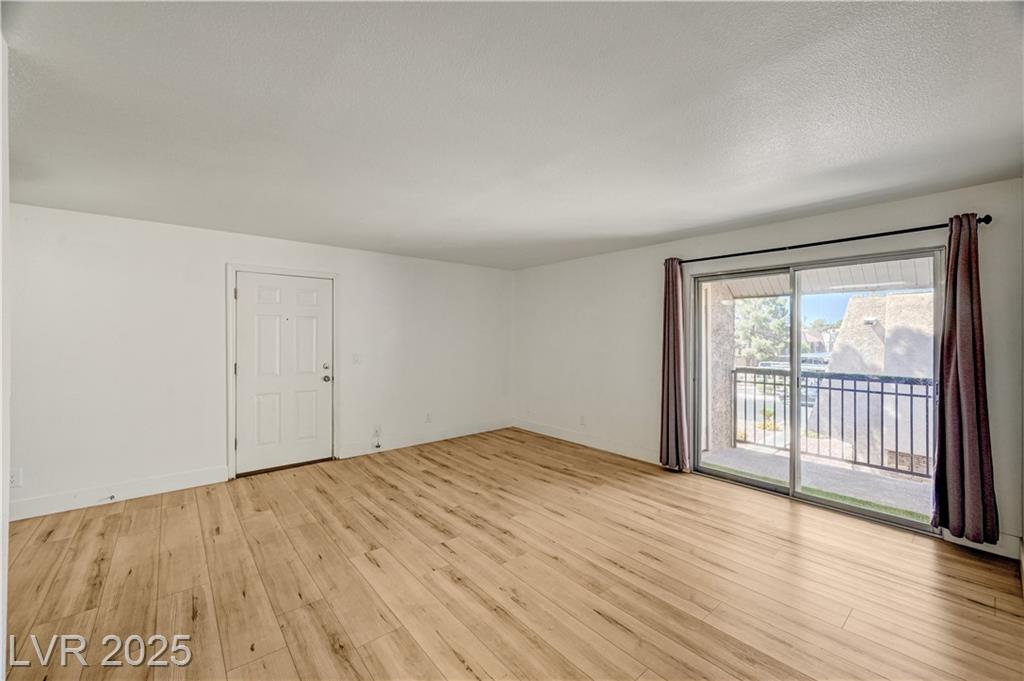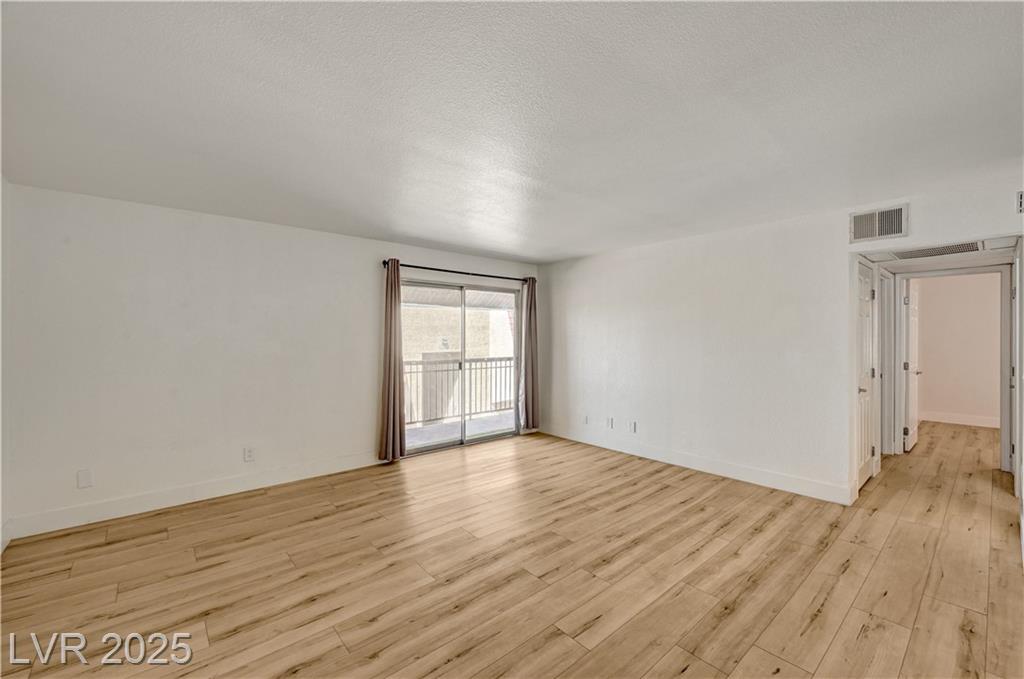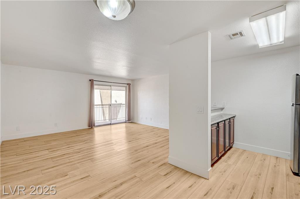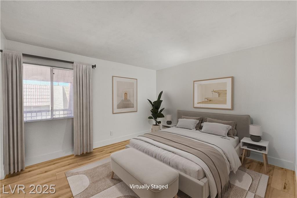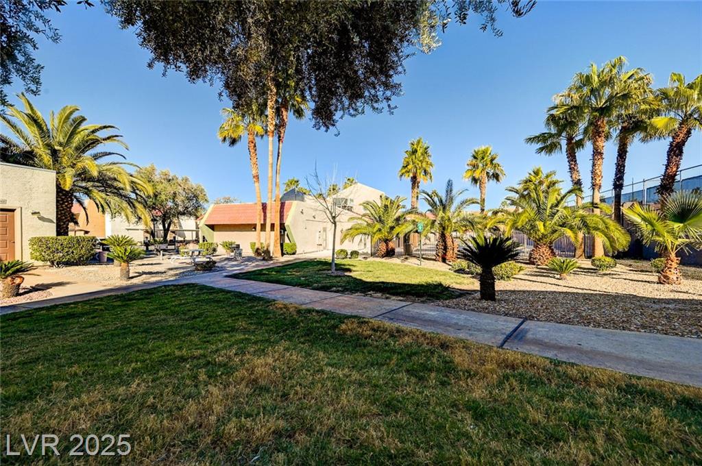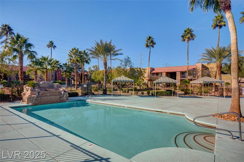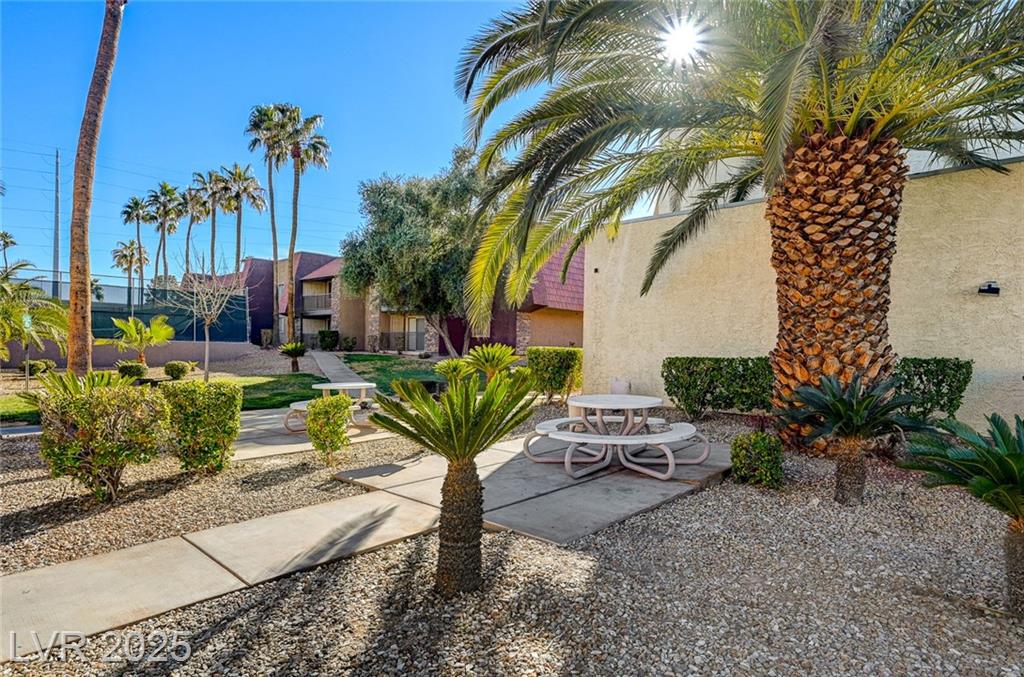 Resort Style Living in the Heart of Las Vegas! Discover this beautiful home, filled with natural light and featuring a north-facing balcony perfect for enjoying peaceful mornings or vibrant evenings. The kitchen boasts elegant granite countertops, a spacious breakfast bar, and abundant counter space, complemented by a stainless steel refrigerator purchased just last year. Light and neutral-toned luxury vinyl flooring throughout the home; carpet-free. Freshly painted within the past year, this home is move-in ready. Nestled within a guard-gated community, residents enjoy an array of amenities, including 6 pools, indoor and outdoor spas, saunas, cabanas, 5 tennis courts, 3 fitness centers, and 3 clubhouses. Additional conveniences include an indoor mailroom, outdoor barbecue areas, a playground, assigned covered parking, ample guest parking, and 24-hour security. Ideally located just minutes from the Strip, airport, major freeways, shopping, and dining.