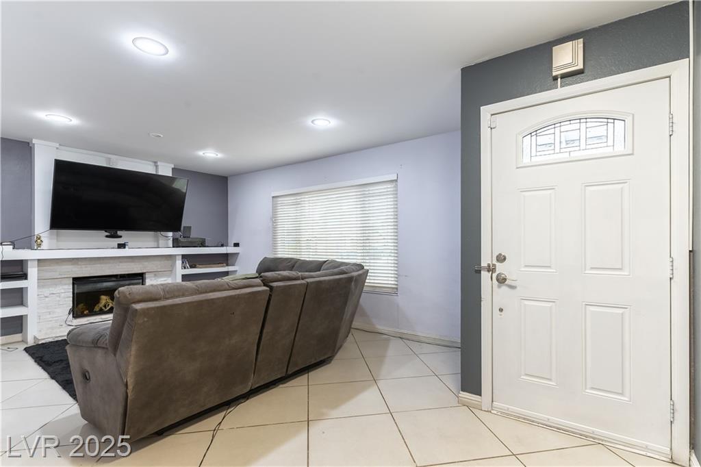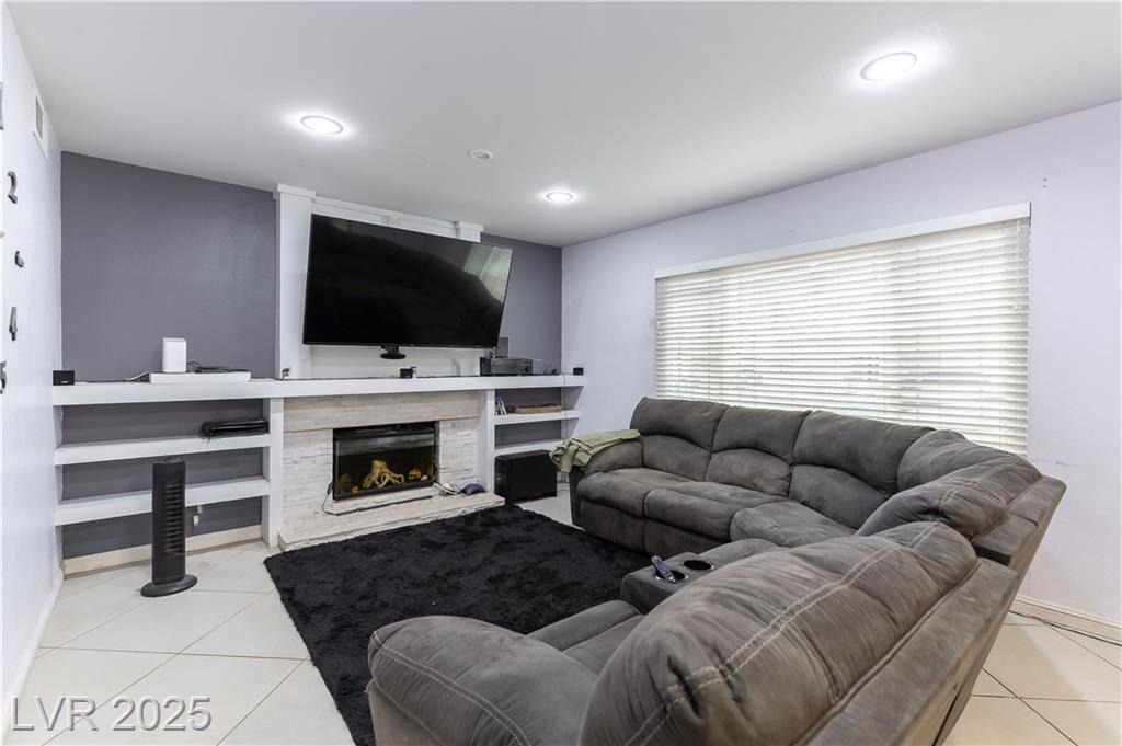 Beautifully updated modern home with granite countertops, tile throughout the entire home, and both bathrooms updated to a modern style. Built-in entertainment center in the living room with an electric fireplace. Tankless water heater. Covered rear patio leads to an in-ground pool.