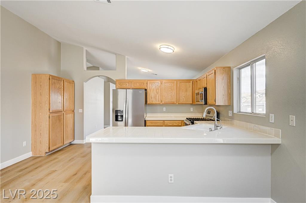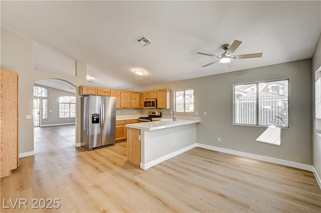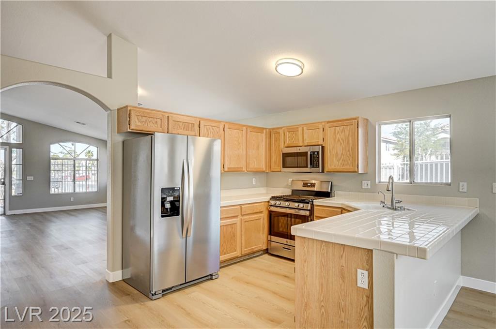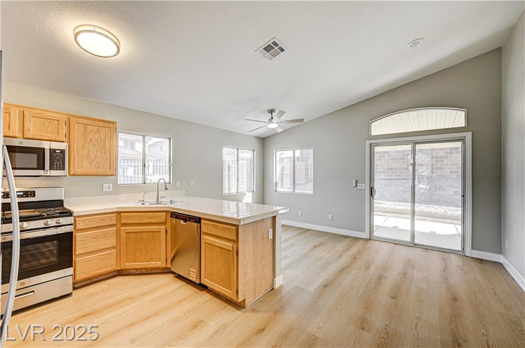 Beautifully remodeled home in East Las Vegas close to the mountains with no HOA! New exterior paint for amazing curb appeal. Enter into the oversized living room with new hardwood/vinyl flooring and fresh paint throughout. Kitchen complete with all new stainless steel appliances, with extra cabinet and counter space. Two bedrooms with large primary bedroom with private bathroom and walk-in closet. All new lighting fixtures throughout home, new water heater and AC was recently serviced. This is a true move in ready home and priced to sell!