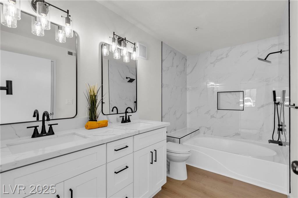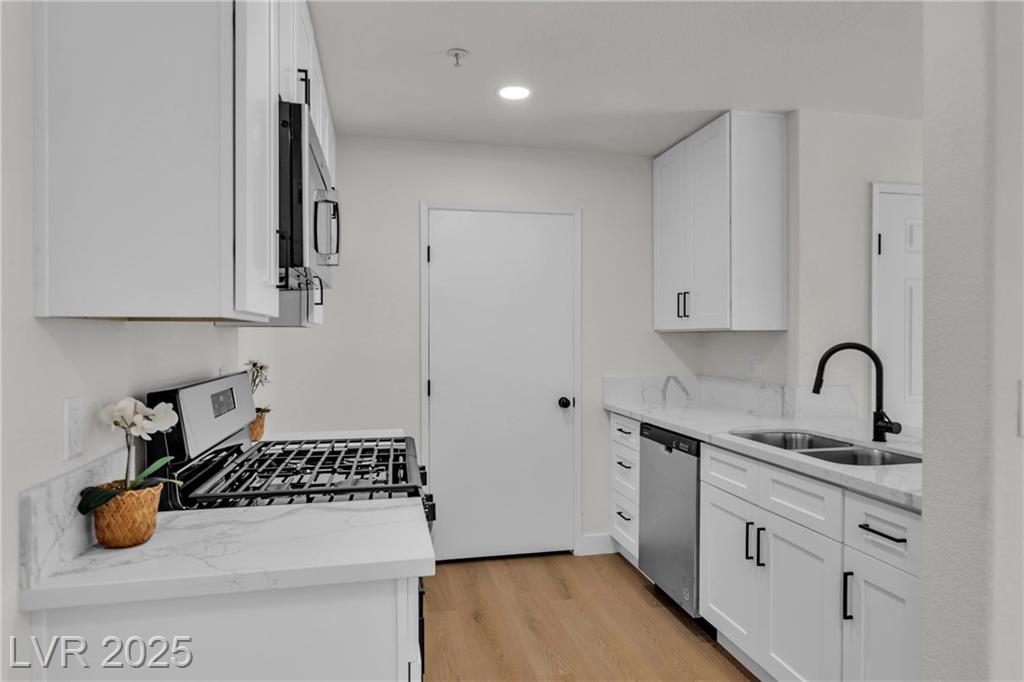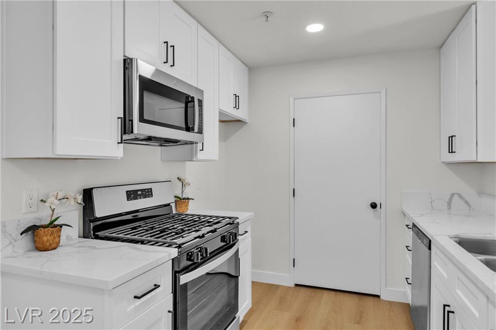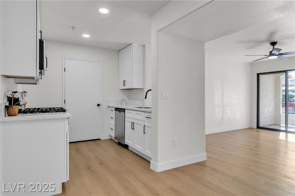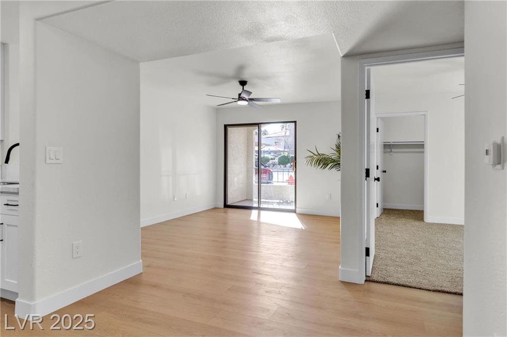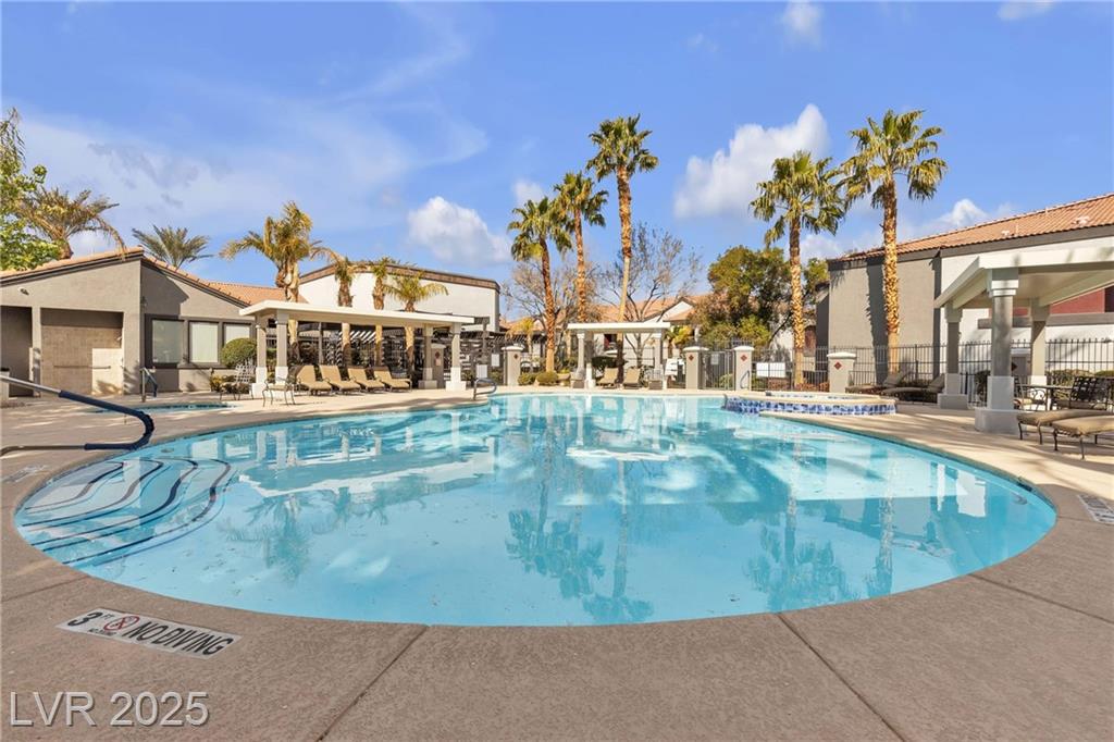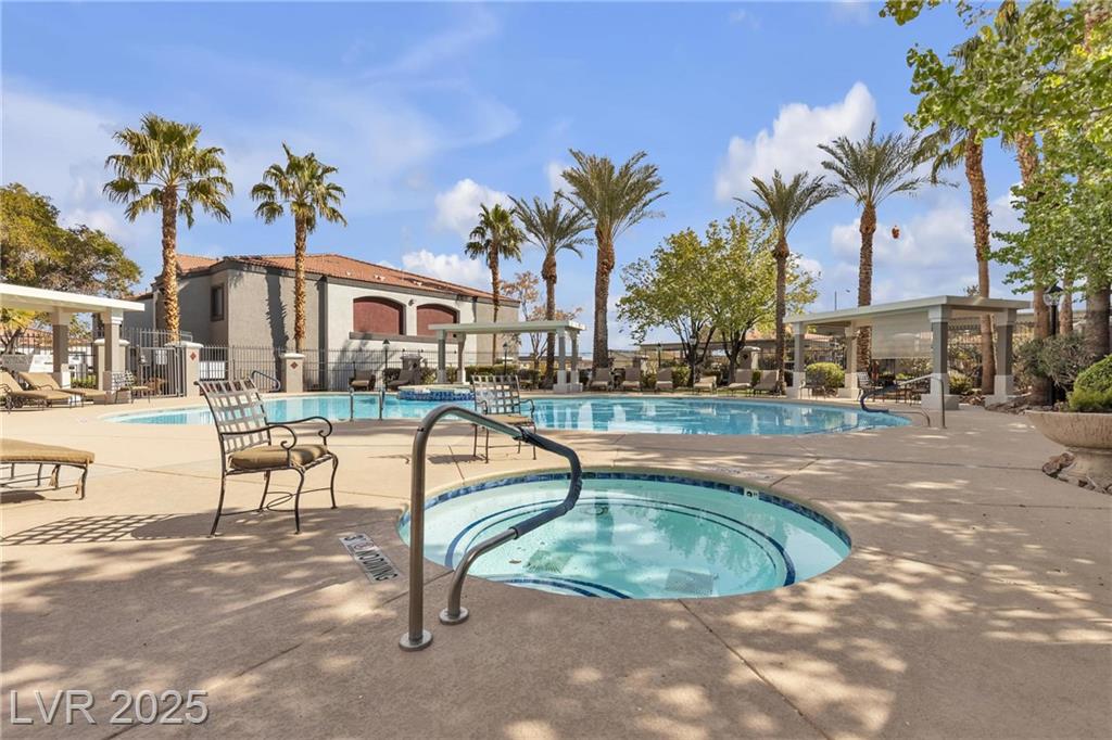 Welcome to your dream condo in the heart of Seven Hills! This beautifully updated first-floor unit offers one spacious bedroom, one modern bathroom, and a bright, open feel throughout. Step inside to find brand-new luxury vinyl plank flooring, fresh paint, and a sleek kitchen with custom cabinets, quartz countertops, and stainless steel appliances. The large primary bedroom features a walk-in closet and stylish new window coverings. Relax on your covered patio with serene greenbelt views. This gated, resort-style community includes a sparkling pool, spa, clubhouse, fitness center, BBQ areas, and peaceful walking paths. Perfectly located near shopping, dining, parks, the Raiders practice facility, and easy freeway access — all that’s left to do is move in and enjoy!