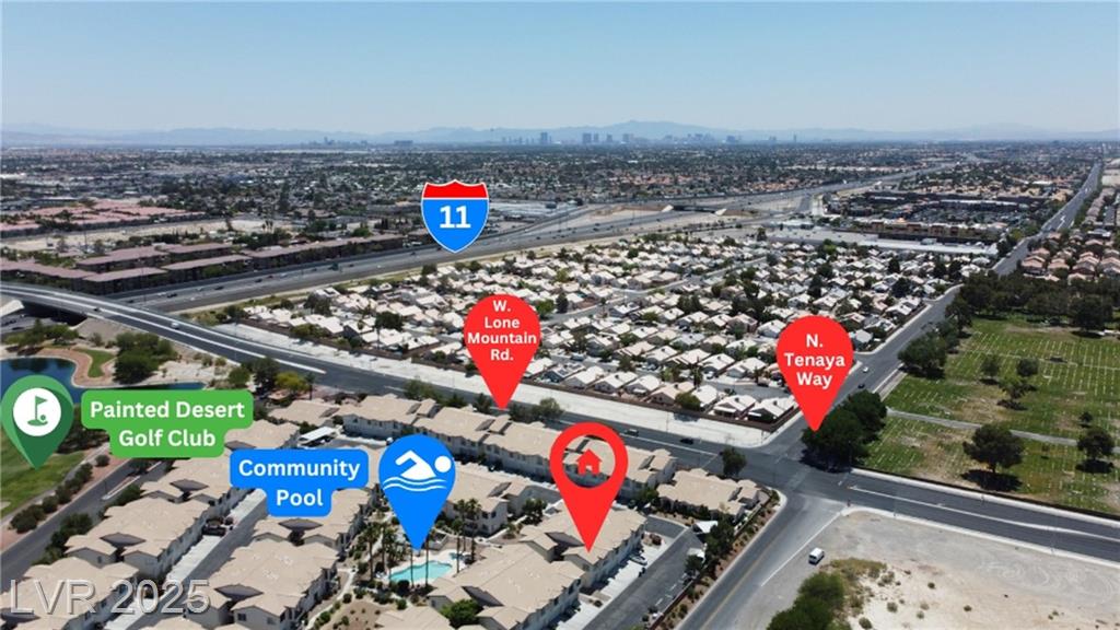 Turn West off the i11(95) on Craig, turn North on N Tenaya, Turn East on Lone Mountain, first left into the Painted Desert community.