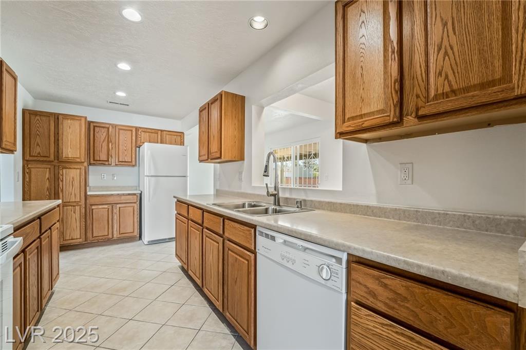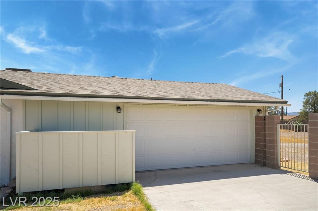 Welcome to this beautifully upgraded single-story home on a rare 20,038 sq. ft. lot. A circular driveway and two-car garage provide ample parking and the freedom of no HOA. Inside, brand-new carpet brings comfort and freshness throughout, while the inviting kitchen features oak-stained cabinetry and appliances. Updated bathrooms with upgraded plumbing blend style and functionality, complemented by a newer AC system and roof for year-round efficiency and peace of mind. Step outside to a spacious covered patio and expansive backyard—ideal for a pool, garden, or your custom outdoor retreat. A storage shed and double gate add extra convenience. Perfectly located just 2 miles from Allegiant Stadium, this move-in-ready home offers space, flexibility, and value in one exceptional property.