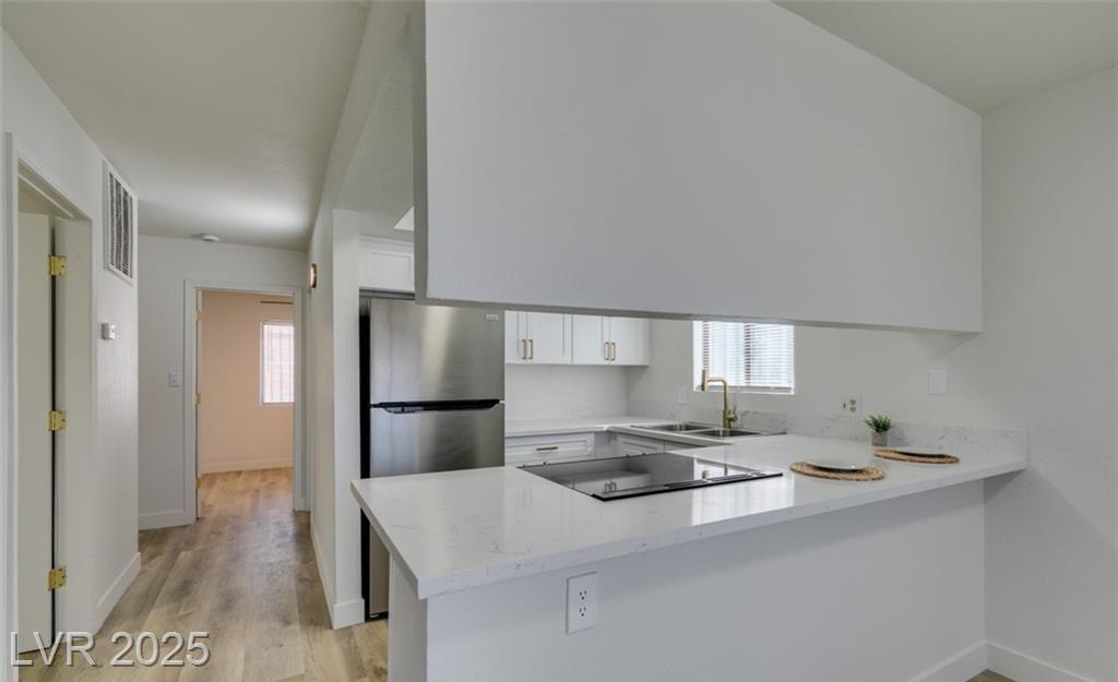 Beautifully renovated ,2 Bedroom/ 2 Bath with strip view. Quartz counters, freshly painted with luxury vinyl plank flooring. New kitchen cabinets with new refrigerator, new electric range.Washer and dryer included . Downstairs unit . Large living room and nice sized bedrooms.