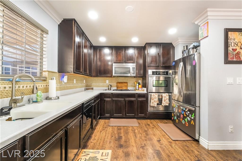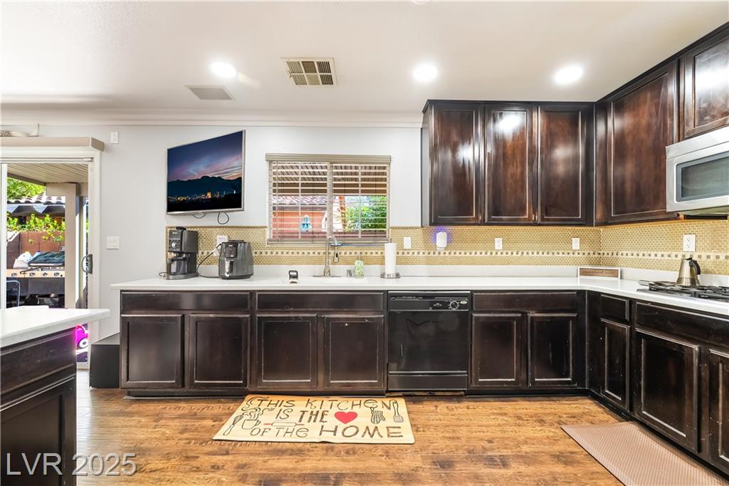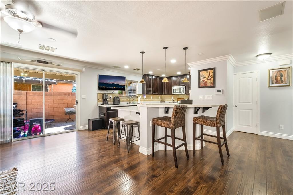 Situated at the end of a peaceful cul-de-sac within a secure gated community just minutes from the Las Vegas Strip, this beautifully upgraded home offers a perfect blend of comfort, efficiency, and convenience. Step inside and enjoy a variety of modern energy-saving features, including: • Radiant barrier in the attic • Low-flow faucets and shower heads • NV Energy smart thermostat with remote access • Tankless water heater • Ceiling fans in every room The stylish kitchen is appointed with Corian countertops, a stainless steel sink, beaded cabinetry, and sleek stainless steel appliances. Laminated flooring is featured throughout the home, providing both durability and easy maintenance. Enjoy the benefits of community living with access to a sparkling pool and a welcoming clubhouse. Don’t miss this exceptional opportunity to own a move-in-ready, eco-conscious home in a prime Las Vegas location!