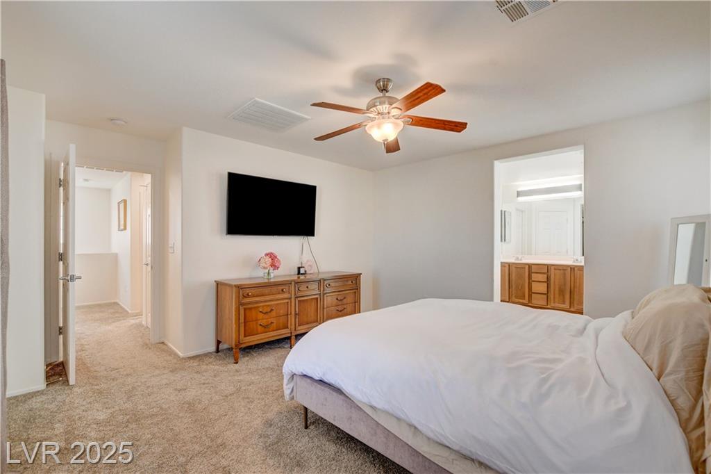 This beautifully maintained 3 bedroom home with a 2 car garage is located in a gated community and offers modern comfort with the added benefit of solar panels for energy efficiency! The open floor plan is designed for both style and convenience, featuring ceiling fans throughout, including all bedrooms! The kitchen is equipped with a breakfast bar, granite countertops, tile flooring and a pantry, providing plenty of space for cooking and entertaining! The primary bedroom includes a walk-in closet and a private bath with dual sinks, a separate shower and a soaking tub! The washer and dryer are conveniently located upstairs for added ease and the home also includes a water softener for everyday comfort! The backyard is perfect for relaxing or gatherings with a covered patio! Community amenities include a pool, barbecue area, park and playground! Conveniently situated just minutes from schools, shopping, the freeway and entertainment, this home offers both comfort and accessibility!