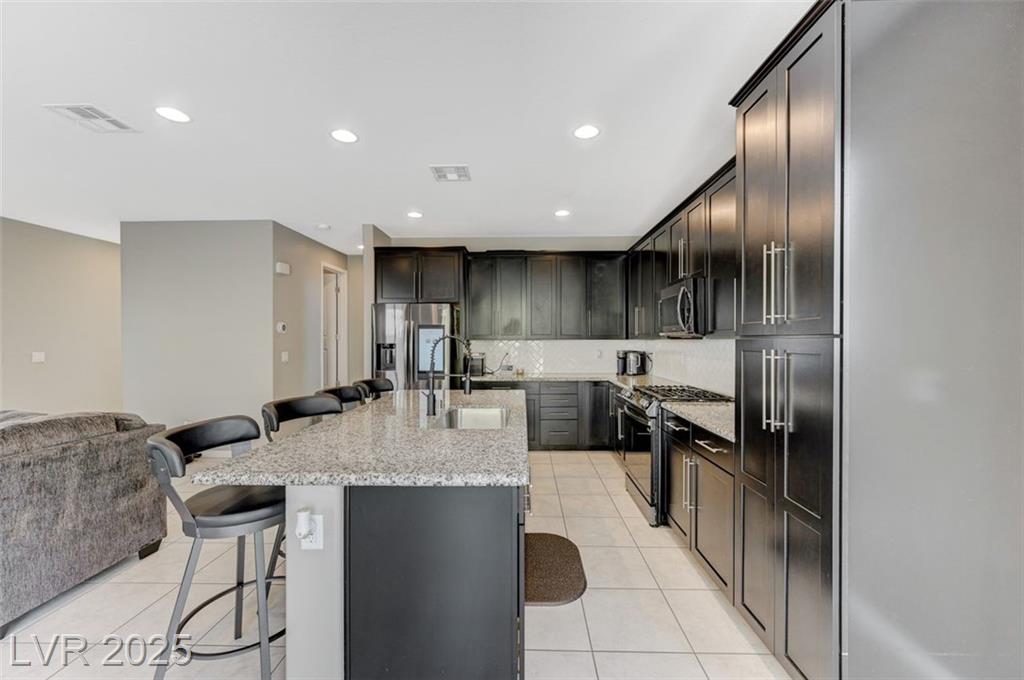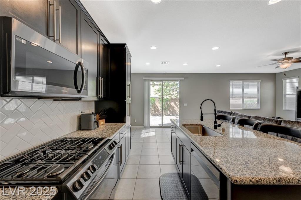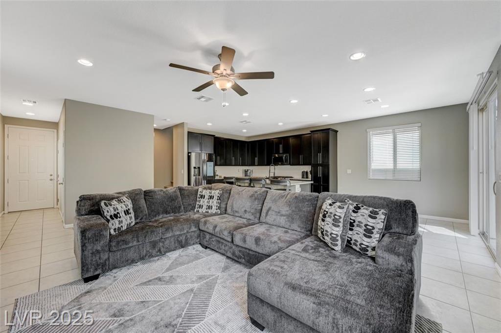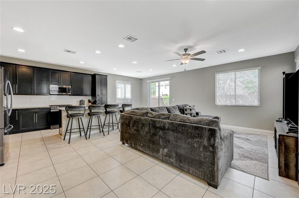 Filled with natural light, this beautifully cared for three-bedroom home with a spacious loft offers comfort and style. Tile flooring enhances the main living areas and bathrooms, while plush carpeting adds warmth to each bedroom. Step into the heart of the home where a gourmet kitchen awaits, equipped with modern black stainless-steel appliances, a striking tile backsplash, & a generously sized island ideal for entertaining. The open-floor plan flows seamlessly from the kitchen to the living & dining areas, making it easy to envision hosting friends or relaxing after a long day. Energy-efficient solar panels, walk-in closets, & a separate laundry room with washer & dryer provide convenience & ample storage. With convenient proximity to shopping, dining, & commuter routes, this home combines peaceful living with everyday practicality—an inviting canvas waiting for new memories to be created. Experience the perfect blend of comfort, style, & convenience in this exceptional home.