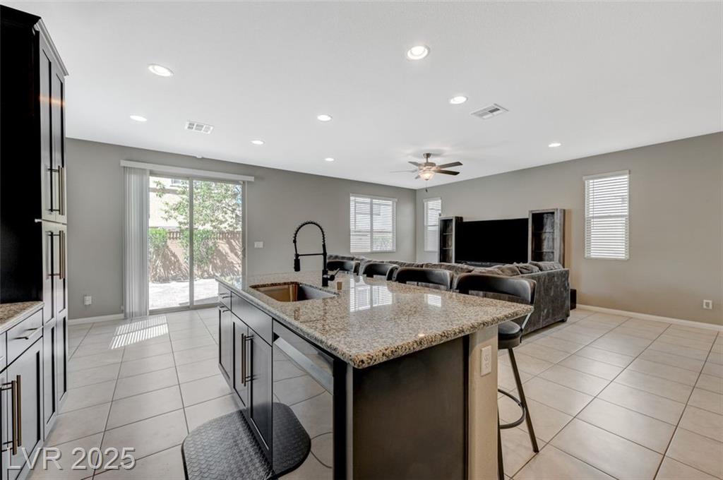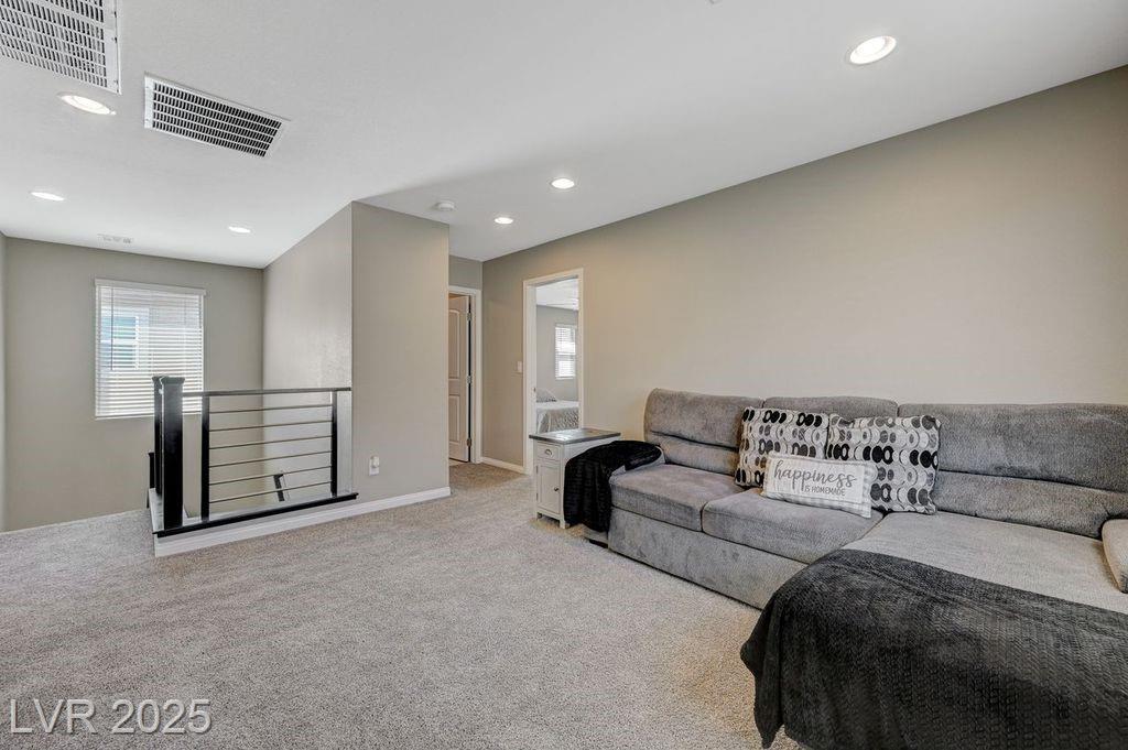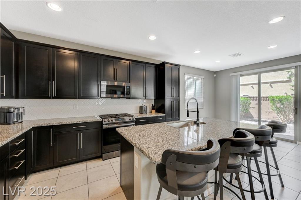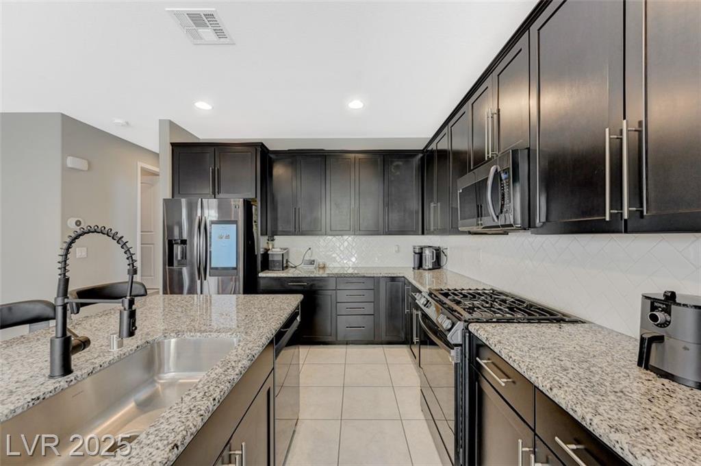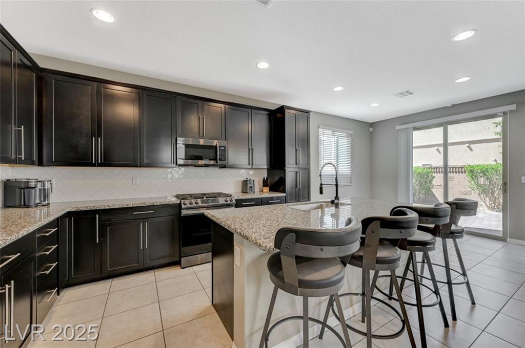 Filled with natural light, this beautifully cared for three-bedroom home with a spacious loft offers comfort and style. Tile flooring enhances the main living areas and bathrooms, while plush carpeting adds warmth to each bedroom. Step into the heart of the home where a gourmet kitchen awaits, equipped with modern black stainless-steel appliances, a striking tile backsplash, & a generously sized island ideal for entertaining. The open-floor plan flows seamlessly from the kitchen to the living & dining areas, making it easy to envision hosting friends or relaxing after a long day. Energy-efficient solar panels, walk-in closets, & a separate laundry room with washer & dryer provide convenience & ample storage. With convenient proximity to shopping, dining, & commuter routes, this home combines peaceful living with everyday practicality—an inviting canvas waiting for new memories to be created. Experience the perfect blend of comfort, style, & convenience in this exceptional home.