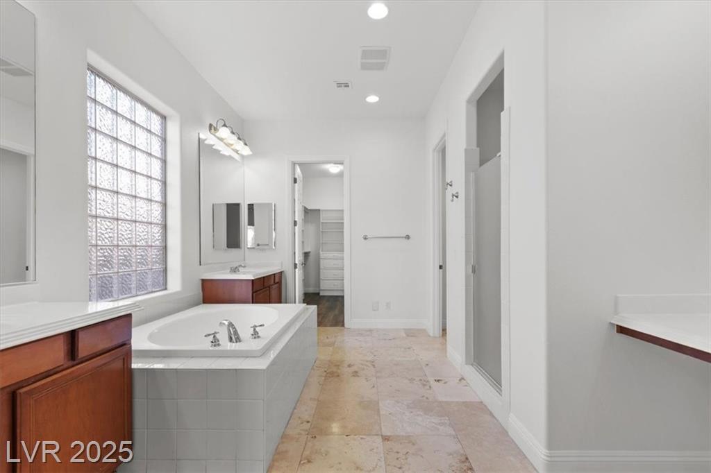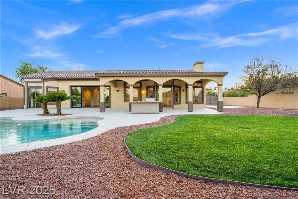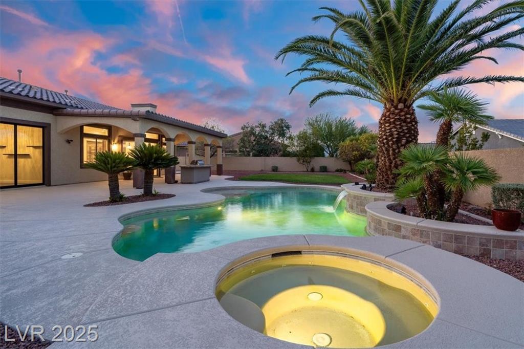 THIS IS THE ONE and you will be sold at the front door! From the stunning view as you enter the home to the spacious open floor plan, this semi custom home checks all the boxes. At just under a half acre situated on a quiet cul de sac, you will be wowed by the large daylight basement with full bath and tons of storage. A new En Suite with its own exterior double door leading into a front courtyard with a security gate. The back yard boasts oversized RV parking, a grass yard and a large salt water pool/spa and waterfall all with beautiful mature landscaping. This home features natural hardwood/laminate and travertine flooring, ceiling fans, plantation shutters, motorized interior shades and exterior rolladen shades, a removable safety first pool fence and so much more! The U shaped floor plan provides privacy for every bedroom. Updated, pristine and turn key......THIS IS THE ONE !!