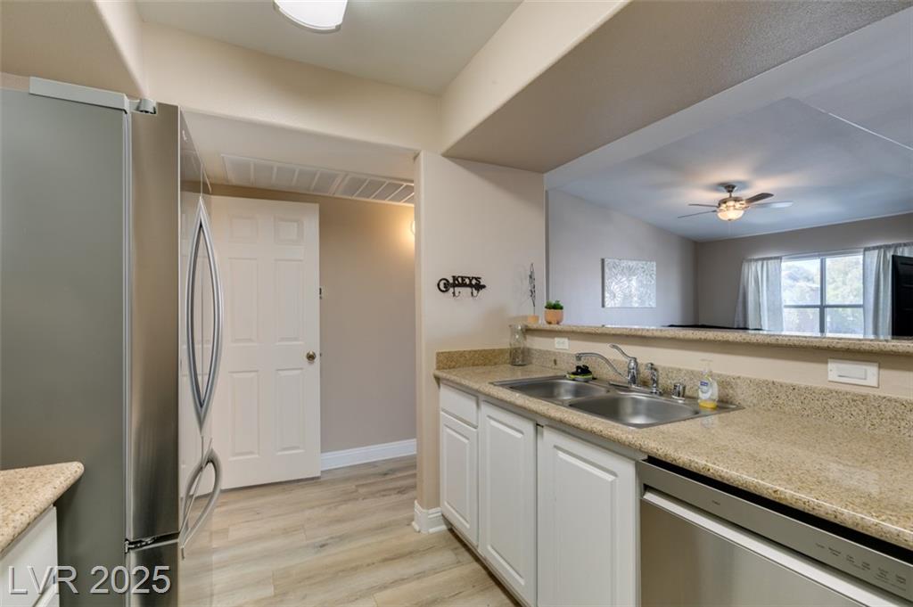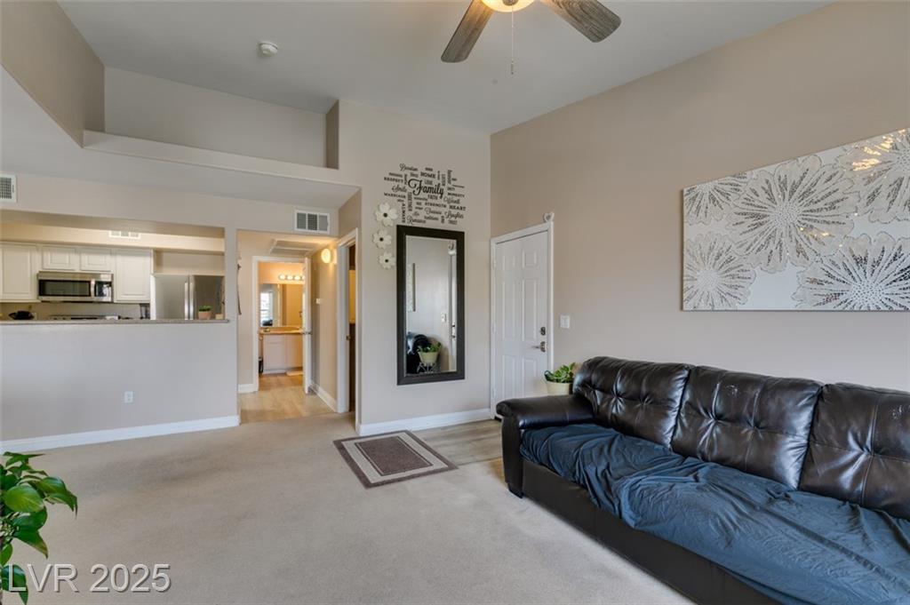 This gorgeous gated community is just off the 215 and Buffalo. Close to the new Costco, tons of shopping, restaurants, casinos and much more. This is a 2 bedroom 2 bath and is an upstairs unit. Carpets have been professionally cleaned and is move in ready. Walk into your open space, mountain views, laminate flooring in all the wet areas and all stainless steel appliances are included. Call your agent today or reach out. It's move in ready and waiting for you.