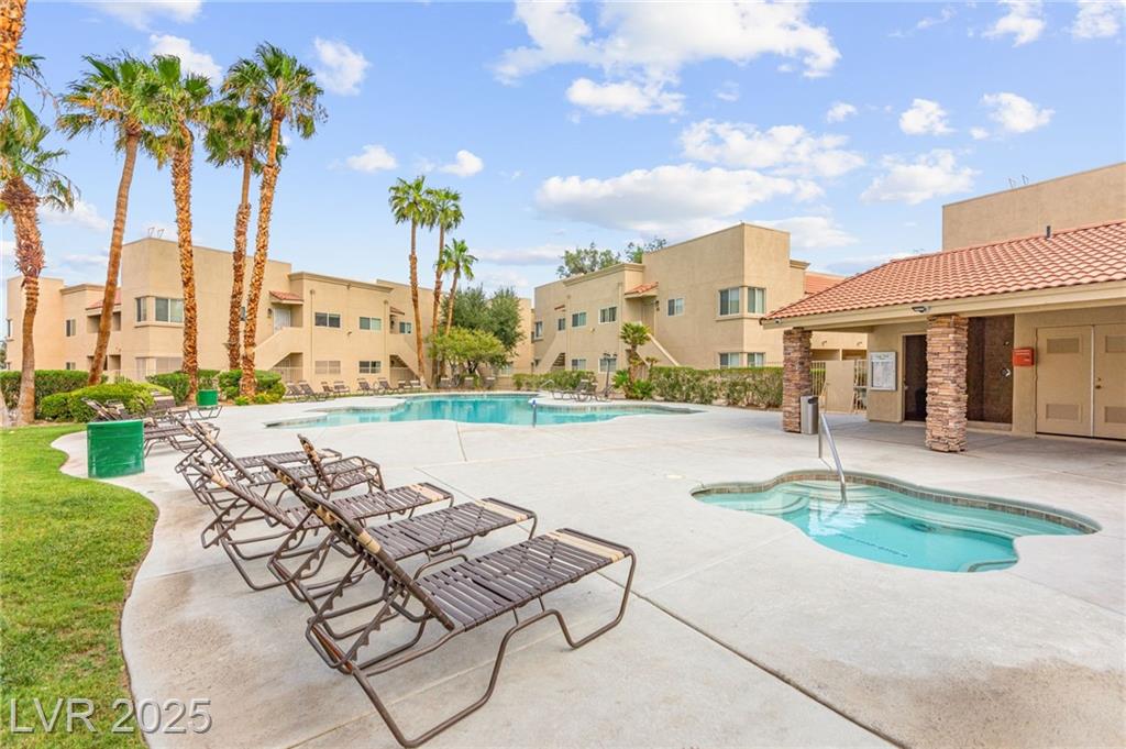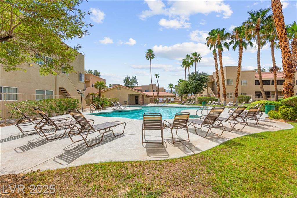 This inviting ground-level 2-bedroom, 2-bath condo features a thoughtful open layout that flows seamlessly from the welcoming living area into a bright, functional kitchen and dining space. Both bedrooms are generously sized, filled with natural light, and offer ample closet space for comfortable everyday living. Perfectly positioned near the community pool and amenities, this home is ideal for those seeking a relaxed, low-maintenance lifestyle. Located in a well-kept community close to Summerlin Parkway and just minutes from shopping, dining, and entertainment, this condo blends convenience, comfort, and lifestyle in one appealing package.