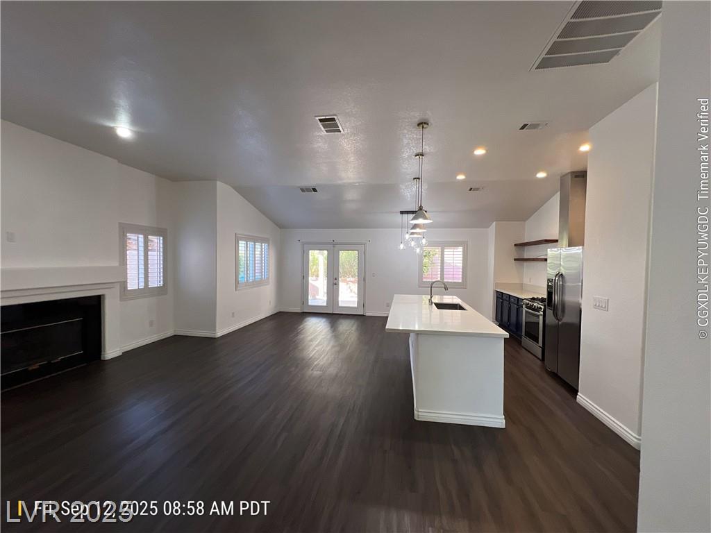 Single story home in Summerlin close to shopping, parks, and highways. Open floor plan adjacent to the stylish kitchen. Upgraded appliances and a large galley style island. Quartz counters, floating shelves, and custom cabinets that open up to the family and dining areas. Primary bath with double under mount sinks and granite counters and a beautifully upgraded shower. Private backyard with a large covered patio that accesses the family room and primary bedroom.