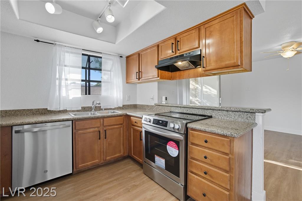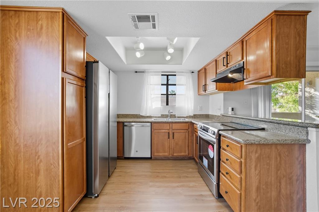 Stunning 2-bedroom, 2-bathroom residence is a perfect blend of style and comfort. The condo boasts a range of top-notch amenities including a clubhouse, tennis courts, and pools. The living room offers a captivating pool view, creating a serene and relaxing atmosphere. The kitchen is equipped with all brand new appliances and adorned with granite countertops. The covered parking ensures your vehicle is protected from the elements. The property's prime location near Summerlin offers easy access to a variety of local attractions and amenities. Experience the best of Las Vegas living in this beautiful home. **Sorry No pets allowed**