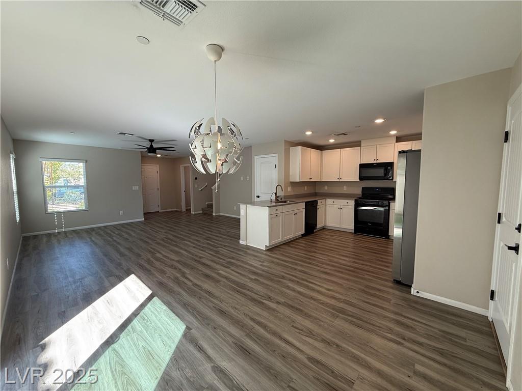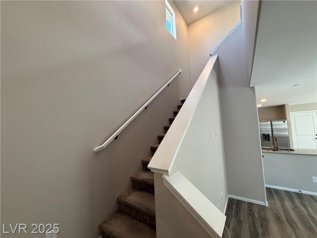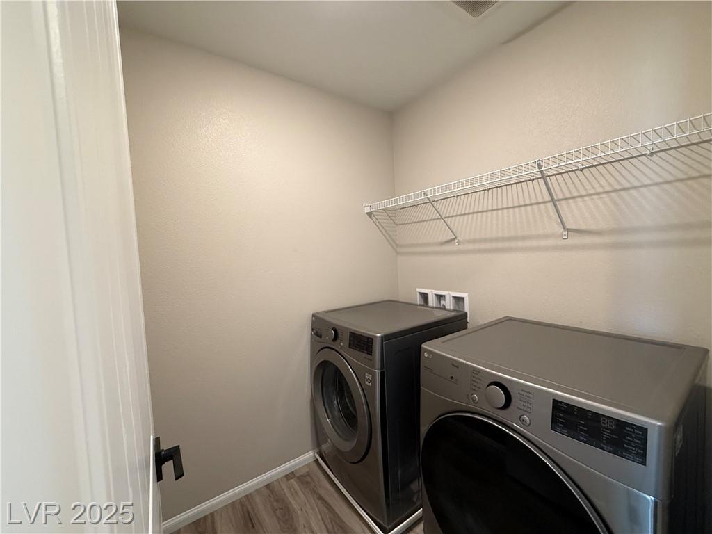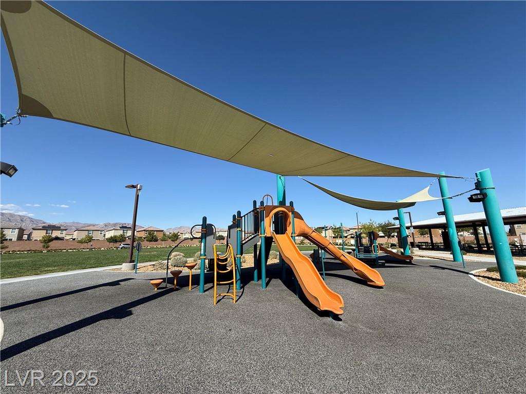 This three bedroom home is nestled into a gated community in the master planned Tule Springs area! Enjoy being 0.5 miles from the 215 entrance and even closer to Target, Starbucks, Saddlebrook Park, and lots more. This home features an open layout, upgraded flooring downstairs, quart counters and more. The primary suite provides two walk in closets, dual sinks, and a walk in shower. This community is located right next to Saddlebrook Park, a short walk away. Apply online today!