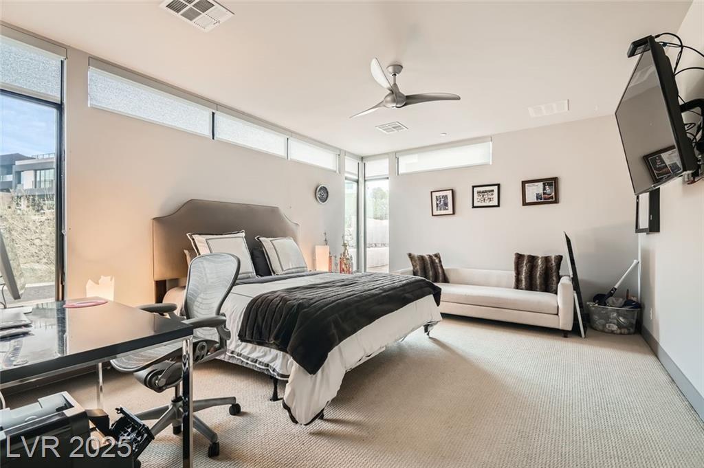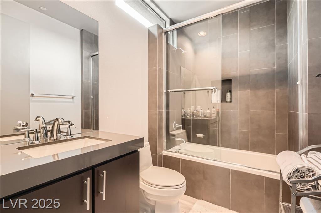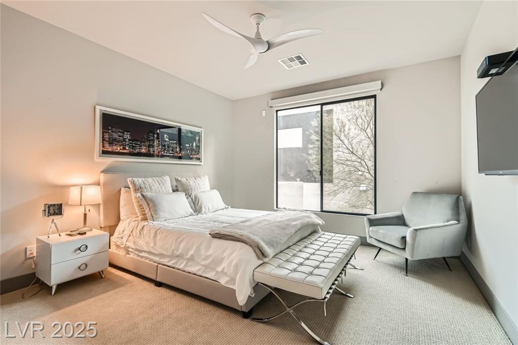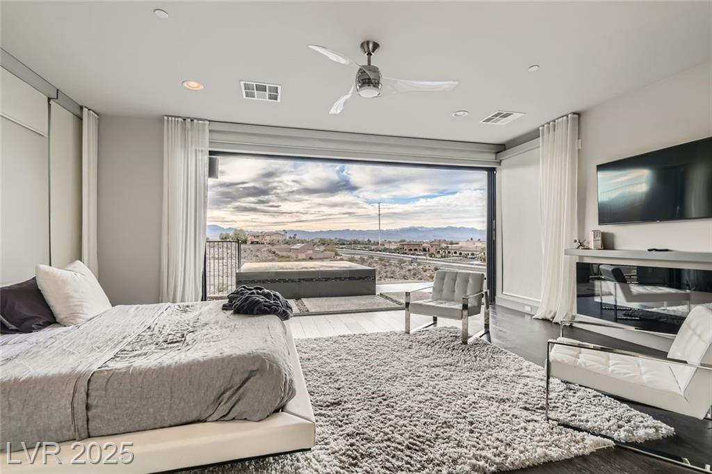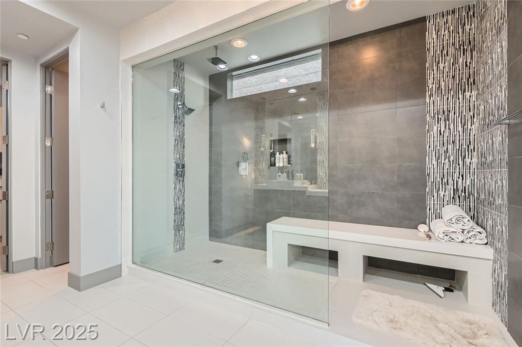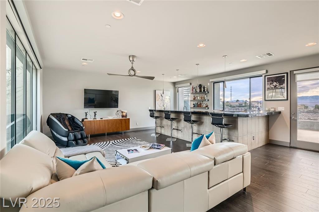 Experience luxury living in this fully furnished Blue Heron masterpiece in the gated Sky Terrace community, offering breathtaking Strip views and seamless indoor-outdoor living. A floating staircase leads to a loft with a built-in wet bar, while the gourmet kitchen boasts an L-shaped counter, central island, sleek cabinetry, and high-end Kitchenaid appliances, including a built-in espresso machine. The main floor primary suite opens to the infinity-edge pool and zero gravity spa, the bath featuring dual vanities, an oversized shower, and a custom walk-in closet. Enjoy a built-in BBQ, fire pit, pool table, and stunning infinity-edge pool and zero gravity spa outside. For ultimate security, the home features 24/7 monitored cameras, shatterproof window film, and electric shades. Live elevated in this exclusive Las Vegas retreat. Ideal location with easy access to Harry Reed International Airport, the Las Vegas strip, and excellent shopping and dining. *No Pets Allowed*
