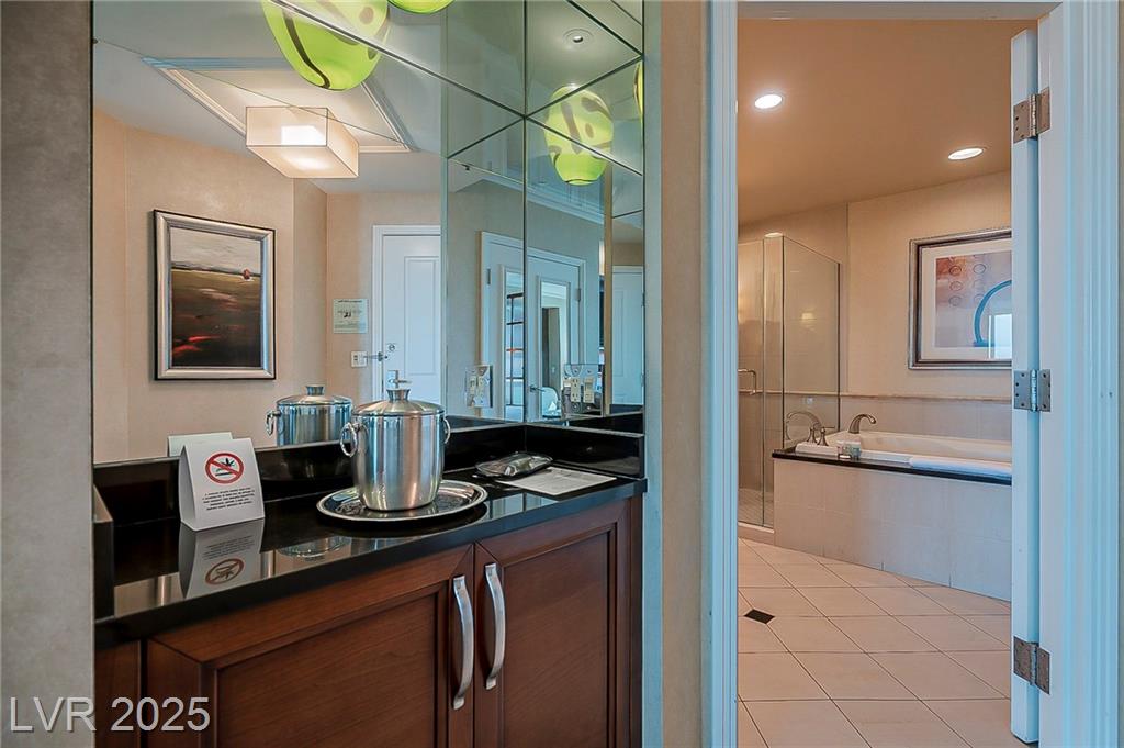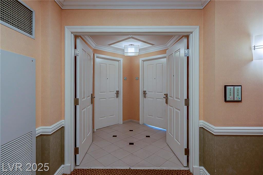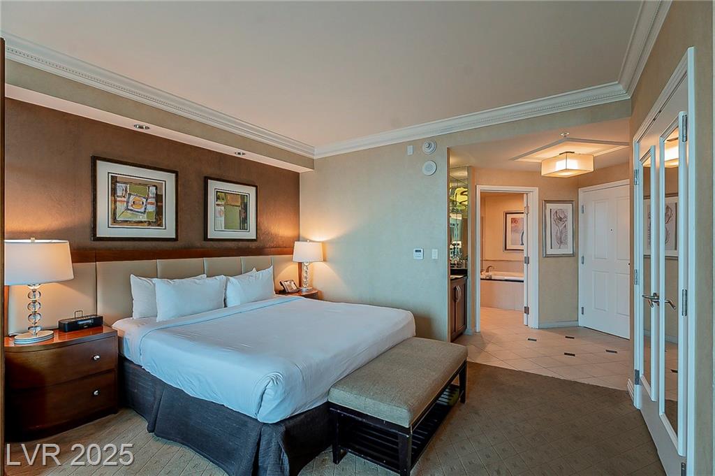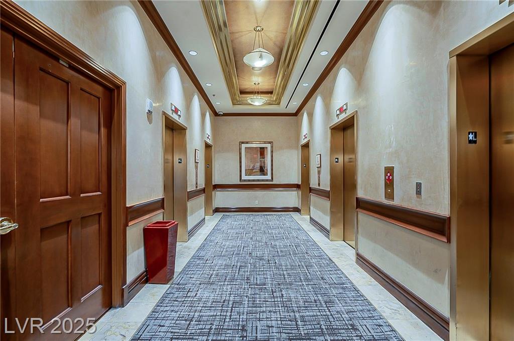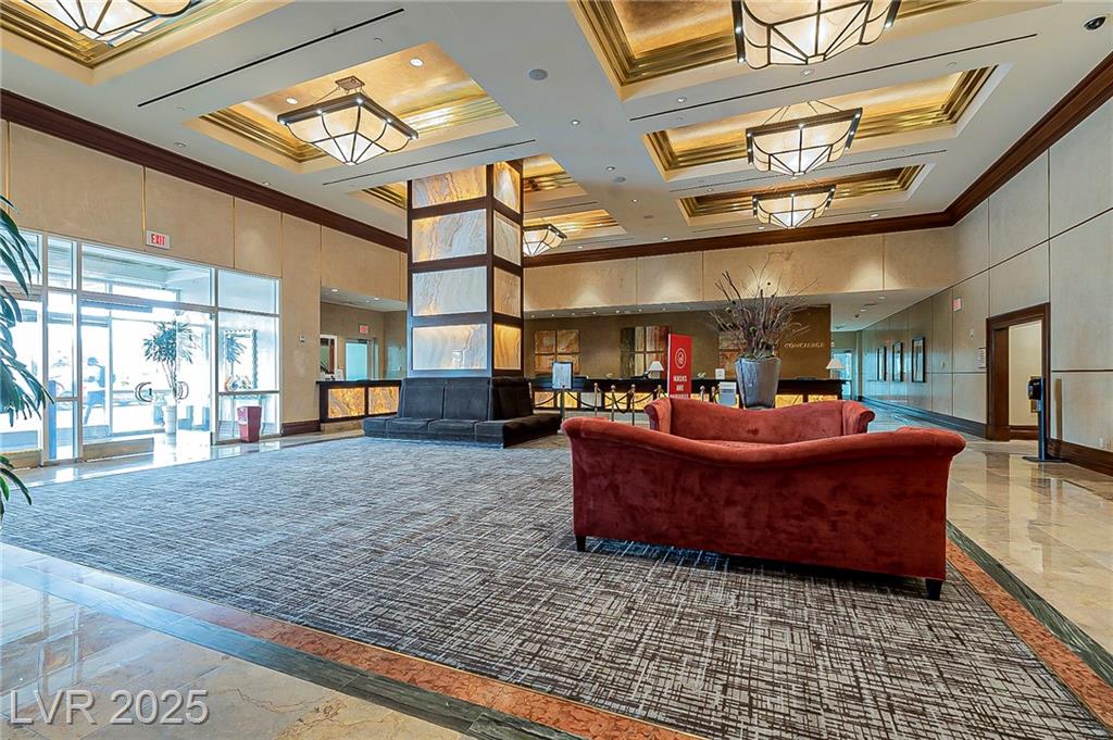 From Las Vegas Blvd, head E on Harmon past Audrie St. Enter the guard gate on the right. The unit is located in Tower 1 on the 14th floor.