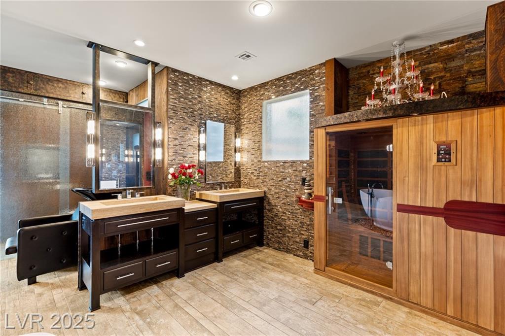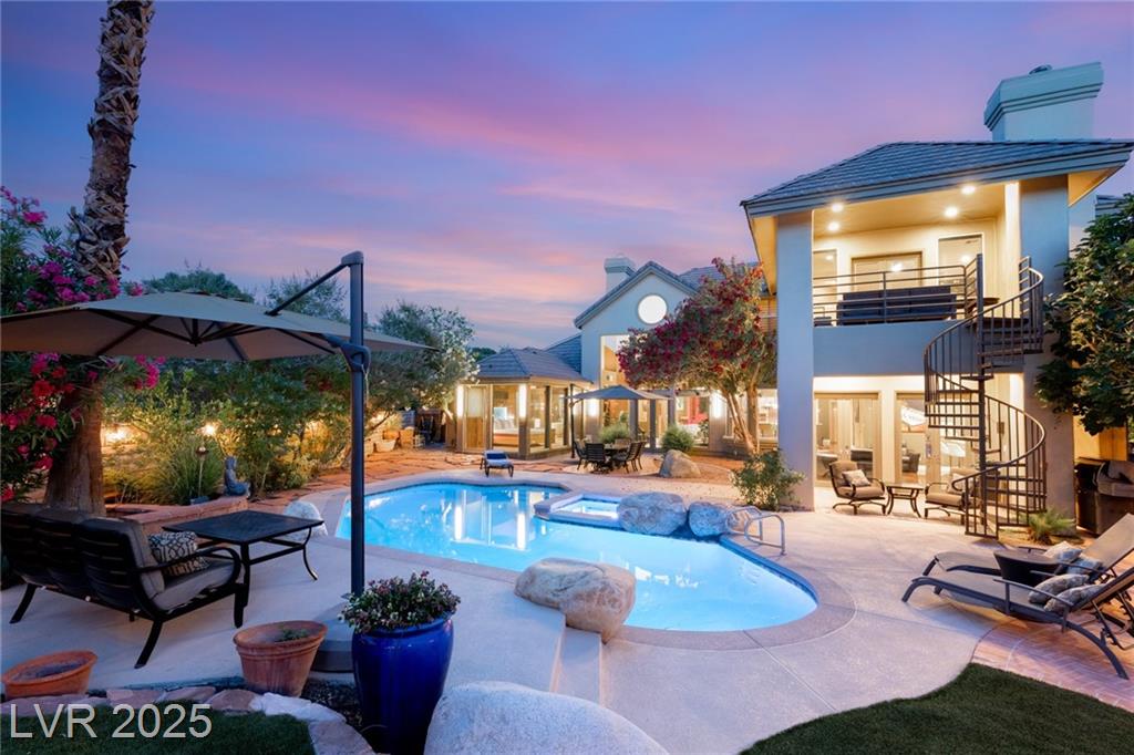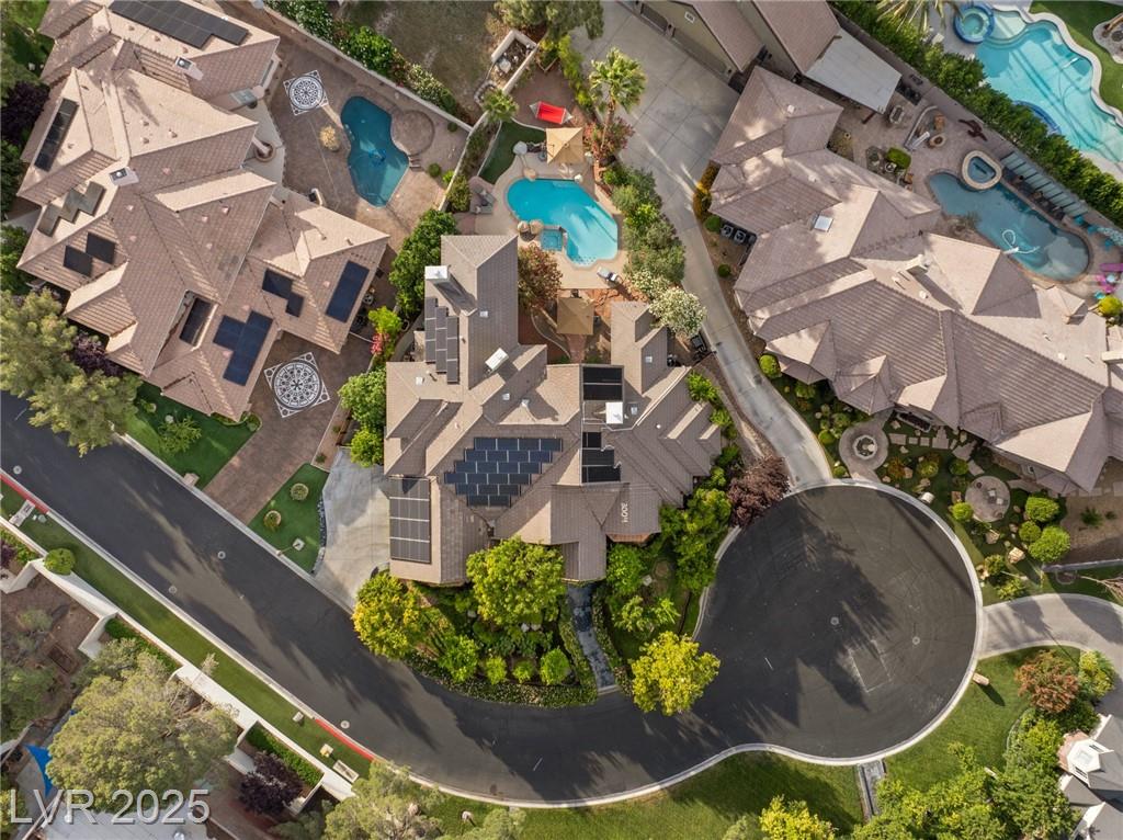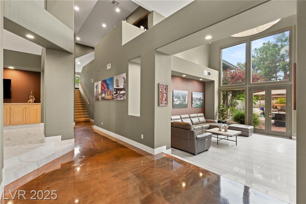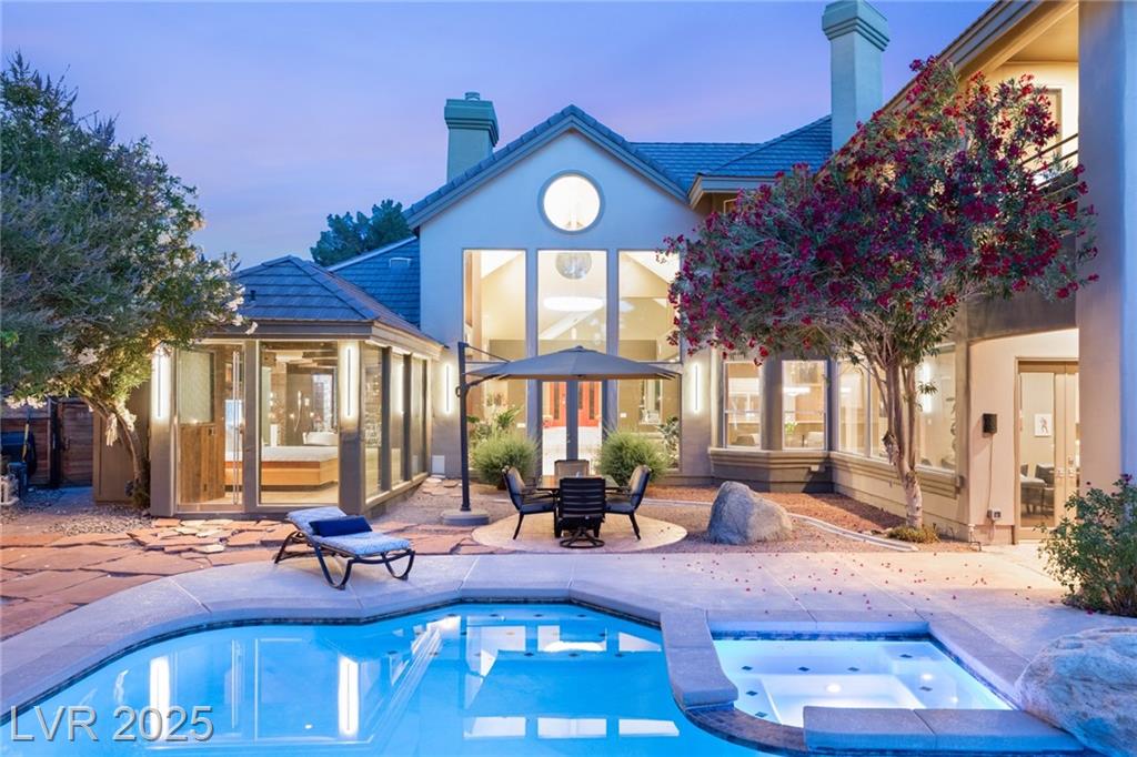 One-of-a-kind home with stunning architecture, multiple remodels and upgrades including Solar and Powerwalls to provide 80-90% of the power for free. 3 NEMA 14-50 outlets to charge your electric vehicles. NEST security cameras secure the perimeter (and the surrounding Astoria Estates community). Stunning multi-color metallic epoxy flooring ties together the downstairs living spaces and large format marble look tile decorates the entrance, living and dining areas. The master suite is truly a luxurious retreat complete with waterfall, infra-red dry sauna, 11 digitally controlled shower heads and relaxing soak tub in the center of it all. The master bedroom looks out on the lush green grounds and swimming pool with floor to ceiling windows. The master closet is three stories with 2 chandeliers & bay windows This house is not your typical Vegas home. It features detail & soul that is missing from most of the high-end luxury homes that dot the Las Vegas and Henderson valley. Option to buy!