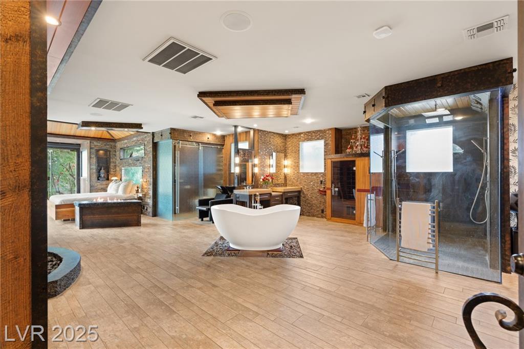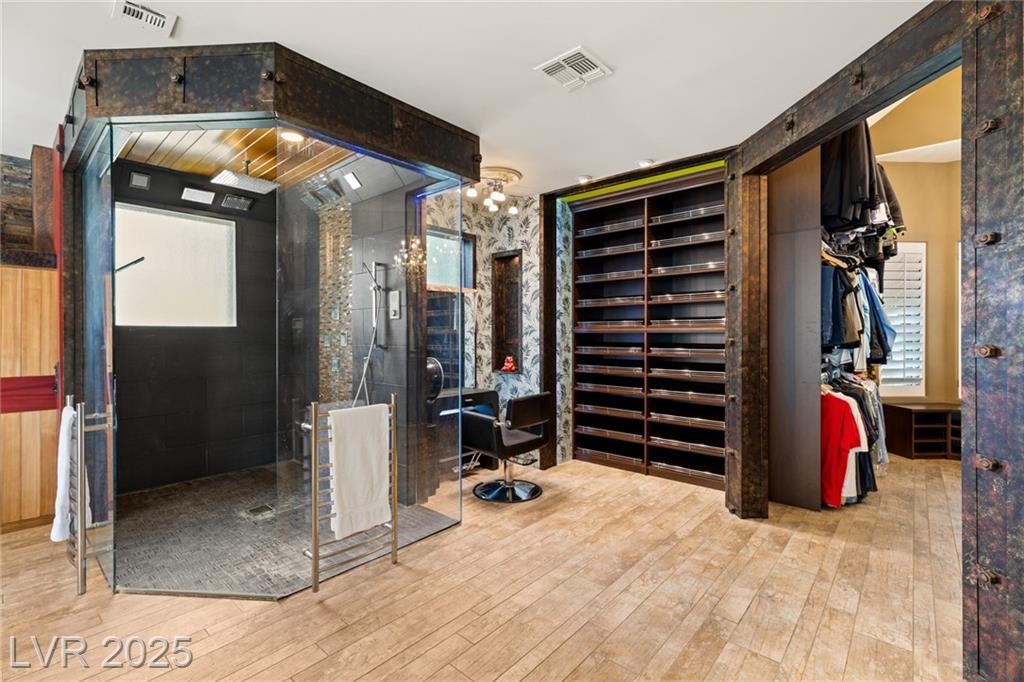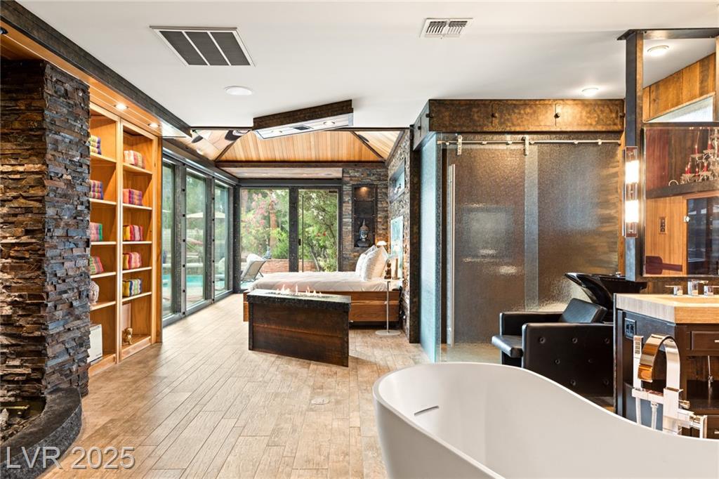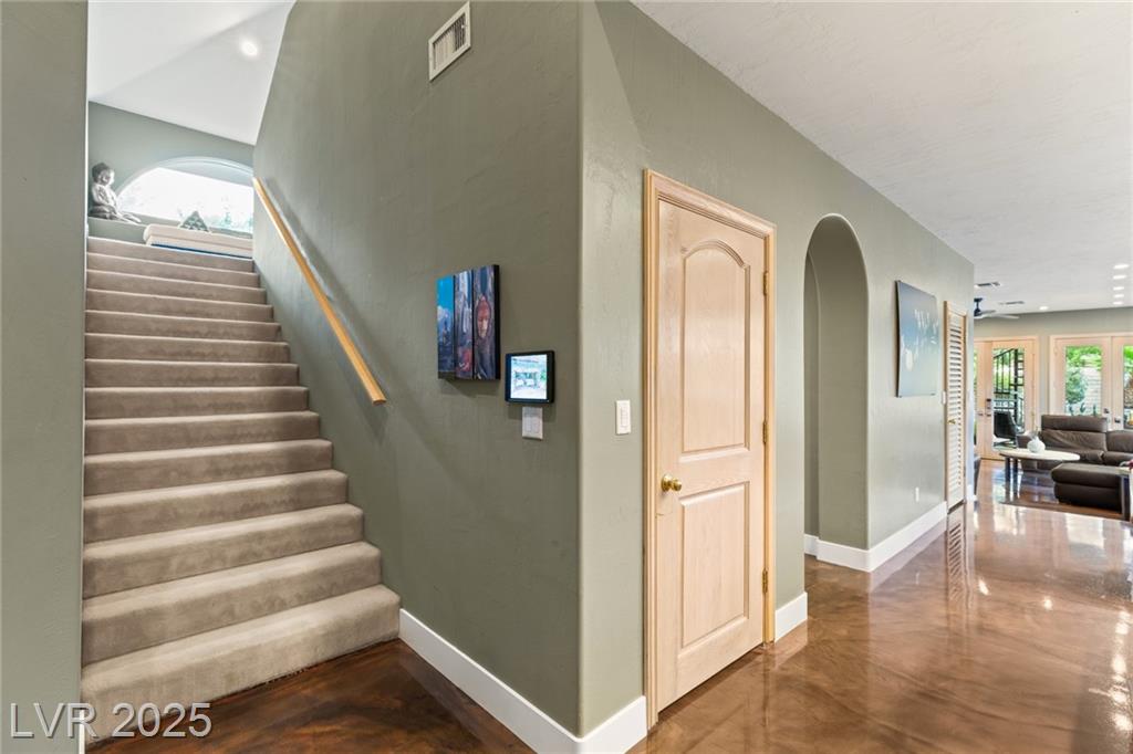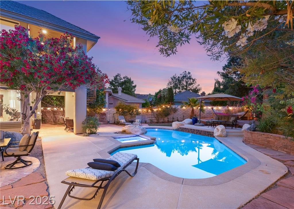 One-of-a-kind home with stunning architecture, multiple remodels and upgrades including Solar and Powerwalls to provide 80-90% of the power for free. 3 NEMA 14-50 outlets to charge your electric vehicles. NEST security cameras secure the perimeter (and the surrounding Astoria Estates community). Stunning multi-color metallic epoxy flooring ties together the downstairs living spaces and large format marble look tile decorates the entrance, living and dining areas. The master suite is truly a luxurious retreat complete with waterfall, infra-red dry sauna, 11 digitally controlled shower heads and relaxing soak tub in the center of it all. The master bedroom looks out on the lush green grounds and swimming pool with floor to ceiling windows. The master closet is three stories with 2 chandeliers & bay windows This house is not your typical Vegas home. It features detail & soul that is missing from most of the high-end luxury homes that dot the Las Vegas and Henderson valley. Option to buy!