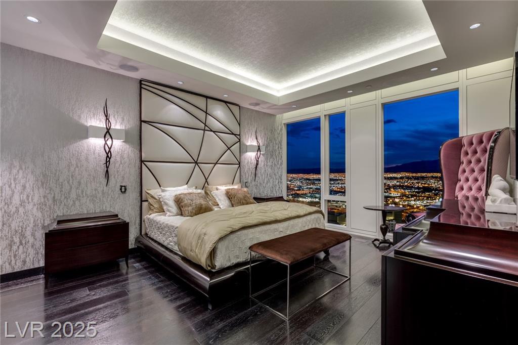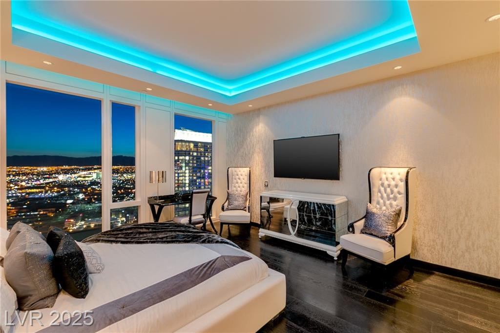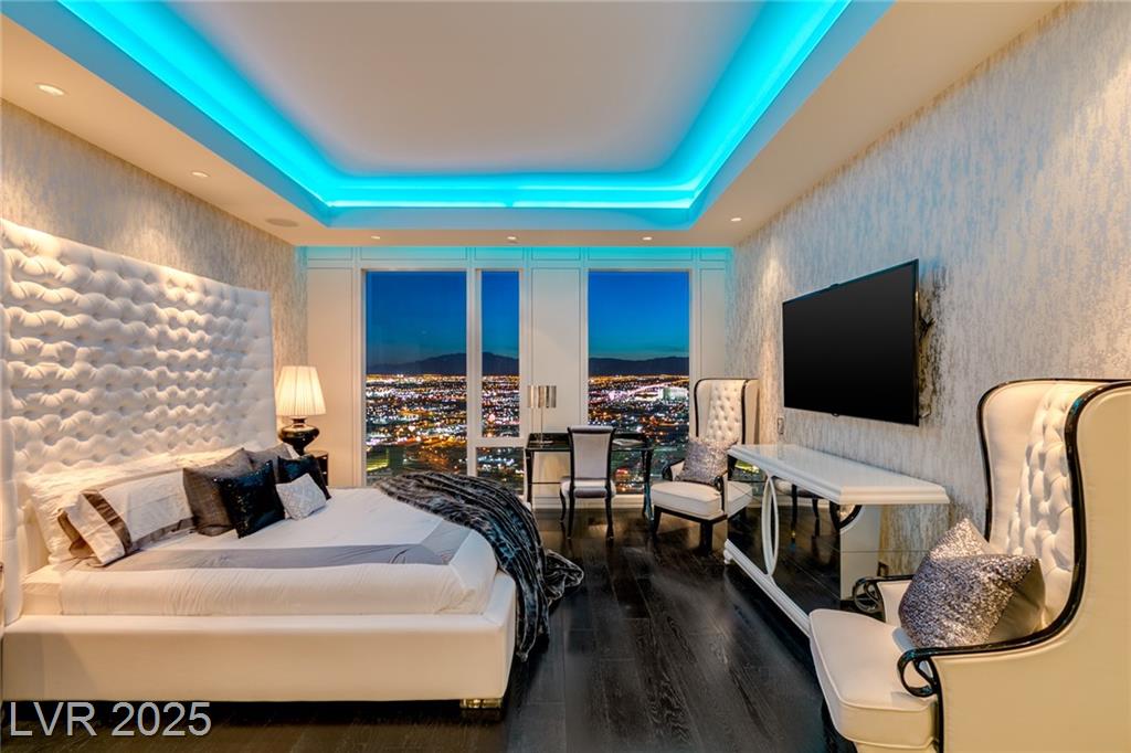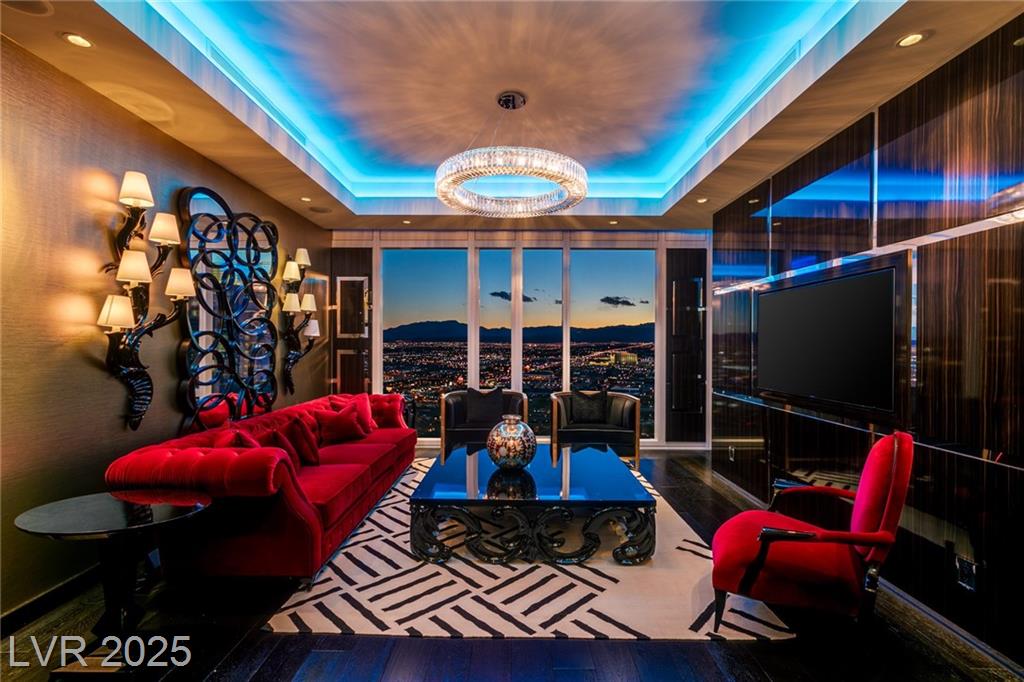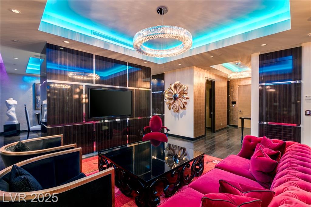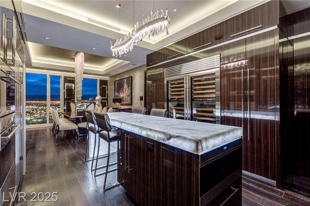 Luxurious Waldorf Astoria Custom built Penthouse. Exquisite Top of the Line Finishes and Interior Design with Furnishings by Celebrity Designer Christopher Guy. One of a kind Gourmet Kitchen w/Custom Quartzite Counter Tops & Illuminated Onyx Island, 250 Bottle Wine Fridge, Zebra Wood Artisan Ebony Cabinetry, Bali Bali Hardware, Grohe Fixtures, Wolf Appliances and so much more! A must See! Residents enjoy world-class amenities: on-site concierge, gourmet dining, private valet, yoga studio, fitness center, boardroom, resort pool, and a renowned spa. Just steps from elite shopping, fine dining, acclaimed art galleries, live entertainment, and the T-Mobile Arena, this is a rare opportunity to own a meticulously curated residence in the heart of the legendary Las Vegas Strip.