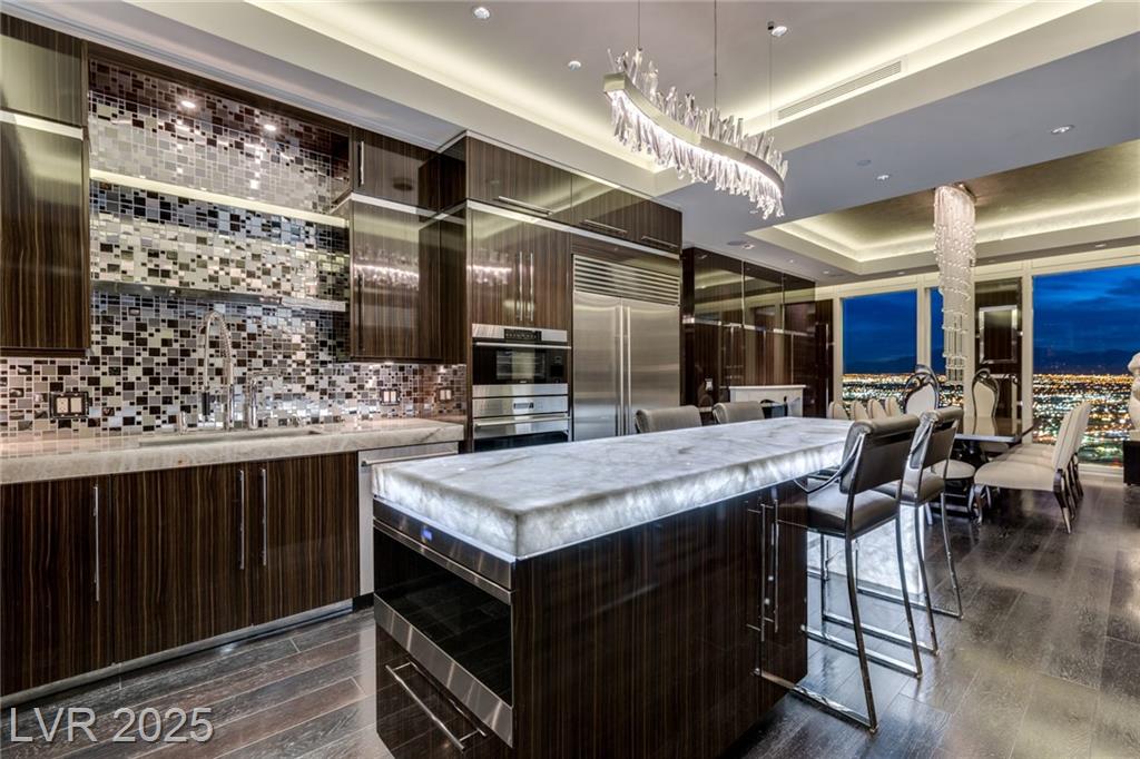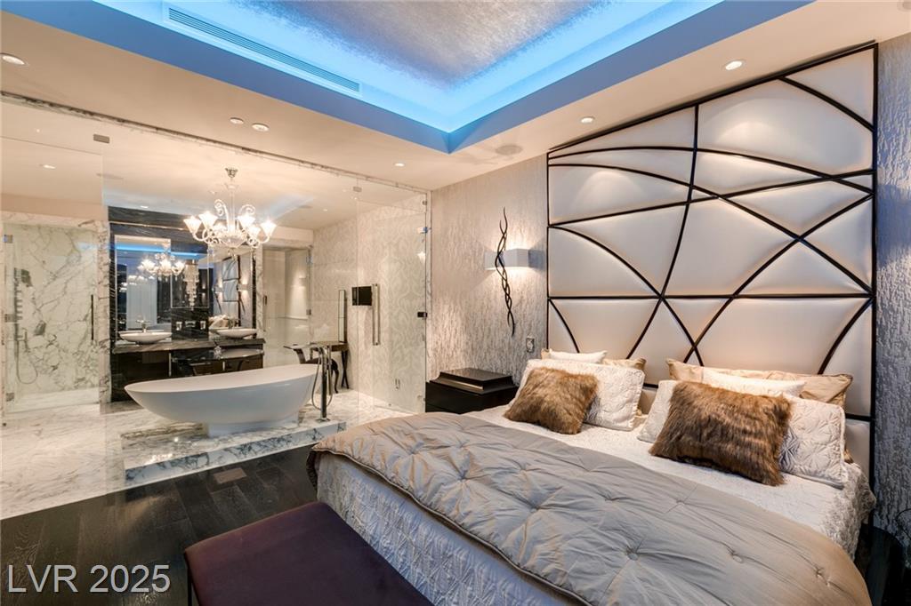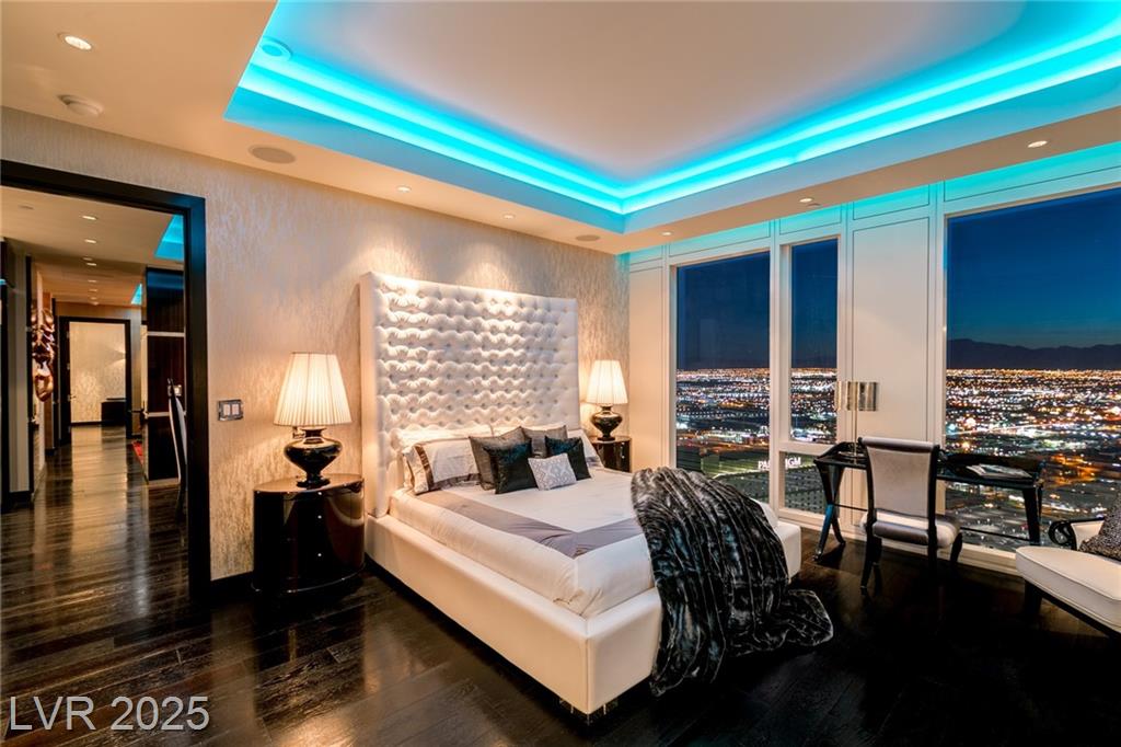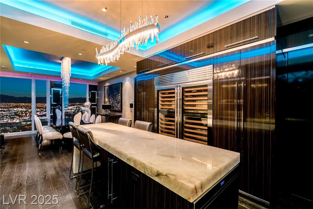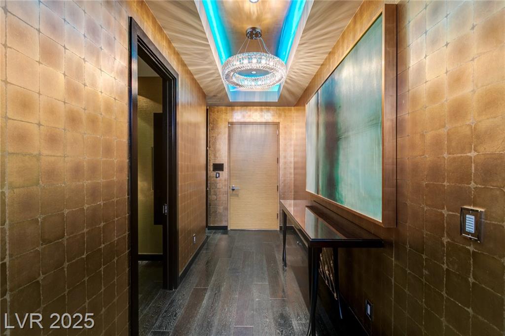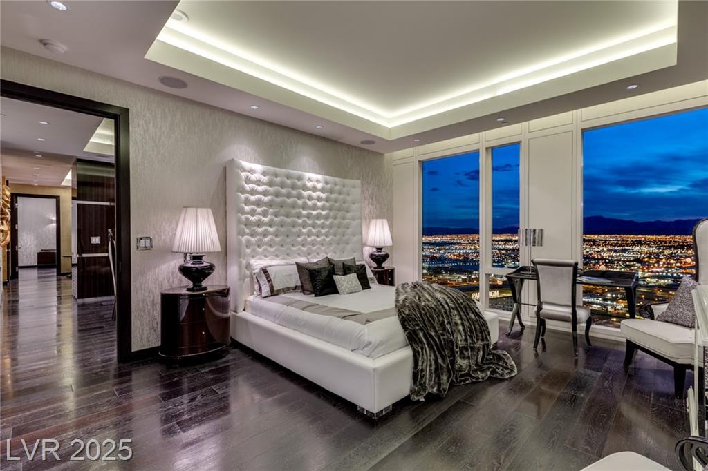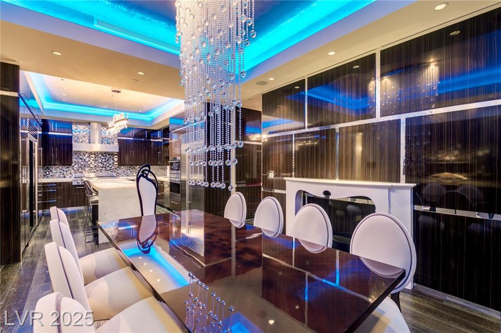 Luxurious Waldorf Astoria Custom built Penthouse. Exquisite Top of the Line Finishes and Interior Design with Furnishings by Celebrity Designer Christopher Guy. One of a kind Gourmet Kitchen w/Custom Quartzite Counter Tops & Illuminated Onyx Island, 250 Bottle Wine Fridge, Zebra Wood Artisan Ebony Cabinetry, Bali Bali Hardware, Grohe Fixtures, Wolf Appliances and so much more! A must See! Residents enjoy world-class amenities: on-site concierge, gourmet dining, private valet, yoga studio, fitness center, boardroom, resort pool, and a renowned spa. Just steps from elite shopping, fine dining, acclaimed art galleries, live entertainment, and the T-Mobile Arena, this is a rare opportunity to own a meticulously curated residence in the heart of the legendary Las Vegas Strip.