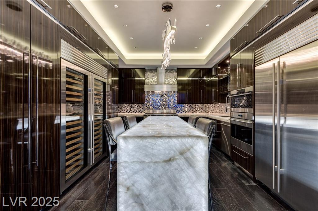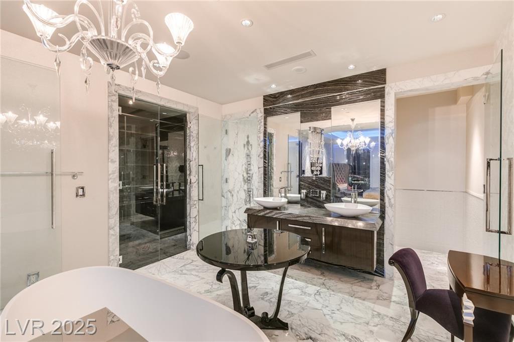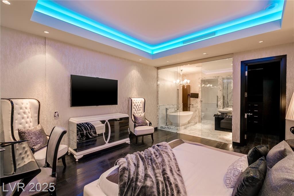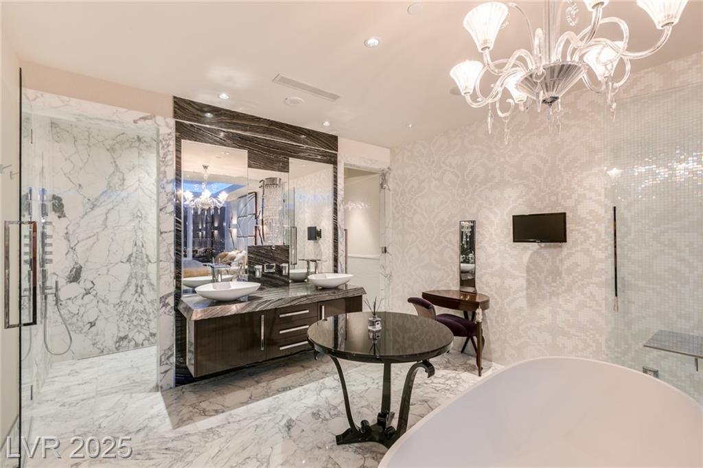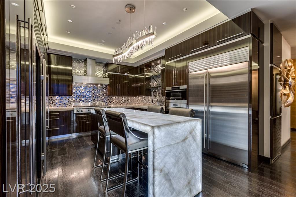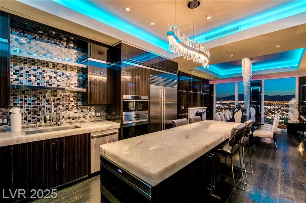 Luxurious Waldorf Astoria Custom built Penthouse. Exquisite Top of the Line Finishes and Interior Design with Furnishings by Celebrity Designer Christopher Guy. One of a kind Gourmet Kitchen w/Custom Quartzite Counter Tops & Illuminated Onyx Island, 250 Bottle Wine Fridge, Zebra Wood Artisan Ebony Cabinetry, Bali Bali Hardware, Grohe Fixtures, Wolf Appliances and so much more! A must See! Residents enjoy world-class amenities: on-site concierge, gourmet dining, private valet, yoga studio, fitness center, boardroom, resort pool, and a renowned spa. Just steps from elite shopping, fine dining, acclaimed art galleries, live entertainment, and the T-Mobile Arena, this is a rare opportunity to own a meticulously curated residence in the heart of the legendary Las Vegas Strip.