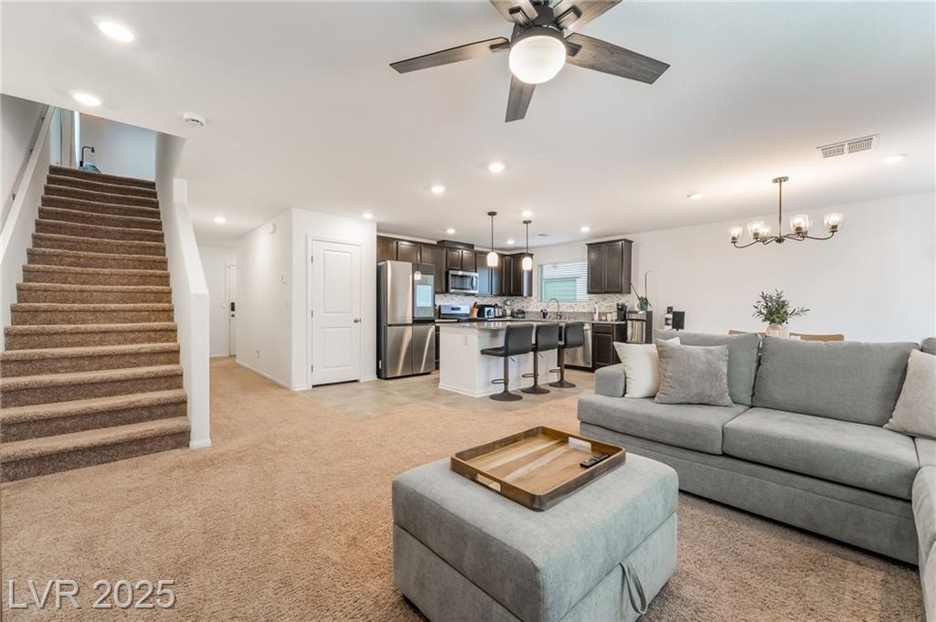 Welcome to this like-new residence, built in 2025, showcasing a modern open floor plan designed for both comfort and style. This spacious home offers 5 bedrooms, including a conveniently located downstairs bedroom with a full bath, ideal for guests or multi-generational living. Upstairs, a versatile loft provides the perfect space for a secondary living area, playroom, or home office. The chef’s kitchen features a large center island, perfect for everyday living and entertaining. Enjoy a low-maintenance backyard, along with premium upgrades such as an alkaline water softener and a whole-home water filtration system.