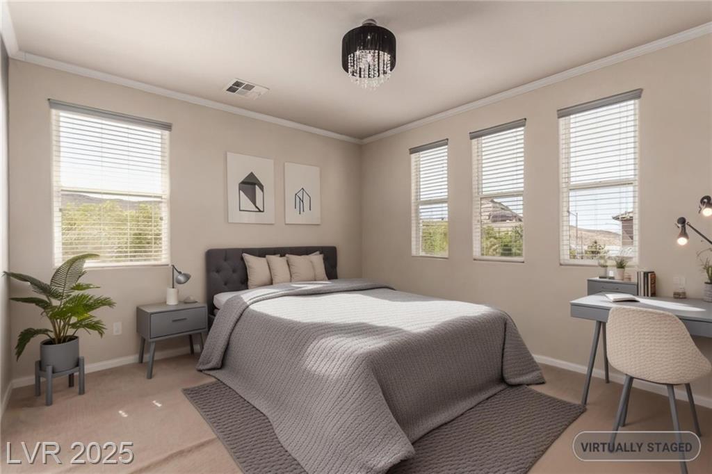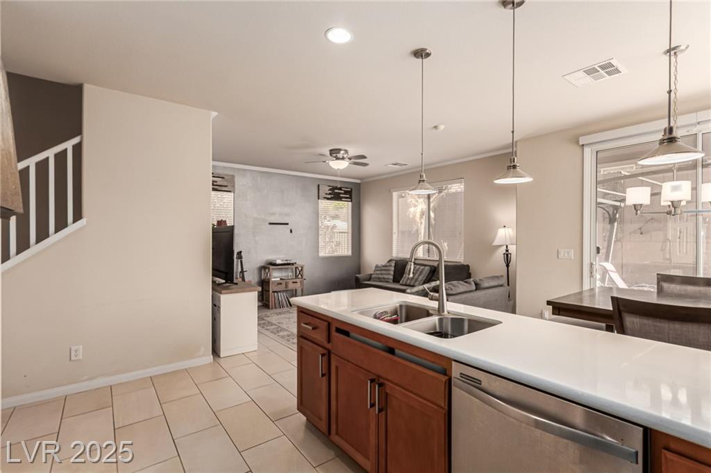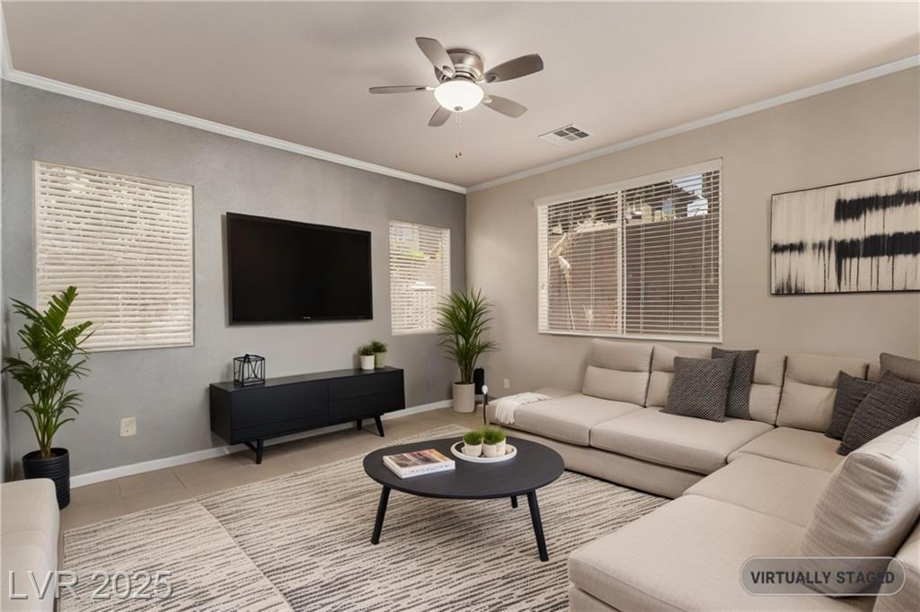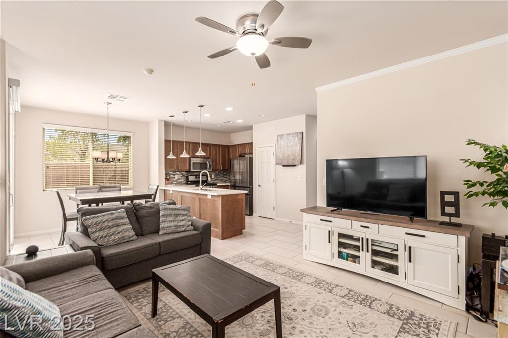 Nestled in the prestigious guard-gated Rhodes Ranch community, 389 Fringe Ruff Dr, Las Vegas, NV 89148, is a captivating single-family home that exudes modern elegance and timeless charm. Built in 2009, this stunning 2-story residence spans 1,714 square feet on a generous 4,792-square-foot lot, offering an enviable blend of luxury and comfort. With 3 spacious bedrooms and 2.5 beautifully appointed bathrooms, this home is a masterpiece of design, featuring soaring ceilings adorned with intricate crown moldings and dazzling light fixtures that cast a warm, inviting glow. The recently remodeled kitchen is a chef’s dream, boasting sleek finishes and top-tier appliances, seamlessly flowing into an open floorplan perfect for both grand entertaining and intimate gatherings. This isn’t just a home—it’s a lifestyle, waiting to captivate its next fortunate owner.