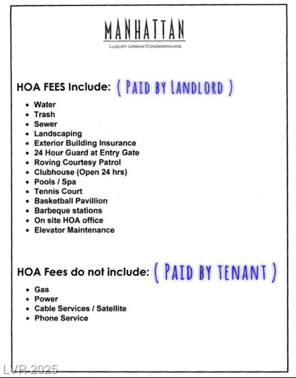 From I-15 South, exit at Blue Diamond Road and head east. Turn right onto Las Vegas Boulevard, then left on Serene Avenue. Enter the community gate on your left. Pl present your business card and photo ID to the guard to receive a key fob for building and clubhouse access. After entering the gate, turn Right and proceed to Building 62. Which will be the 1st building on your right. Park in front of main Park area for easier Building access.