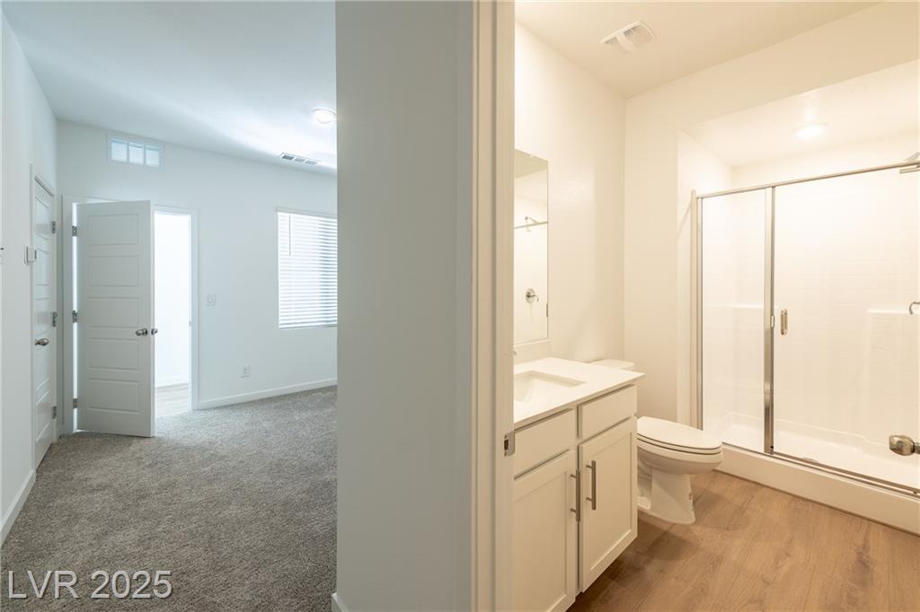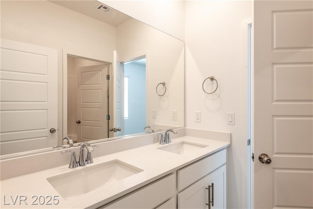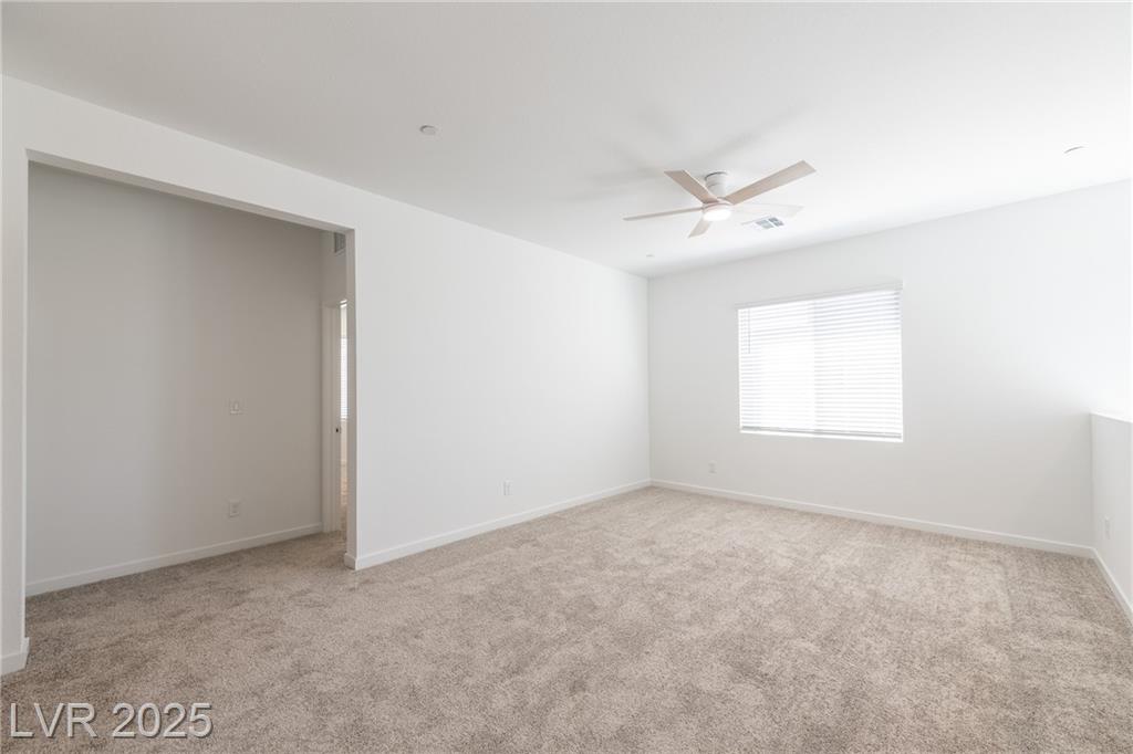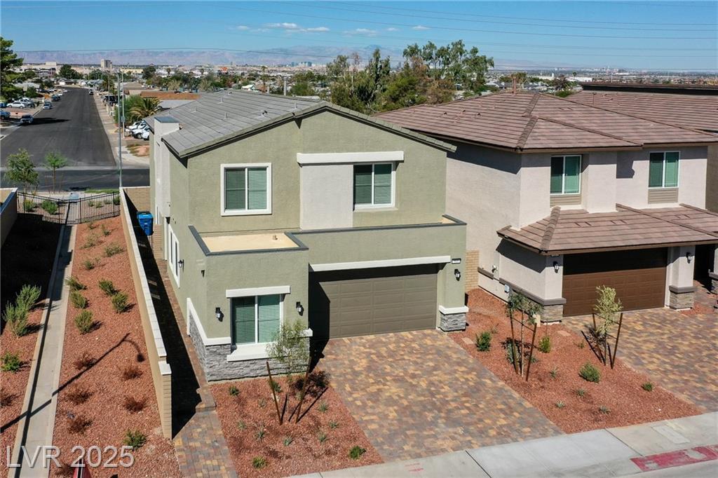 Brand new and never lived in, this stunning NextGen home in Cadence is move-in ready. The private NextGen suite features its own entrance, kitchenette, laundry, bedroom, and living area, perfect for multigenerational living or guests. This 4-bedroom, 4-bathroom residence is thoughtfully designed with a spacious loft upstairs, and every bedroom is connected to a bathroom for comfort and convenience. The primary suite offers beautiful city and strip views, while the backyard provides privacy with no neighbors behind. Modern finishes elevate the home throughout, stainless steel appliances, pantry, luxury vinyl flooring, ceiling fans, epoxy-coated garage floor, water softener and reverse osmosis drinking water system. Outside, enjoy low-maintenance landscaping with pavers, synthetic grass, and desert-friendly plants. Virtual Tour available.