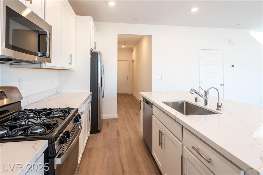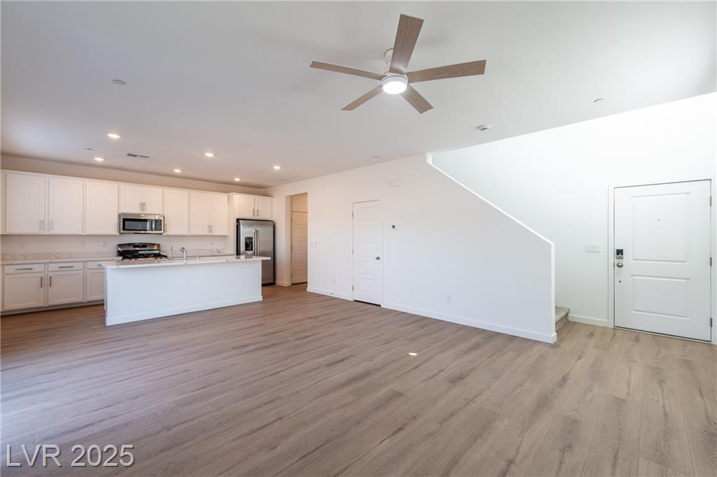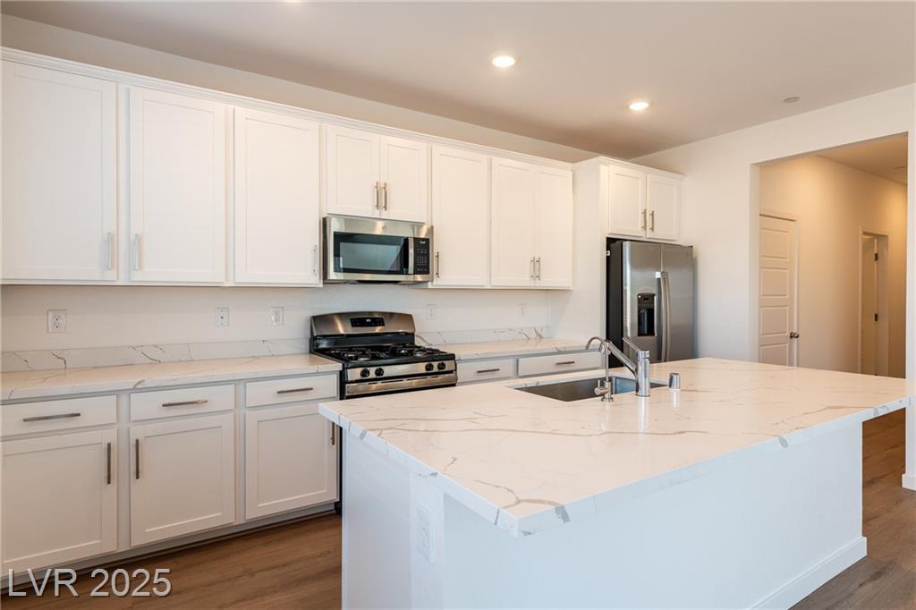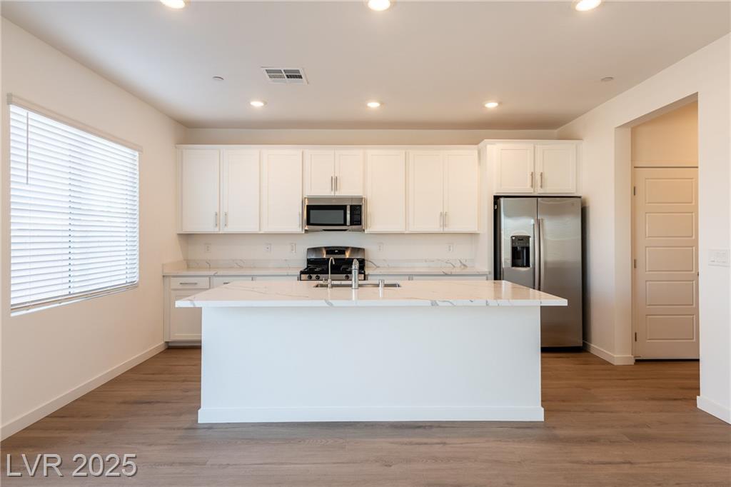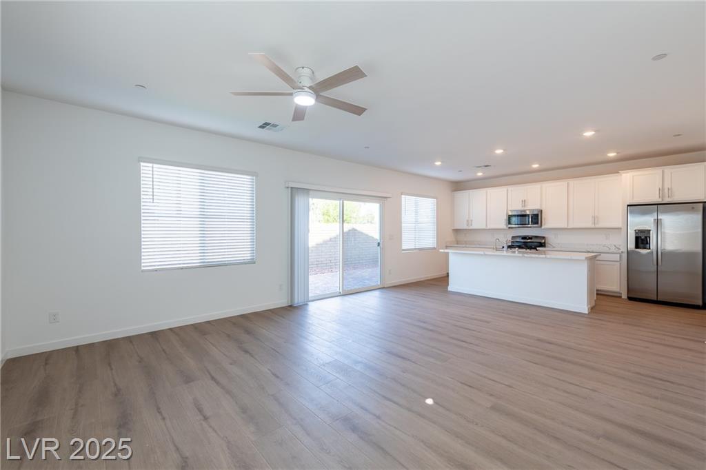 Brand new and never lived in, this stunning NextGen home in Cadence is move-in ready. The private NextGen suite features its own entrance, kitchenette, laundry, bedroom, and living area, perfect for multigenerational living or guests. This 4-bedroom, 4-bathroom residence is thoughtfully designed with a spacious loft upstairs, and every bedroom is connected to a bathroom for comfort and convenience. The primary suite offers beautiful city and strip views, while the backyard provides privacy with no neighbors behind. Modern finishes elevate the home throughout, stainless steel appliances, pantry, luxury vinyl flooring, ceiling fans, epoxy-coated garage floor, water softener and reverse osmosis drinking water system. Outside, enjoy low-maintenance landscaping with pavers, synthetic grass, and desert-friendly plants. Virtual Tour available.