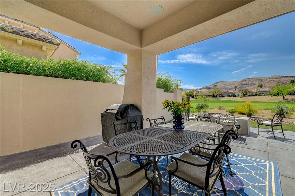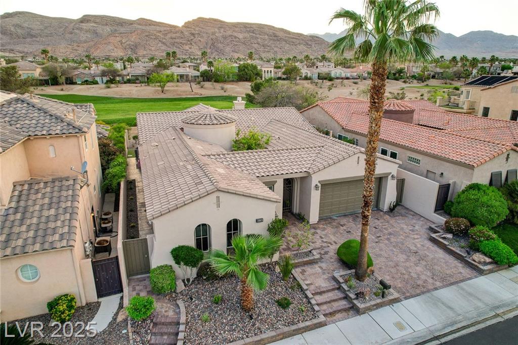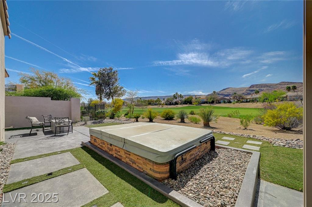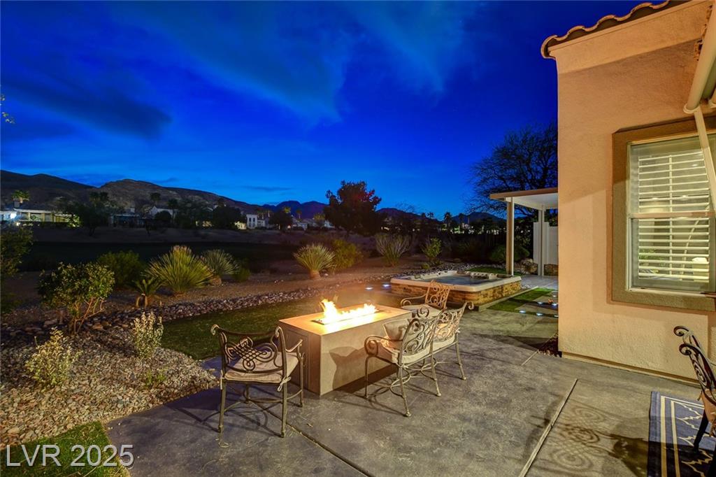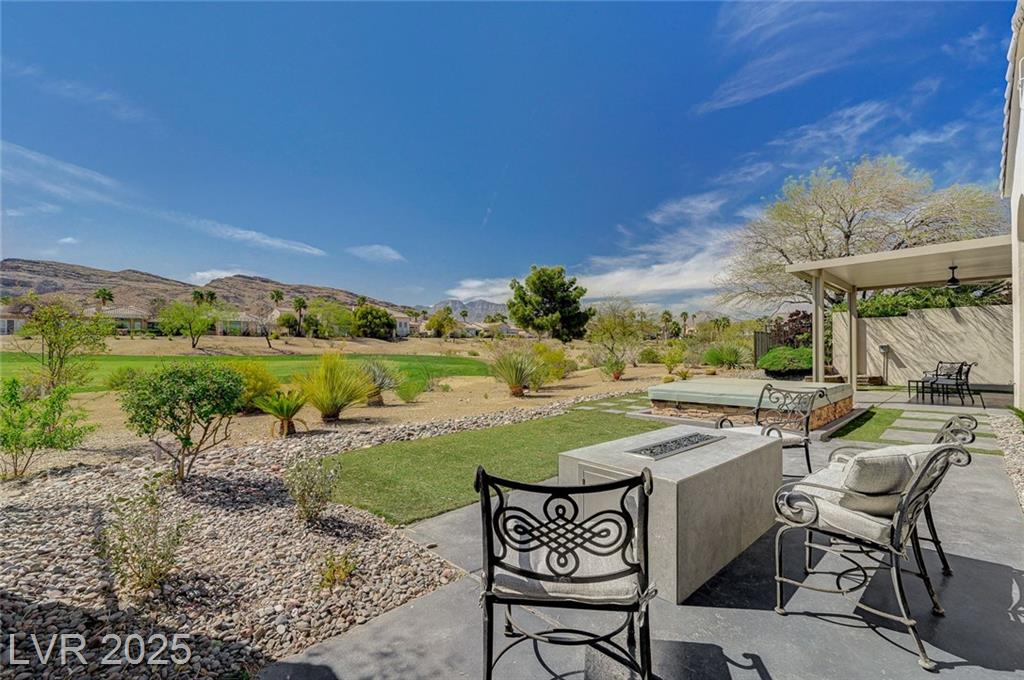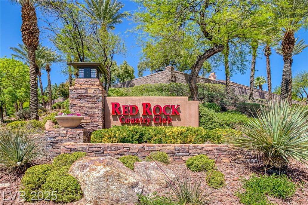 Nestled in the prestigious Red Rock Country Club, this serene single-story home blends comfort and style. The bright gourmet kitchen features white cabinetry, stainless-steel appliances, and quartz countertops—perfect for everyday living and entertaining. An open-concept layout fills the home with natural light, while the spacious family room with a cozy fireplace offers stunning views. Each of the three bedrooms includes a private en-suite bath. The luxurious primary suite opens to a covered patio with breathtaking golf course and mountain views, and includes a spa-inspired bathroom with a walk-in shower, dual vanities, and a makeup station. Outside, relax in your private spa and enjoy the magnificent panoramic surroundings and enjoy tranquil night serenity sitting next to the new fire feature!