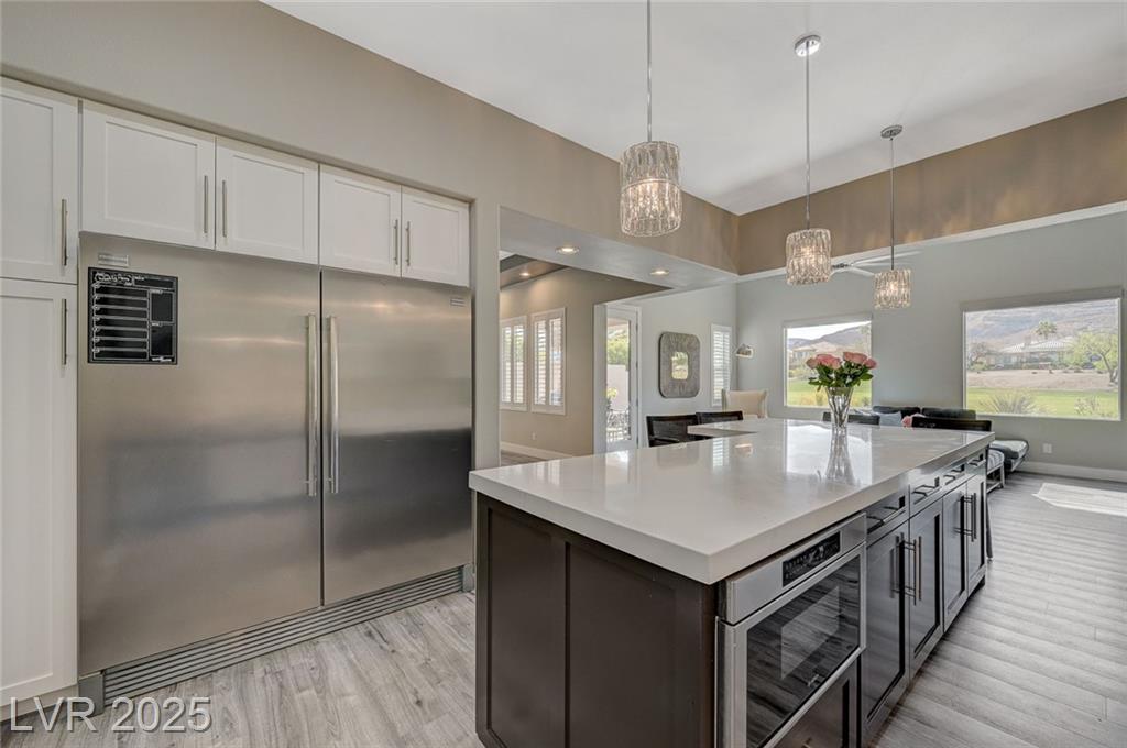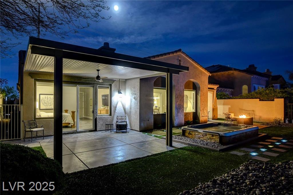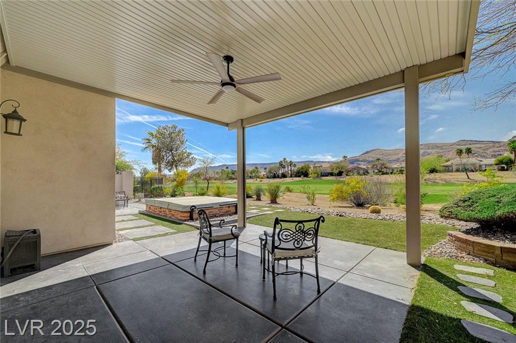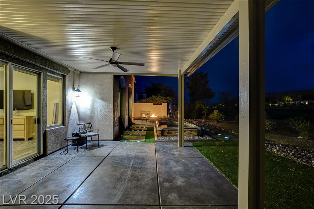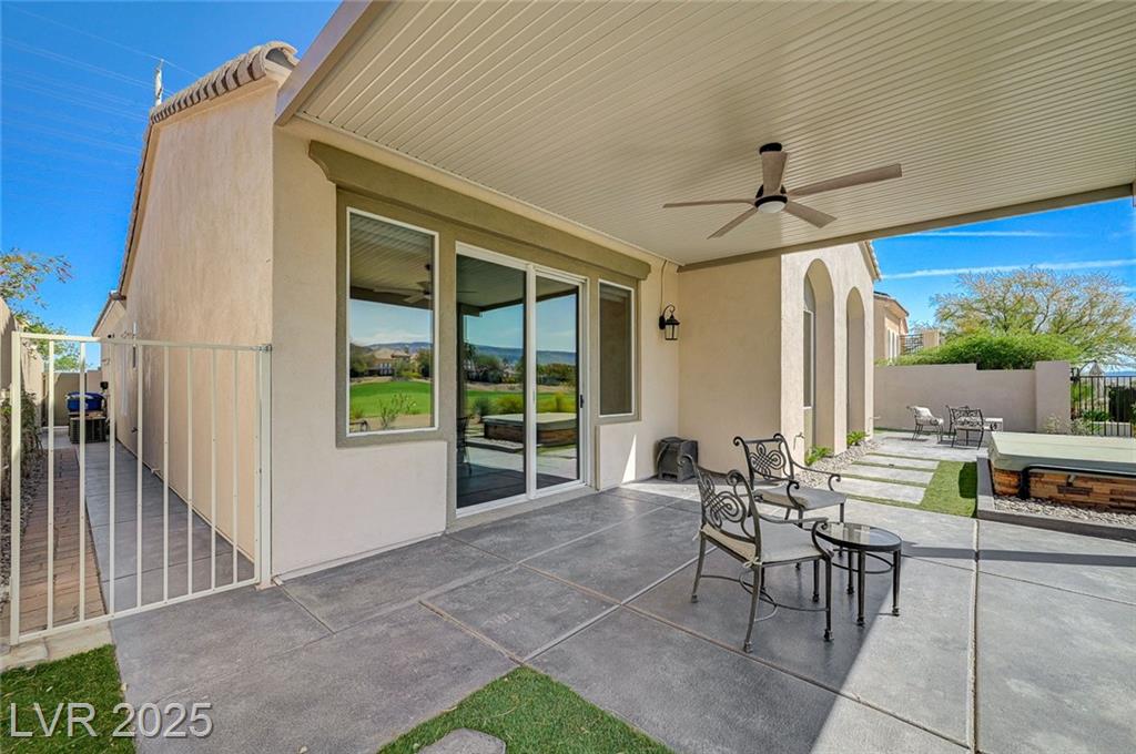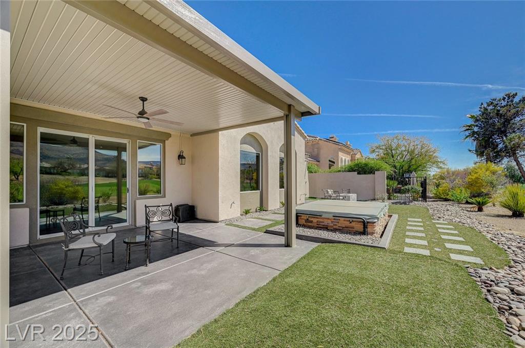 Nestled in the prestigious Red Rock Country Club, this serene single-story home blends comfort and style. The bright gourmet kitchen features white cabinetry, stainless-steel appliances, and quartz countertops—perfect for everyday living and entertaining. An open-concept layout fills the home with natural light, while the spacious family room with a cozy fireplace offers stunning views. Each of the three bedrooms includes a private en-suite bath. The luxurious primary suite opens to a covered patio with breathtaking golf course and mountain views, and includes a spa-inspired bathroom with a walk-in shower, dual vanities, and a makeup station. Outside, relax in your private spa and enjoy the magnificent panoramic surroundings and enjoy tranquil night serenity sitting next to the new fire feature!