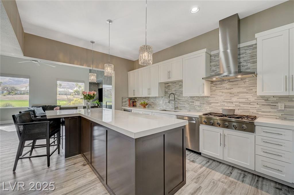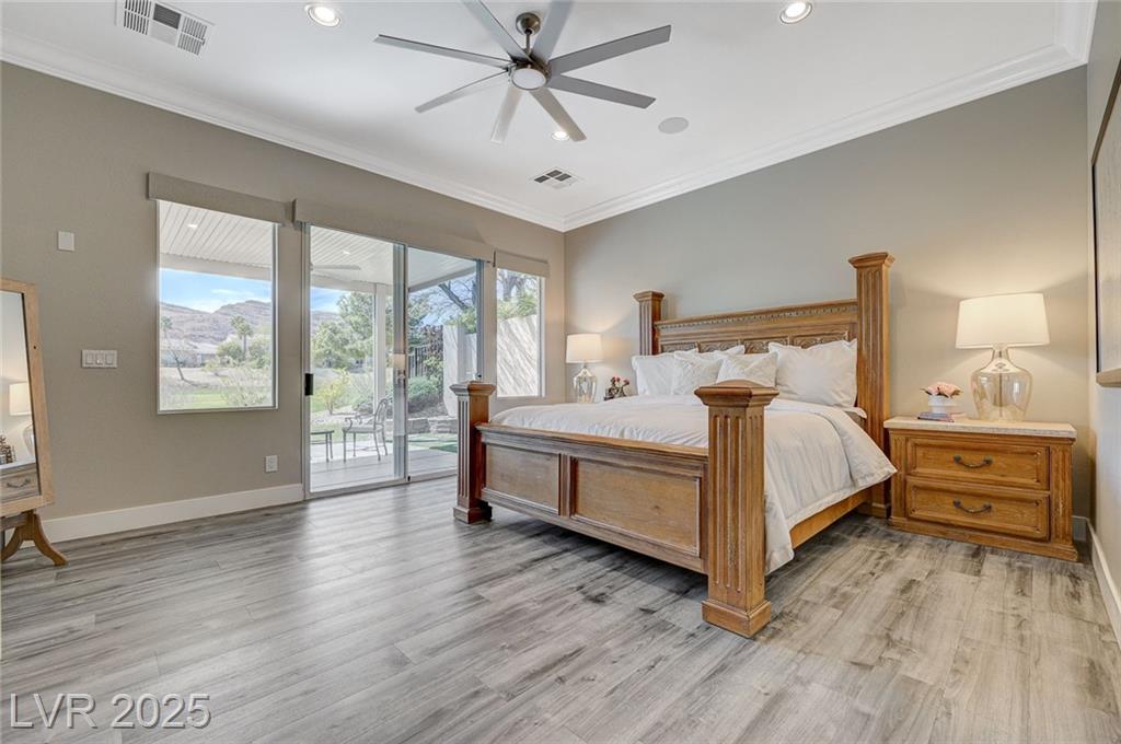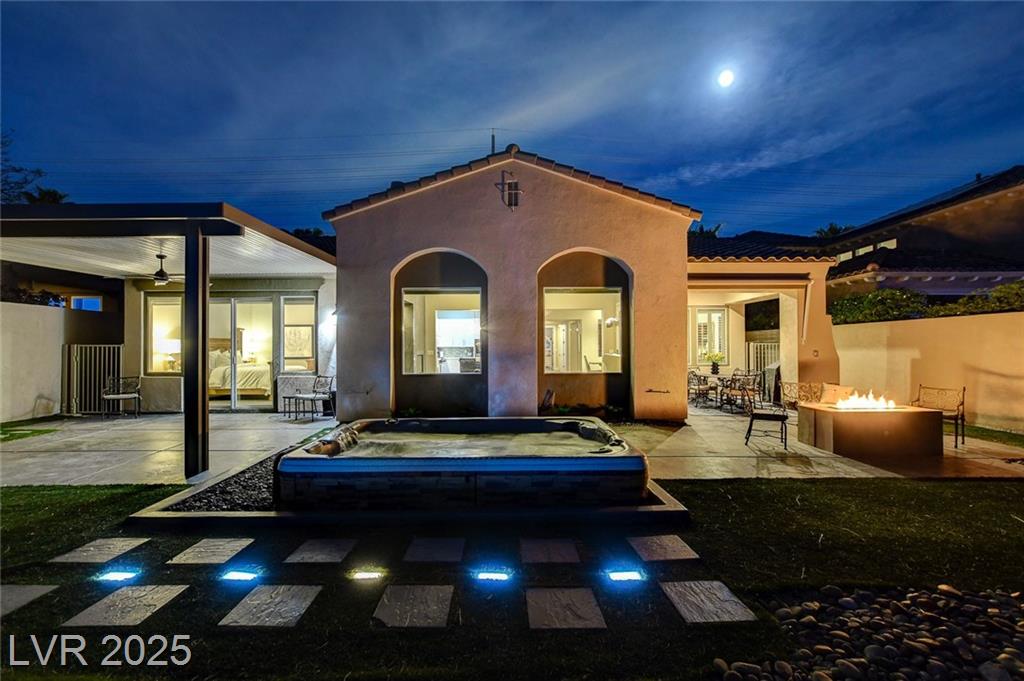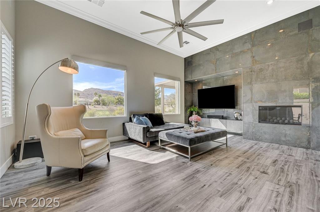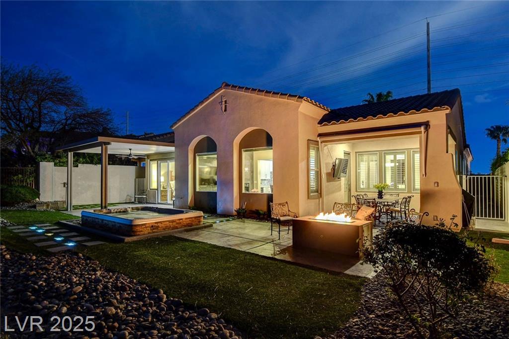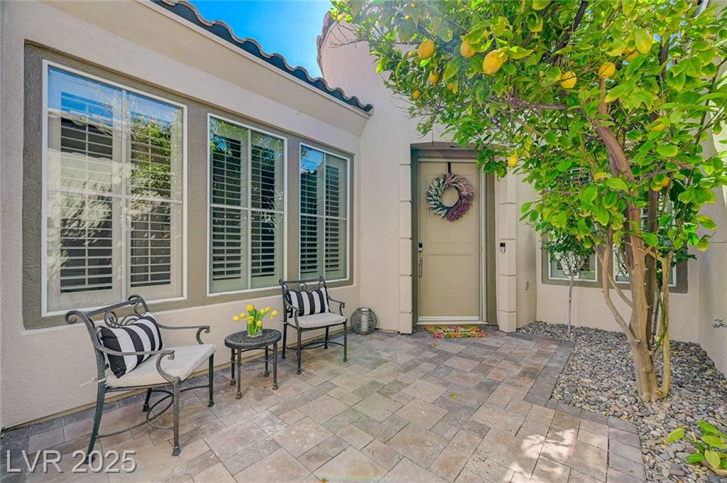 Nestled in the prestigious Red Rock Country Club, this serene single-story home blends comfort and style. The bright gourmet kitchen features white cabinetry, stainless-steel appliances, and quartz countertops—perfect for everyday living and entertaining. An open-concept layout fills the home with natural light, while the spacious family room with a cozy fireplace offers stunning views. Each of the three bedrooms includes a private en-suite bath. The luxurious primary suite opens to a covered patio with breathtaking golf course and mountain views, and includes a spa-inspired bathroom with a walk-in shower, dual vanities, and a makeup station. Outside, relax in your private spa and enjoy the magnificent panoramic surroundings and enjoy tranquil night serenity sitting next to the new fire feature!