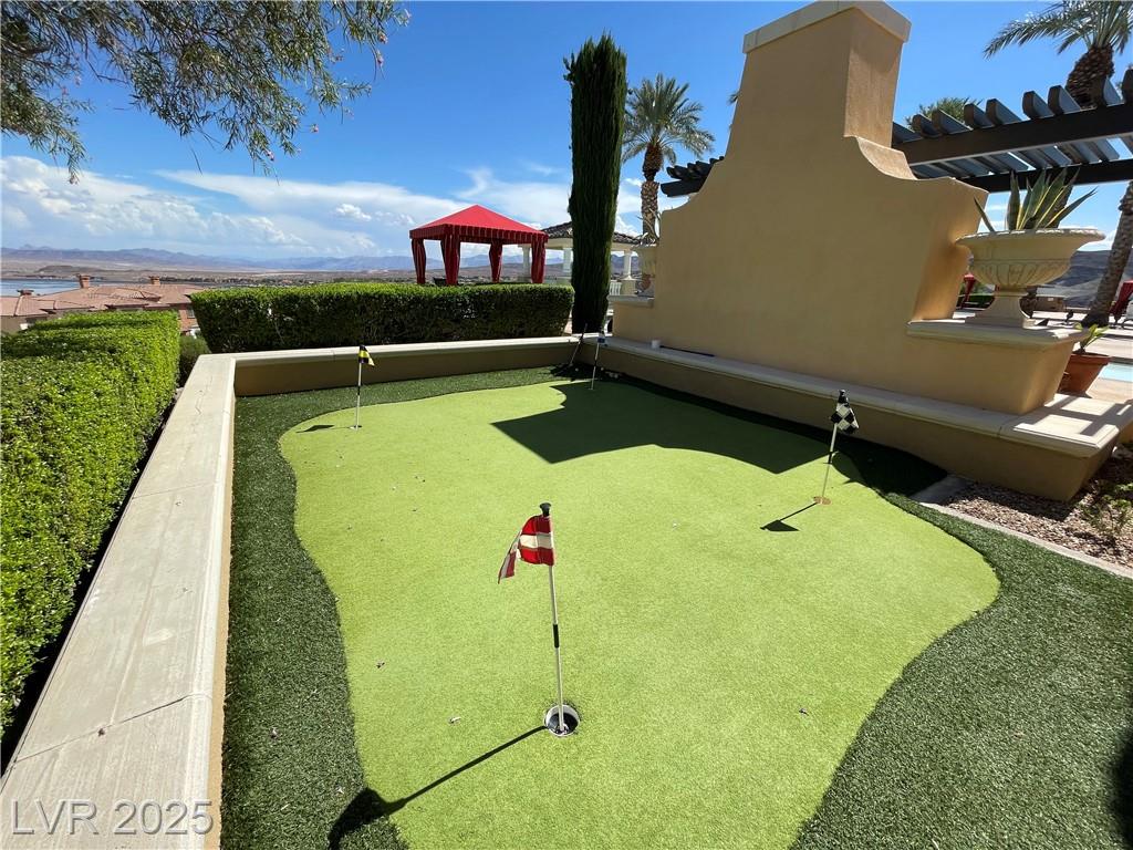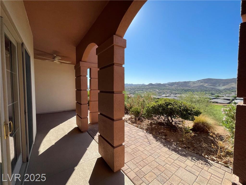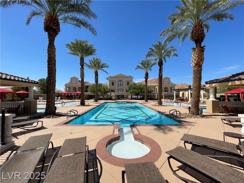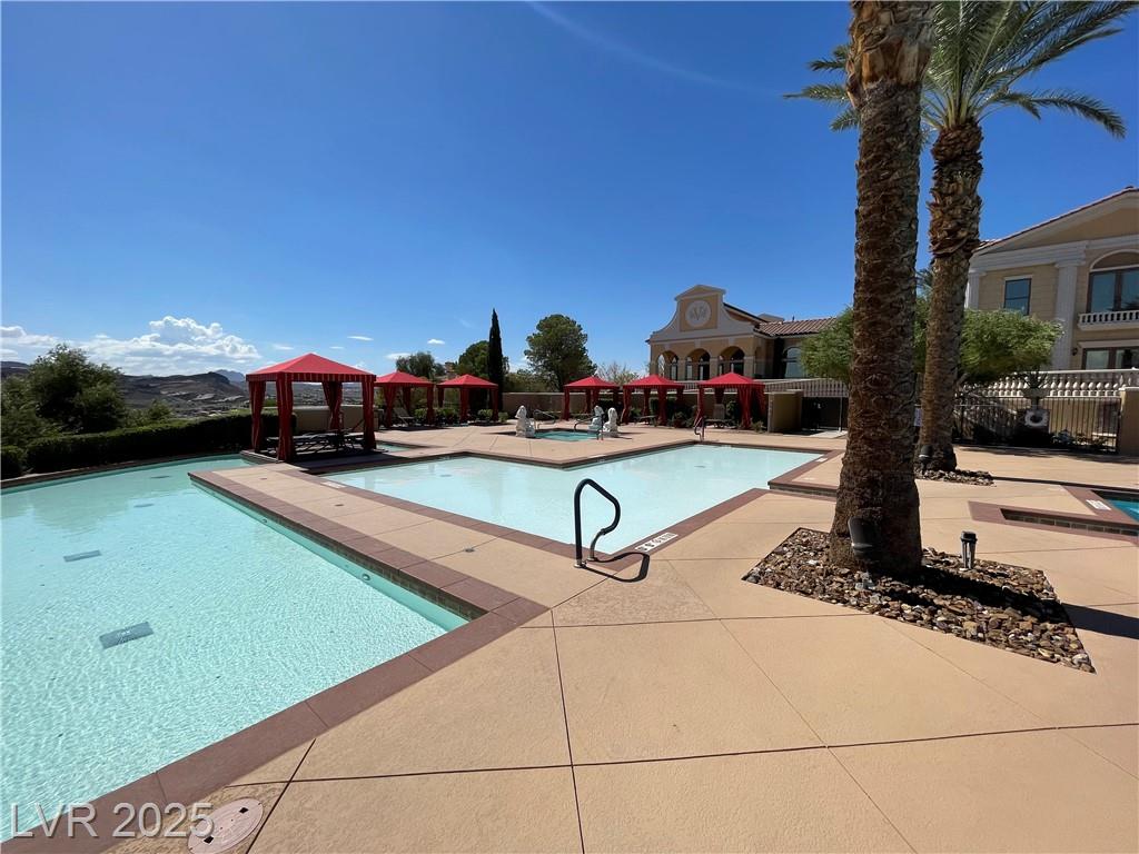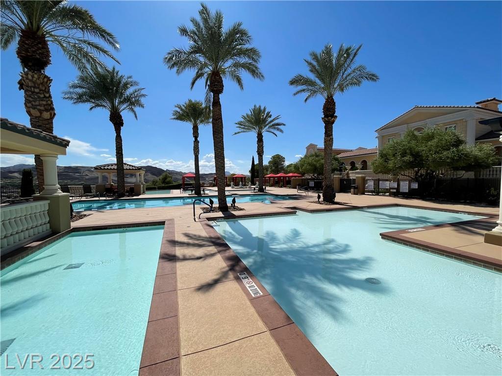 The V is the hidden gem of Lake Las Vegas condo living. The views, facilities, and location are perfect. A calm and serene atmosphere that evokes a Tuscan vibe with a vineyard on property. Community pools, gym and community center are some of the features of this property. The community is well managed by on premise Manager and well maintained. This ground floor unit is located overlooking the 12th hole of Reflection Bay Golf Course. The exterior of the building was recently painted. The interior is well kept and well maintained. New, in unit washer and dryer and disposal purchased in January. Water heater was replaced in 2022. Three patios, one off the primary, one off the living room, both overlooking the golf course, and a private 3rd patio of the kitchen. Fireplace in living room. Luxurious primary bath with jetted tub and separate shower area. Large one car garage with direct access to unit. Water softener, HVAC, and water heater located in garage. A fabulous lifestyle awaits!