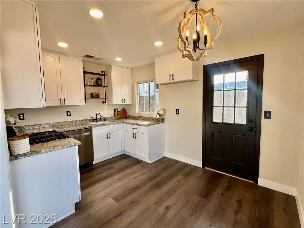 Amazingly remodeled 3 bedroom, 2 bath home in Henderson! Conveniently near freeways, shopping, and dining—with no HOA! This completely renovated home boasts - new cabinets, granite countertops, light fixtures and ceiling fans, shower, carpet, luxury vinyl flooring, appliances, doors, windows, faucets, toilets, door hardware, baseboards, and so much more. Freshly painted inside and out. Home has a freshly landscaped, large yard that has room for RV parking.