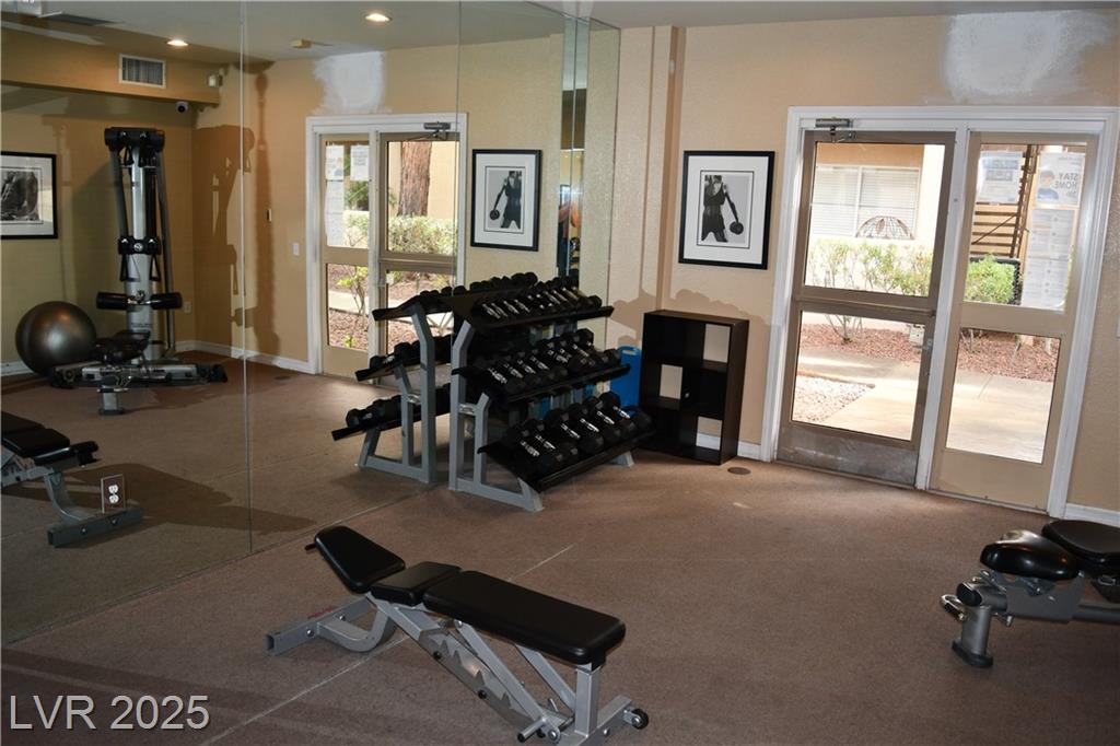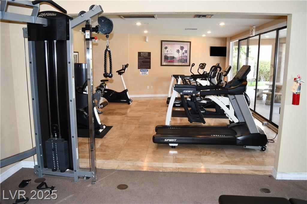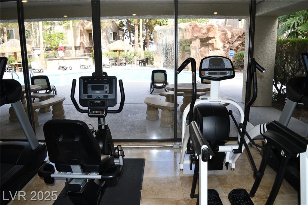 From S Rainbow Blvd. Drive approximately 1.5 miles. Turn right into Spanish Palms Condominiums (just past W Hacienda Ave). Check in with the guard gate — let them know you're visiting Unit #2003. Once through the gate, follow the signage/building numbers to Building 20, Unit #2003.