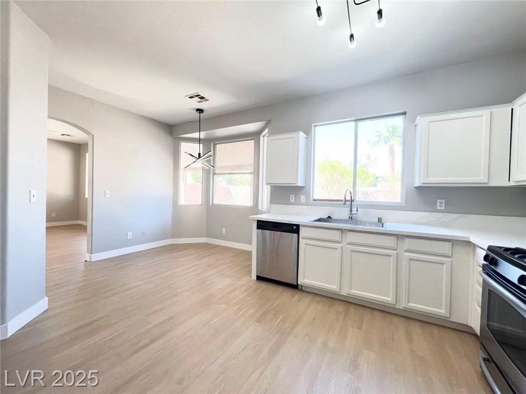 Welcome to this stunning 4-bedroom, 2.5-bathroom home nestled within a secure, gated community, this beautifully remodeled home offers a perfect blend of modern comfort and stylish living. Step inside to find fresh paint throughout, brand-new vinyl flooring, and plush new carpeting that elevate the home's interior.The kitchen and bathrooms have been tastefully upgraded with sleek, modern countertops, adding a contemporary touch to each space. The bright and open floor plan features soaring vaulted ceilings, expansive windows, and an abundance of natural light. The spacious living area offers seamless indoor-outdoor flow with sliding glass doors that lead to the backyard—perfect for entertaining or relaxing.Additional highlights include a brand-new washer and dryer.Located in a sought-after area, you'll enjoy close proximity to shopping, dining, entertainment, and other local amenities. Small pet allow. Please contact a realtor to see the property in person.