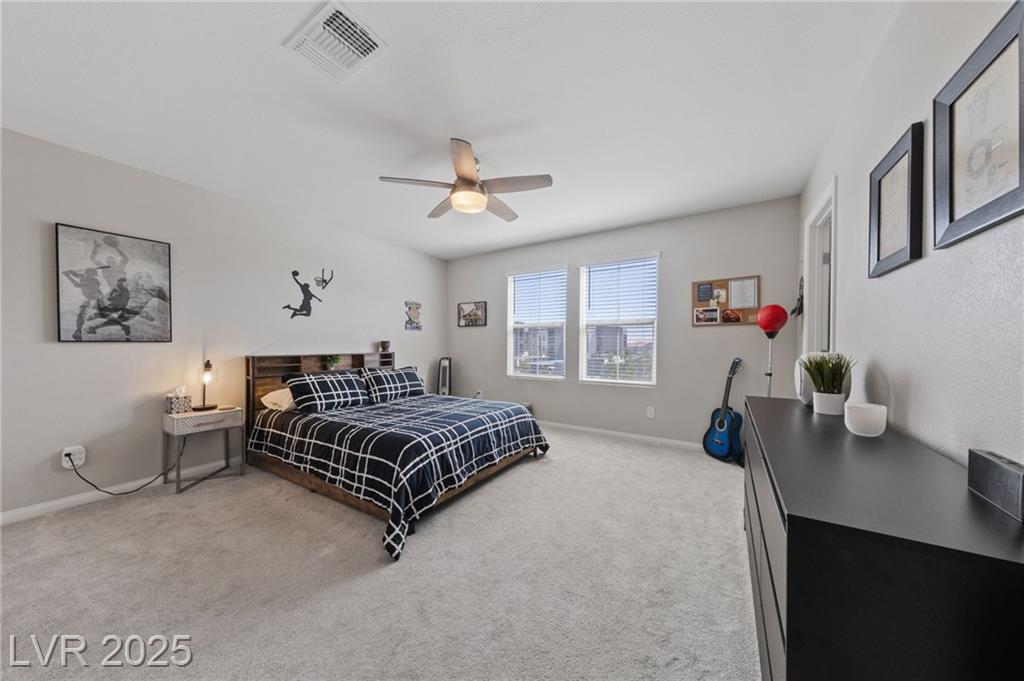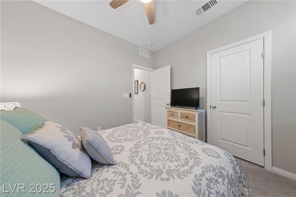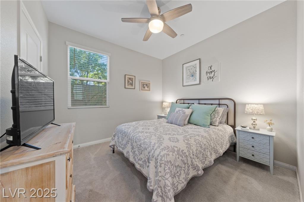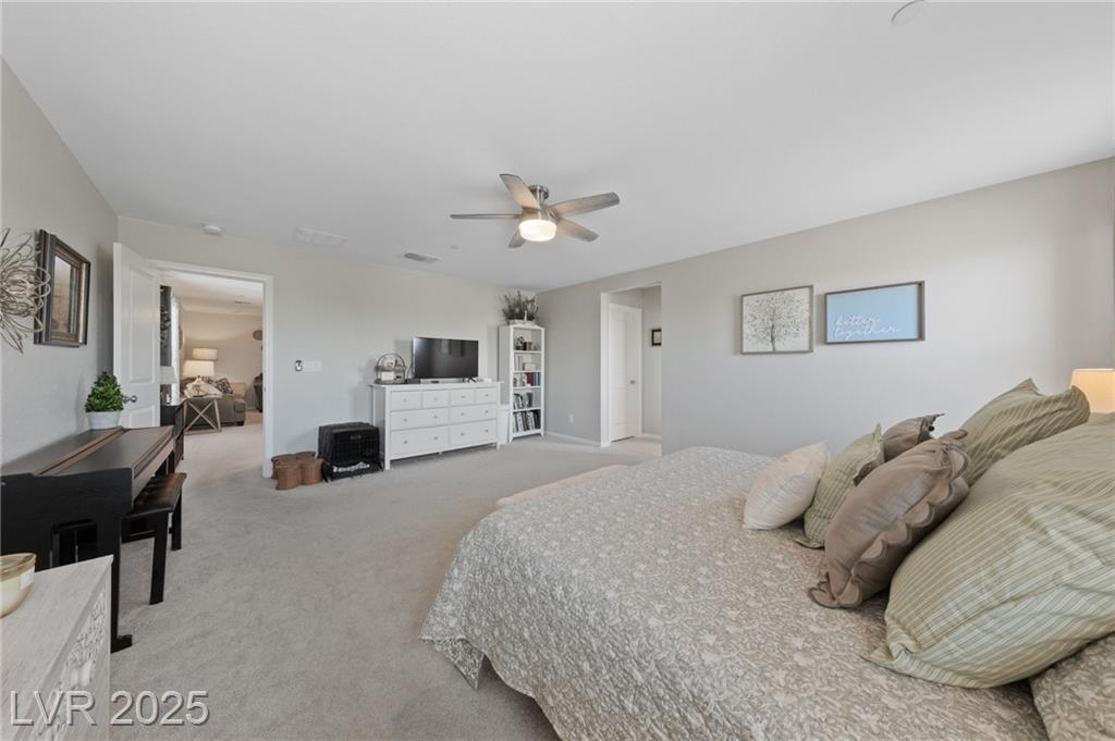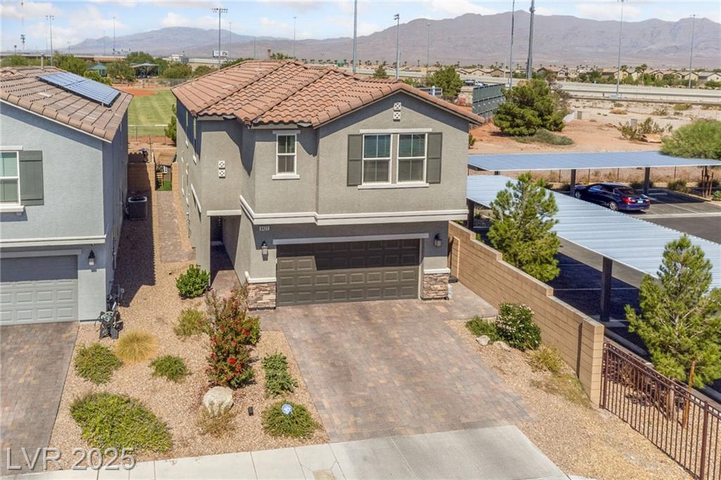 Welcome to this stunning 5-bedroom home in desirable NW Centennial Hills, built in 2021! Nestled in the gated Montecito community, this thoughtfully designed home boasts a bedroom and full bath on the first floor, perfect for a mother-in-law suite. The front of the house showcases the beautiful driveway pavers and front façade. This open-concept floor plan offers a spacious kitchen featuring stainless steel appliances, quartz countertops, tile backsplash, a walk-in pantry, and a large island ideal for entertaining. Enjoy modern comforts, including a tankless water heater, a built-in fire sprinkler system, and a functional loft that separates the large bedrooms and ensures privacy. Light and bright throughout, this home offers privacy with no rear neighbors and is tucked away in a quiet cul-de-sac. Conveniently located near top-rated schools, shopping, restaurants, and parks—this home truly has it all!