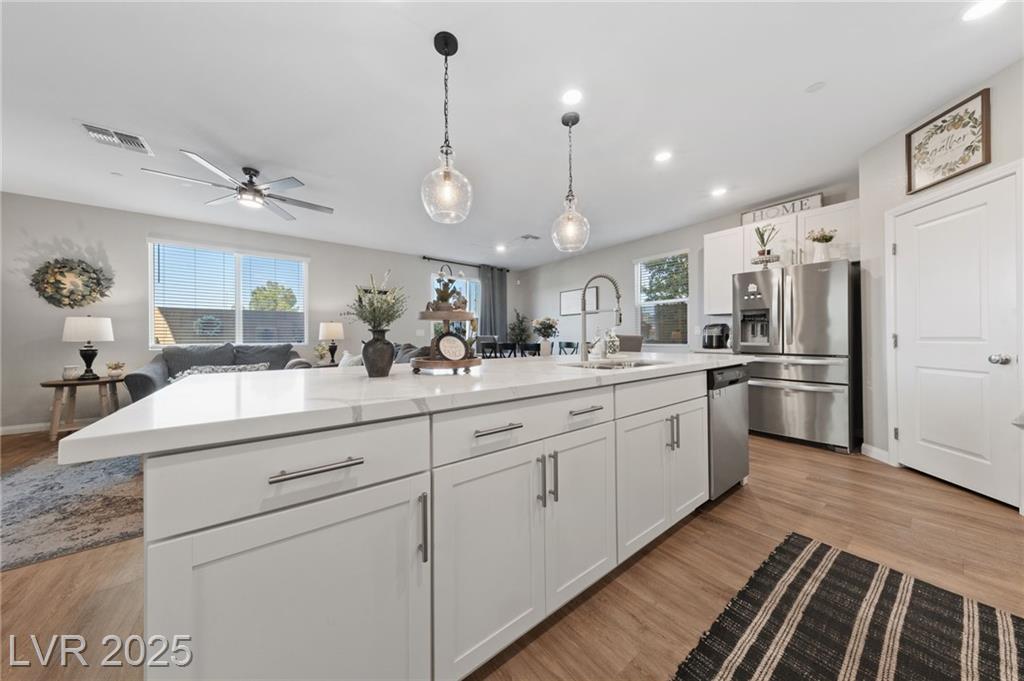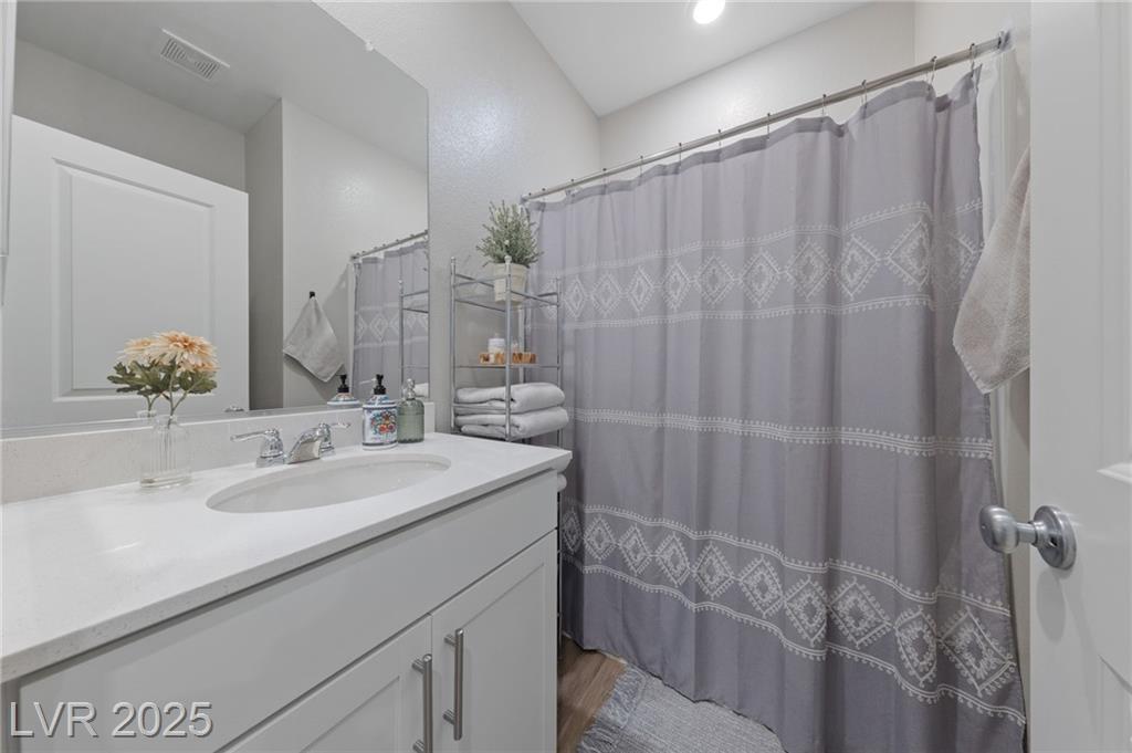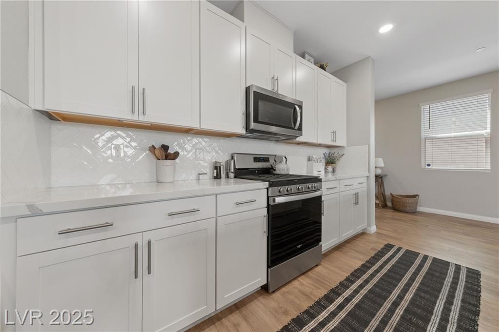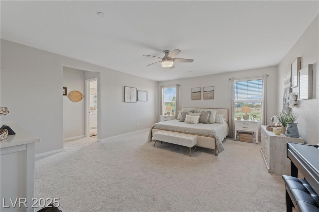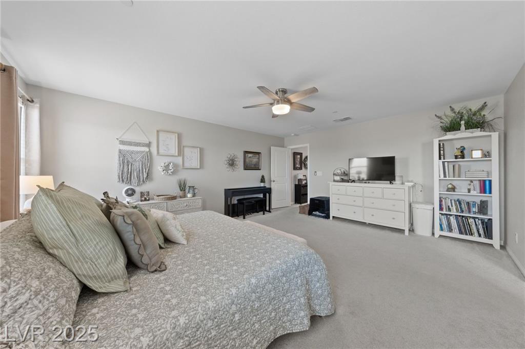 Welcome to this stunning 5-bedroom home in desirable NW Centennial Hills, built in 2021! Nestled in the gated Montecito community, this thoughtfully designed home boasts a bedroom and full bath on the first floor, perfect for a mother-in-law suite. The front of the house showcases the beautiful driveway pavers and front façade. This open-concept floor plan offers a spacious kitchen featuring stainless steel appliances, quartz countertops, tile backsplash, a walk-in pantry, and a large island ideal for entertaining. Enjoy modern comforts, including a tankless water heater, a built-in fire sprinkler system, and a functional loft that separates the large bedrooms and ensures privacy. Light and bright throughout, this home offers privacy with no rear neighbors and is tucked away in a quiet cul-de-sac. Conveniently located near top-rated schools, shopping, restaurants, and parks—this home truly has it all!