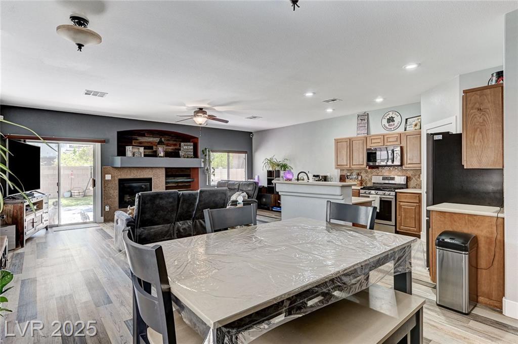 Discover this beautifully maintained 3-bedroom, 2-bath townhome offering 1,624 sq. ft. of living space and a lifestyle that blends comfort with convenience. The open-concept floorplan features modern vinyl plank flooring, a cozy living room with fireplace, and a kitchen with center island that’s perfect for cooking, entertaining, or gathering with loved ones. Upstairs, the spacious primary suite boasts a dual-sink vanity, separate tub & shower, walk in closet and plenty of natural light, providing a true retreat. Outside, enjoy one of the rare finds in townhome living—an oversized private backyard complete with covered patio and room for dining, play, or simply relaxing under the stars. Located in a desirable community with access to a sparkling pool, park, and green spaces, this home offers both tranquility and convenience. Don’t miss your chance to call it yours!