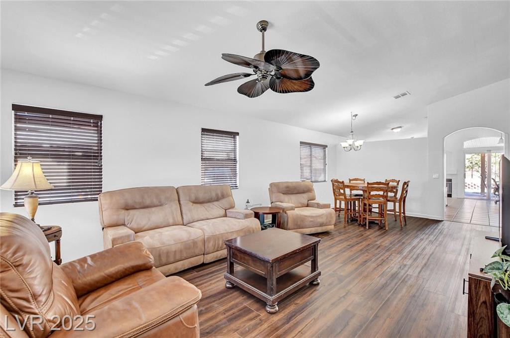 RENOVATED SINGLE-STORY HOME NEAR SUNRISE MOUNTAIN*A/C SYSTEM REPLACED 2-3 YEARS AGO*EXTENDED DRIVEWAY*NEW INTERIOR PAINT*UPGRADED FLOORING - NO CARPET*2" BLINDS*UPGRADED LIGHTING, CEILING FANS & FIXTURES*VAULTED CEILINGS*SPACIOUS LIVING & DINING ROOM*GAS FIREPLACE IN FAMILY ROOM*KITCHEN FEATURES NEWER STAINLESS STEEL APPLIANCES & NEWER SINK & FAUCET*OVERSIZED PRIMARY SUITE WITH WALK-IN CLOSET & RENOVATED BATH WITH WALK-IN SHOWER*NICE-SIZED GUEST BEDROOMS*GUEST BATH WITH NEW VANITY*LAUNDRY ROOM WITH CABINETS*PRIVATE YARD WITH EZ MAINTENANCE LANDSCAPING, COVERED PATIO & EXTERIOR STORAGE AREA*SECURITY SCREEN DOOR*CONVENIENT LOCATION NEAR RETAIL & RESTAURANTS, WITH EZ ACCESS TO NELLIS AFB & I-15/215*NO HOA!**