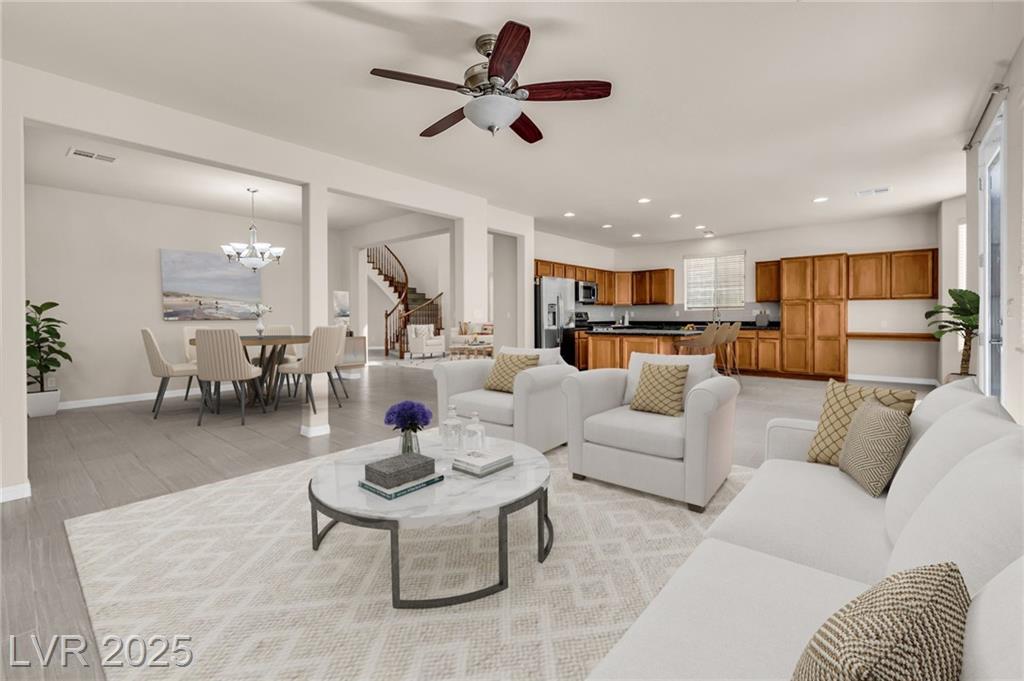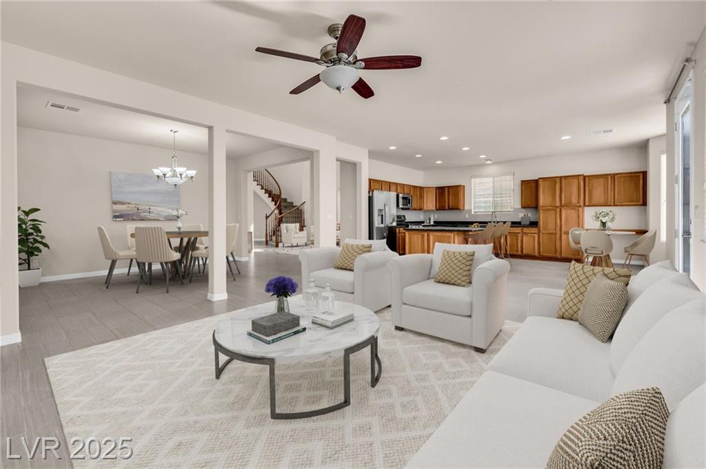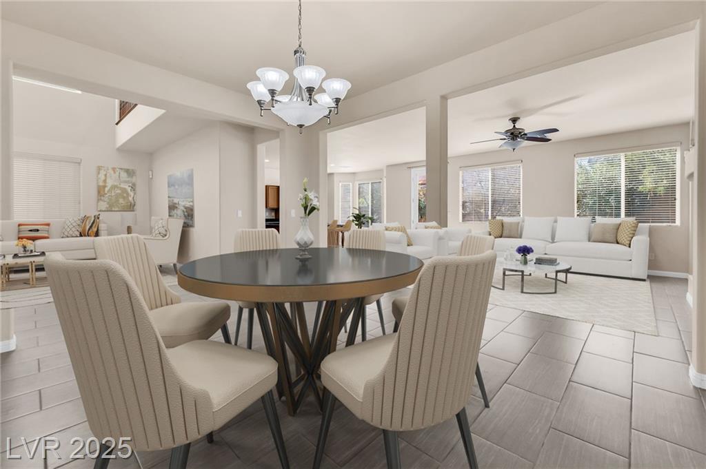 Welcome to Guard Gated, Such Beautiful Rhodes Ranch Golf Course Community! 3 Bedroom 3 Full Bath 2 Dens 2 Story Estate is Move-In Ready!2 Dens are easy to convert to bedrooms .Enclosed Wrought Iron Front Courtyard provides a Outdoor Living Space! Tall Ceilings and beautiful Spiral stairs Welcome you to Grand Entrance! Oversized First Story Bedroom near Full Bath provides an "En Suite" feel. Enjoy His & Her Closets with Oversized Master Bath featuring Dual Sinks, Upgraded Separate Shower & Tub. Washer & Dryer. Conveniently Located on Second Story! Each Bedrooms have Exciting Features! Huge Bedroom with Walk In Closet! Another Bedroom with Private Double Door Balcony! Other Amazing Features include dimmer switches bringing tranquility, Instant Hot Water & Soft Water Conditioner! Interior blinds Throughout, Backyard with Desert style landscaping. It's so nice and comfortable to live in this home.
