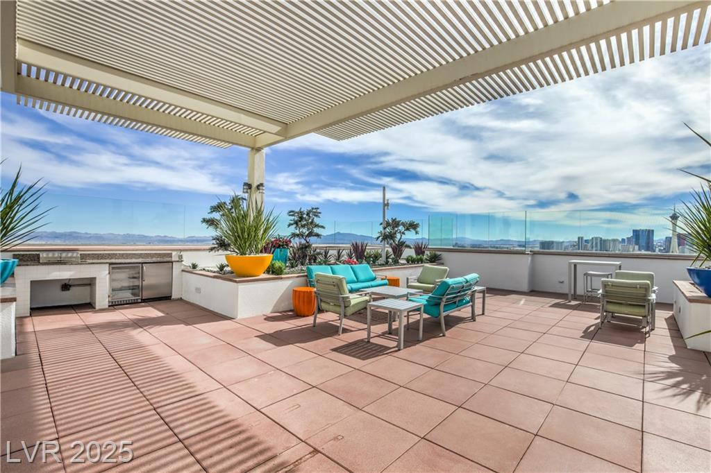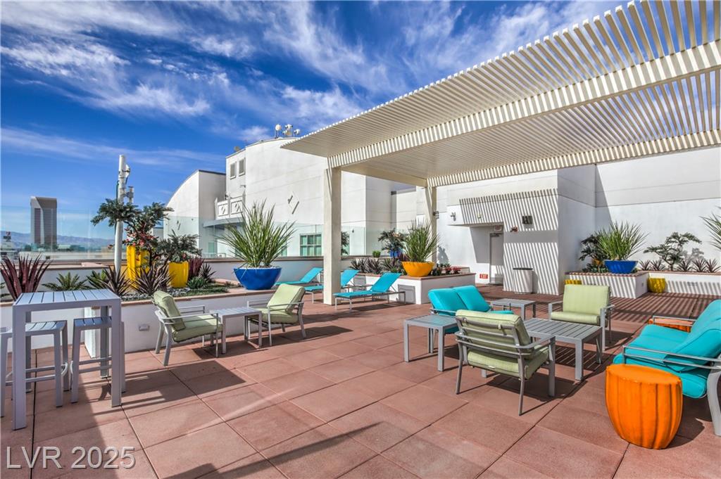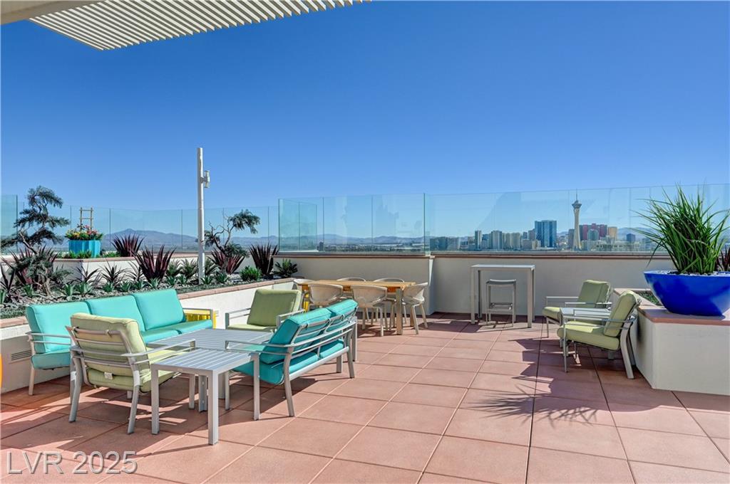 Elevated Living with Iconic Strip Views! This stunning residence at The Ogden offers commanding views of the Las Vegas Strip, city lights, The Strat, and surrounding mountains. The coveted Hesse floorplan features an open layout, expansive glass, and a private terrace that captures the drama of the skyline, day and night. Modern elegance defines the interior, with quartz counters, custom cabinetry, hardwood floors, a walk-in closet, and stainless-steel appliances. Every element reflects thoughtful design and elevated living. Residents enjoy exclusive access to a rooftop pool and spa, sky deck with panoramic views, a fully equipped fitness center, social lounge, and attentive concierge services. Ideally situated in the heart of vibrant Downtown Las Vegas, this residence offers effortless access to world-class dining, luxury retail, premier entertainment, the Arts District, Law and Medical Districts, professional sports venues, and the Downtown Project. A rare ultra-high floor offering.
