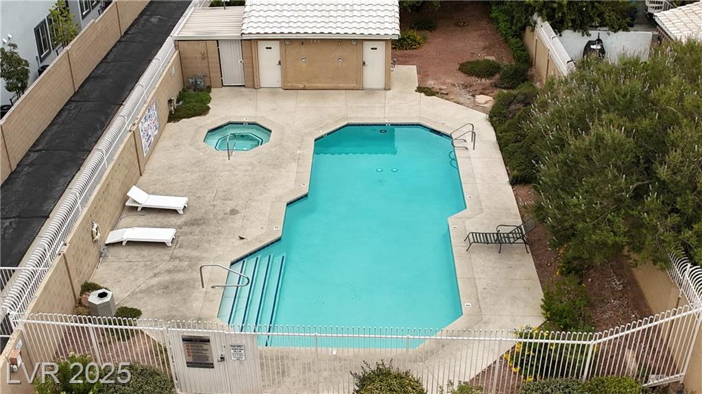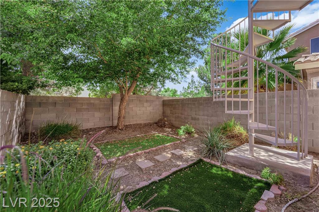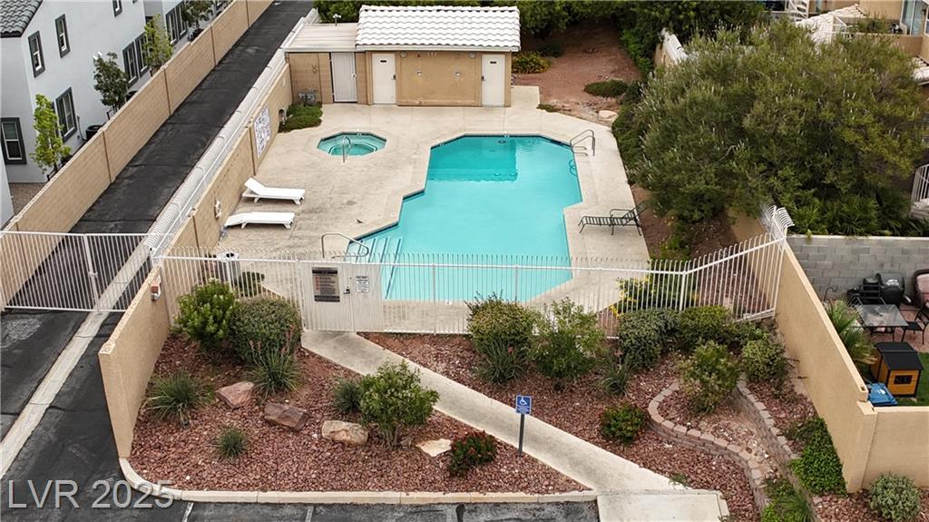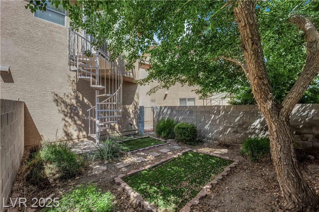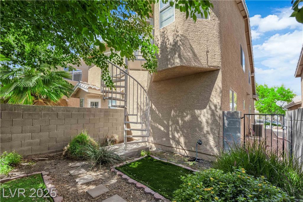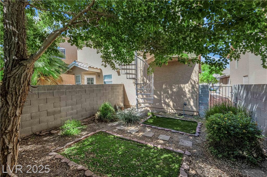 A rare Las Vegas find! This 3 bed, 2 bath condo lives like a house with an open floor plan, vaulted ceilings, and plenty of natural light. NEW HVAC and Water Heater installed. The kitchen shines with white cabinets, custom backsplash, modern lighting, and stainless-steel appliances. The spacious living and dining areas flow perfectly for entertaining or relaxing. The primary suite features a large closet and updated bath, while two additional bedrooms offer flexibility for guests or a home office. Step outside to your private backyard with mature landscaping and a spiral staircase—an uncommon perk for condo living! Add in a 1-car garage plus driveway parking and you’ve got both convenience and comfort. The community features a sparkling pool and is located near shopping, dining, and freeway access. This one has it all—style, function, and location!