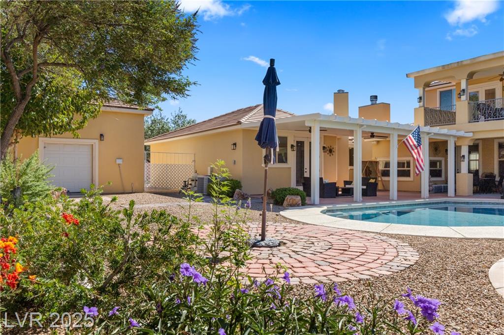 Look no further! Custom home w/ ALL the upgrades! Inviting pool w/ attached 3 car garage, detached 1,620 sq ft garage/shop! Oversized patio's for entertaining and a separate bathroom for the outdoor living area! Home has a wet bar with 2 wine fridges with access to the pool area for serving your guests. Home has marble and hardwood flooring, 2 fireplaces, theatre room with surround sound and projector. Spacious kitchen with 3 sinks, double ovens and cooktop, island and breakfast bar. Grand staircase to the 2nd story with a large balcony over looking the pool. Must see!