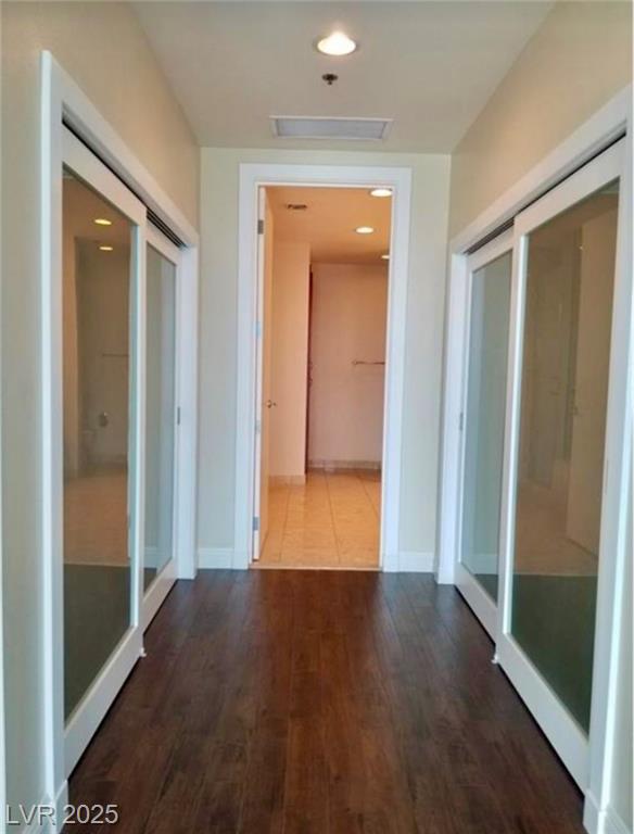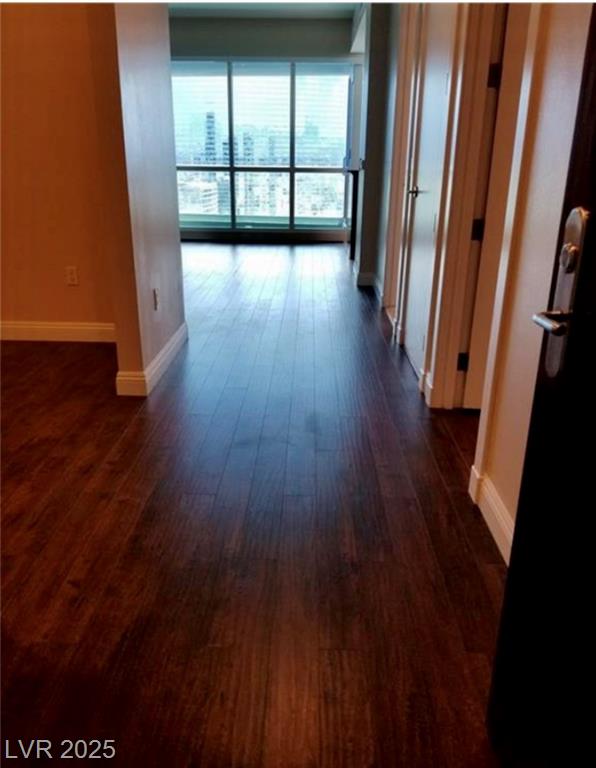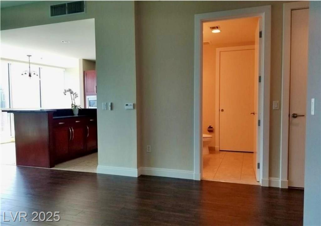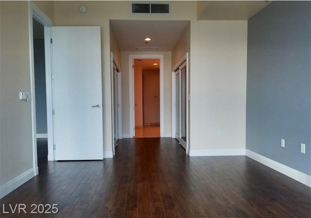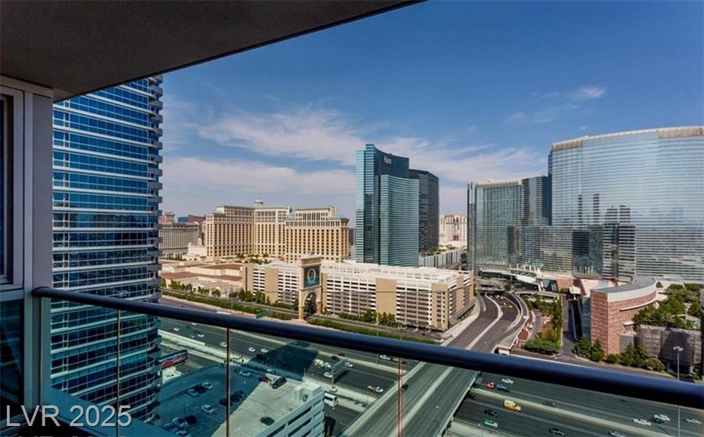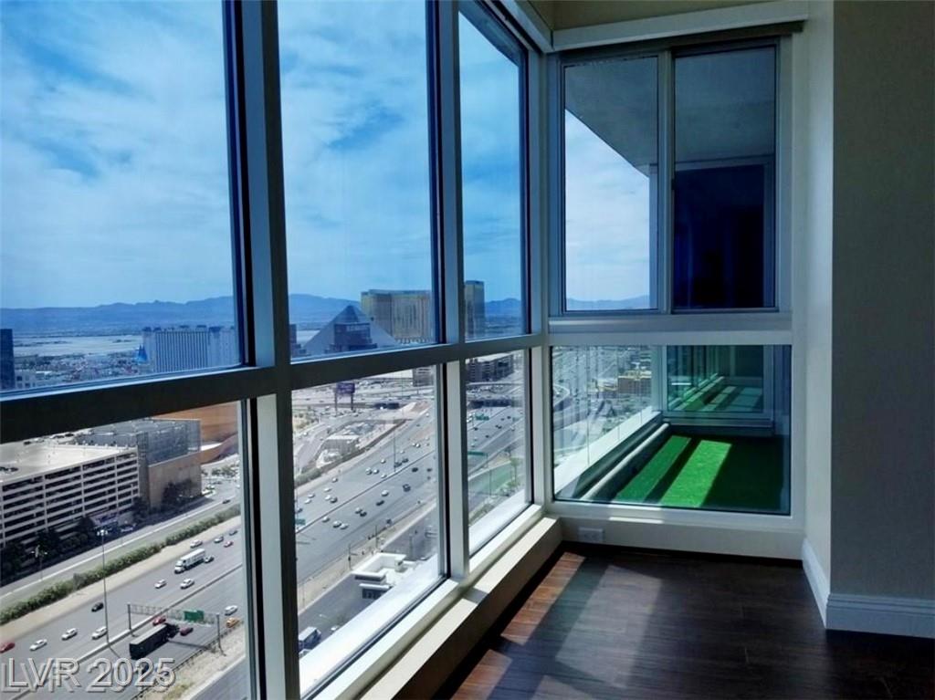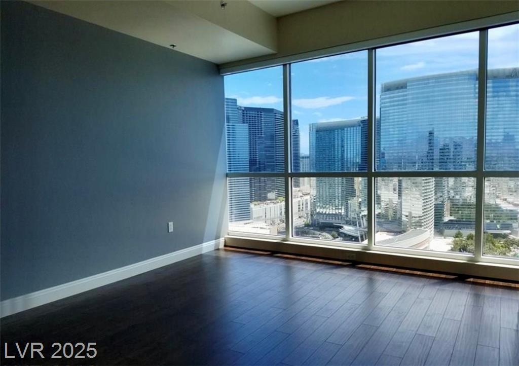 High floor with Strip view. Most popular floorplan, 2 master bedrooms with a den, 2.5 baths. 2 parking spots on the 1st level and 1 storage unit. Just painted entire condo recently. All hardwood floor and motorized window shades throughout. Free Cox cable TV and Internet. Kitchen features marble flooring, granite countertops, and stainless steel appliances. Fitness center with spa and steam room, valet, swimming pool house limousines service. All located within minutes of the Strip. Absolutely Stunning!