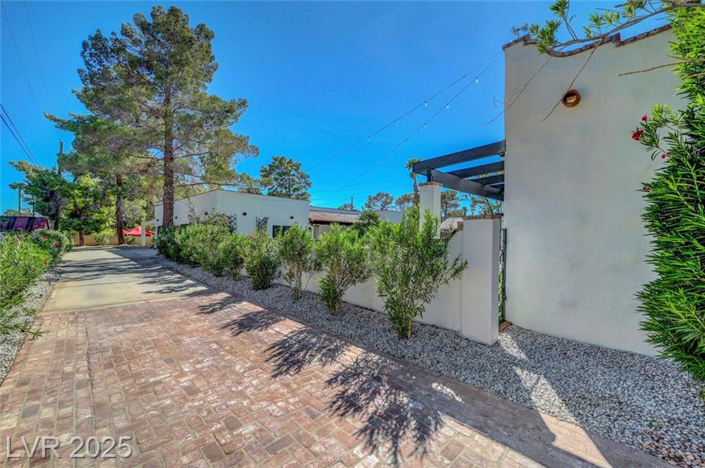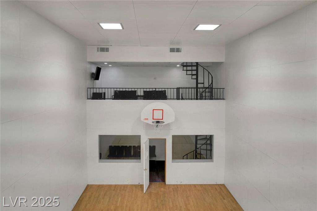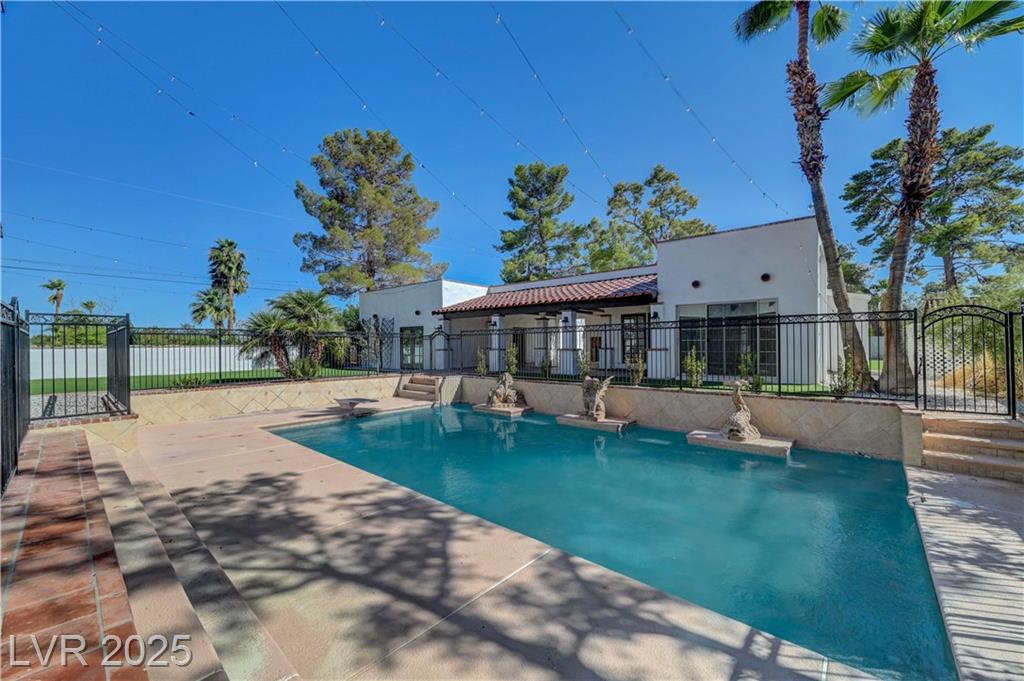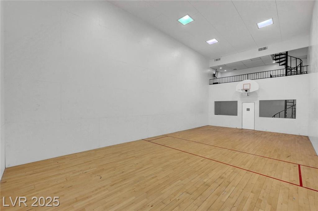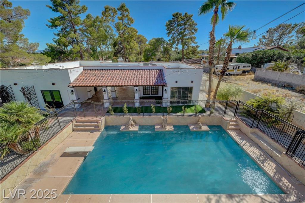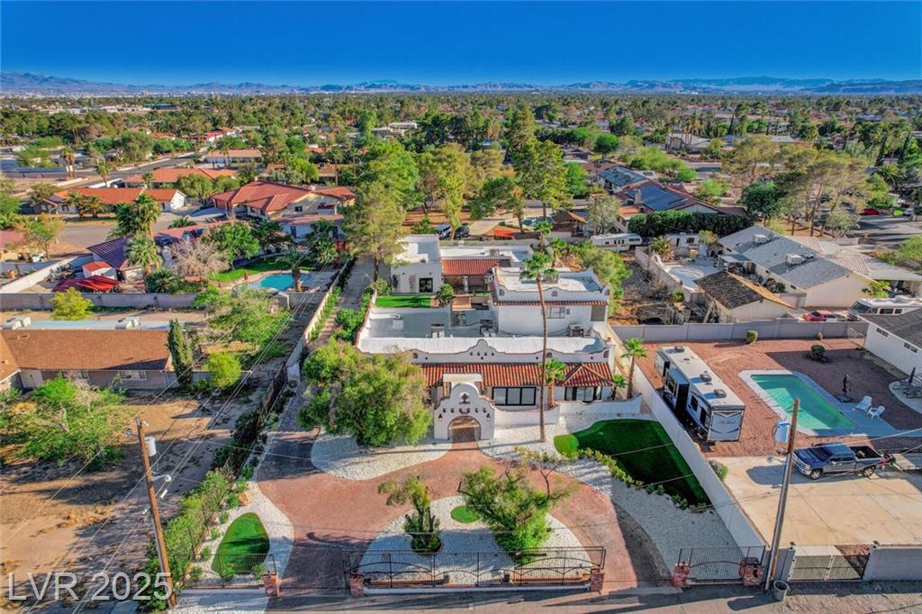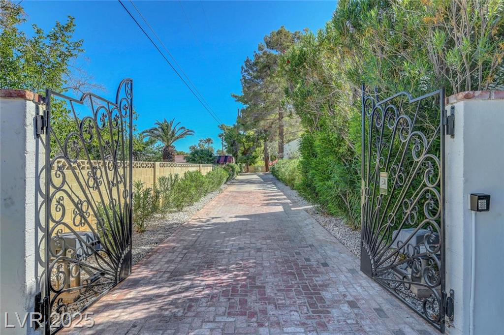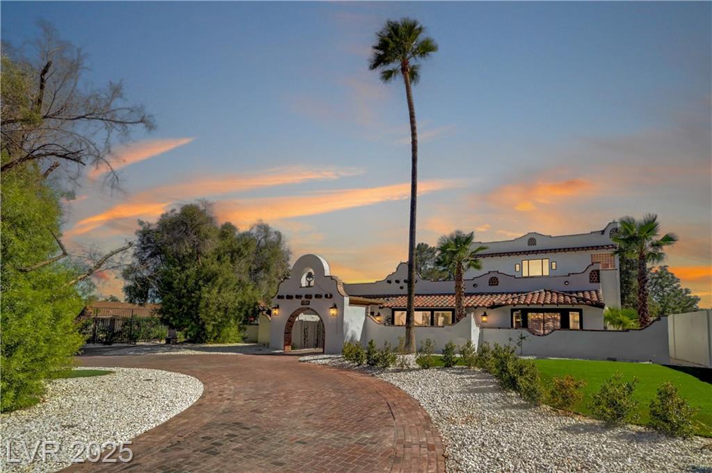 Not your average Las Vegas estate — This beautiful property been chosen to featured on HGTV 2025 holiday season! This 0.57-acre Spanish compound is a true masterpiece, exquisite design by celebrity famous designer and HGTV star Alison Victoria, featuring 2 main dwellings, that include private 2 casitas, total of 7 bedrooms (8 possibile), 6 full baths, a 3-car garage, 2-car carport, pool, covered patio and rare additional 1100sqft 50 ft deep! full-size indoor racquetball court with basketball hoop that serve as a bunker with 3ft reinforced concrete all around it! Enjoy a gated entry, circular driveway, large 2 covered patios, and multi outdoor spaces to entertain. This property bursts with charm, style and character. Perfect for luxury living, entertaining, or your private retreat—don’t miss this one-of-a-kind showpiece in the Located in exclusive Section 10, this unique neighborhood offers larger lots and no HOA, perfect for buyers seeking space and privacy in the heart of Las Vegas.